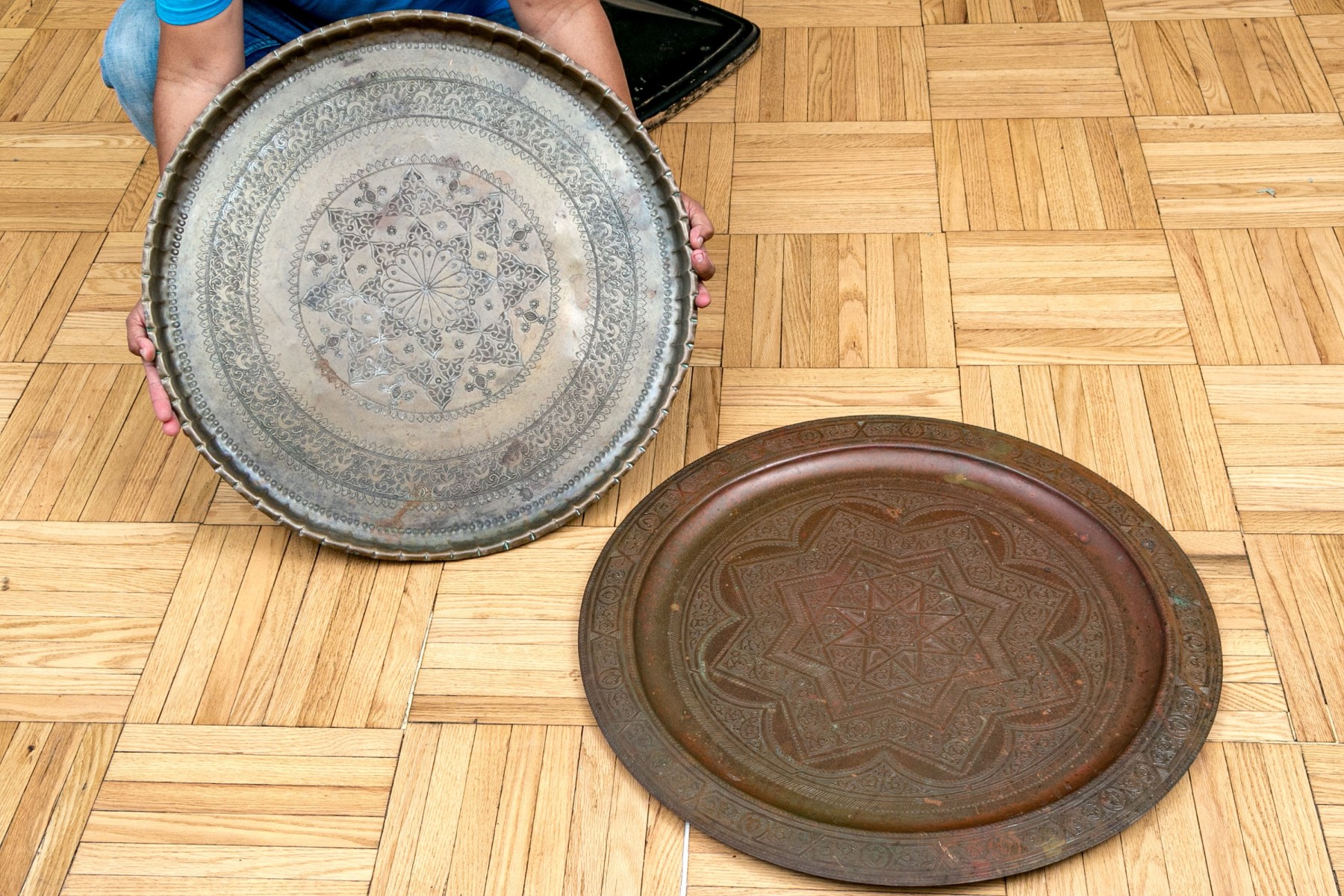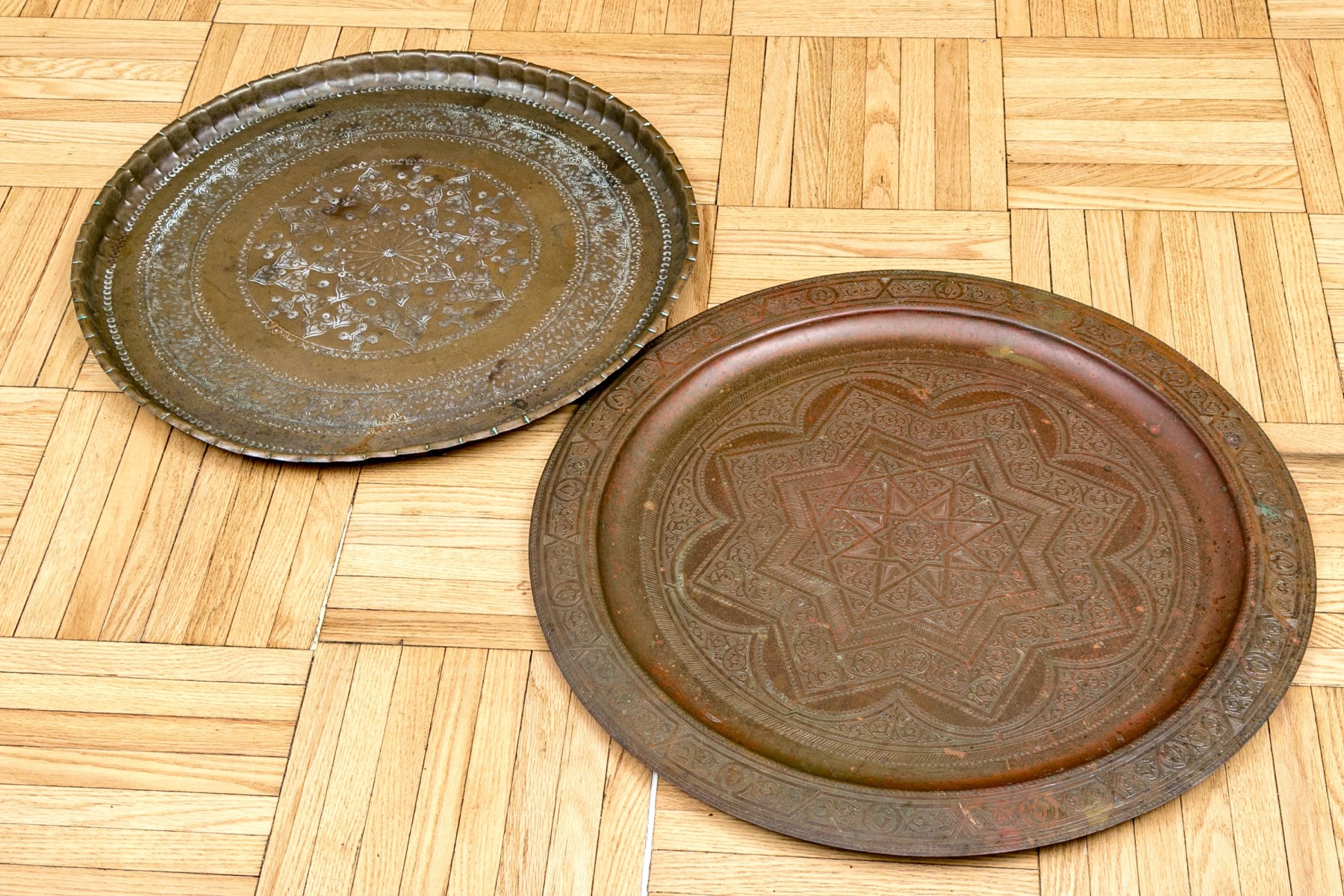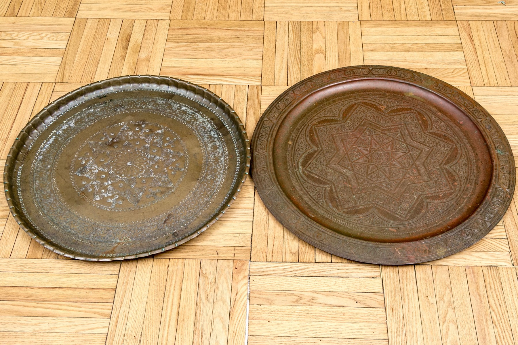 Two Semi Antique Moroccan Brass Serving Trays #341005. Black Rock Galleries provides high end estate liquidation services through online estate auctions and a 50,000 sq ft designer showroom. estate liquidator, estate sale, online auction, antiques, fine art, liquidation, clean outs, auction, consignment, interior design, fine jewelry, collectibles, appraisals, estate appraisals, estate services, decor, furniture, furniture consignment, antique center, consignment shop. We offer appraisal services and specialize in fine art, jewelry, antiques and decorative arts. Sell with us. Black Rock Galleries is the tri-state's largest estate liquidator serving New England and the greater New York City area. We are the trusted source for expert appraisals, auction services, estate sales, and consignments. Black Rock Galleries is the east coast's largest and most trusted estate liquidator, with locations in Connecticut, greater Boston, MA and Raleigh, NC, Fairfield, Southport, Apex, TX. We are the best source for expert appraisals, auction services, estate sales and consignments. We have served thousands of families and estates with compassion, professionalism and expertise. BRG works with attorneys, executors, realtors and families to bring the greatest return on personal and estate property in the current market. Our unique combination of services make us the easy choice to get the job done in a timely and stress-free manner. We are with you from the initial consultation to the final clean out. Our house-built online auction software platform offers clients a dynamic approach to liquidating their personal property. This venue is most successful in bringing the best return with the least amount of disruption for our clients. See our services page for a complete description of this offering. Two Semi Antique Moroccan Brass Serving Trays #341005