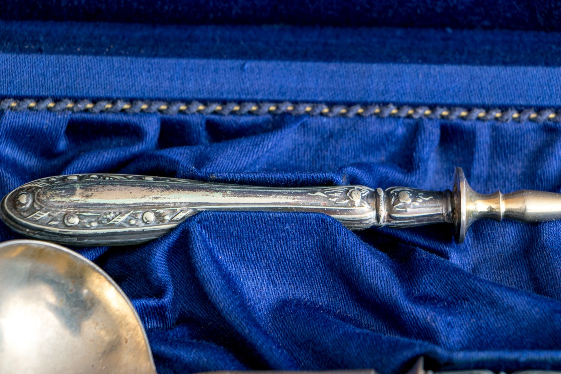 and a ladle and pair of spoons with vermeil bowls, boxed together