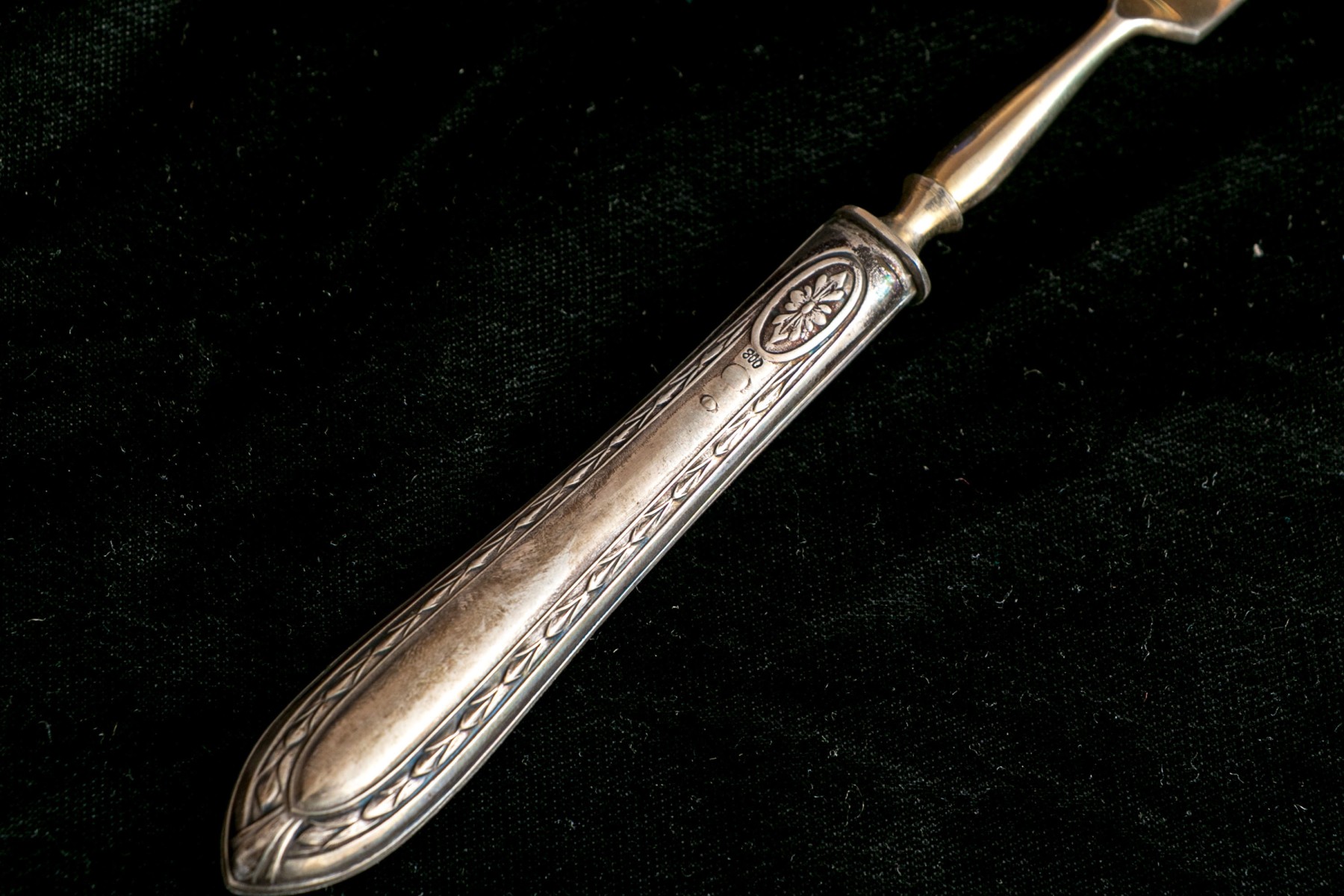 two flat knives and pair of forks all with vermeil ends, boxed together