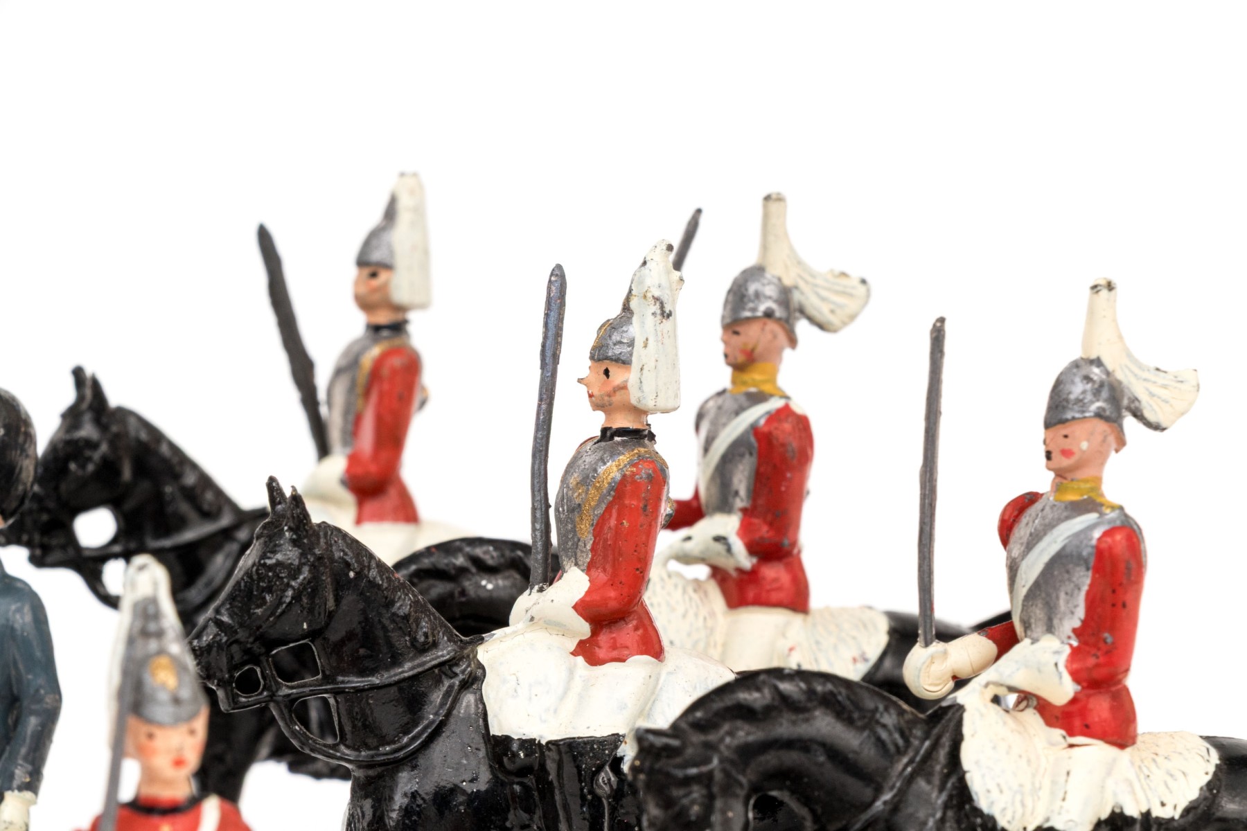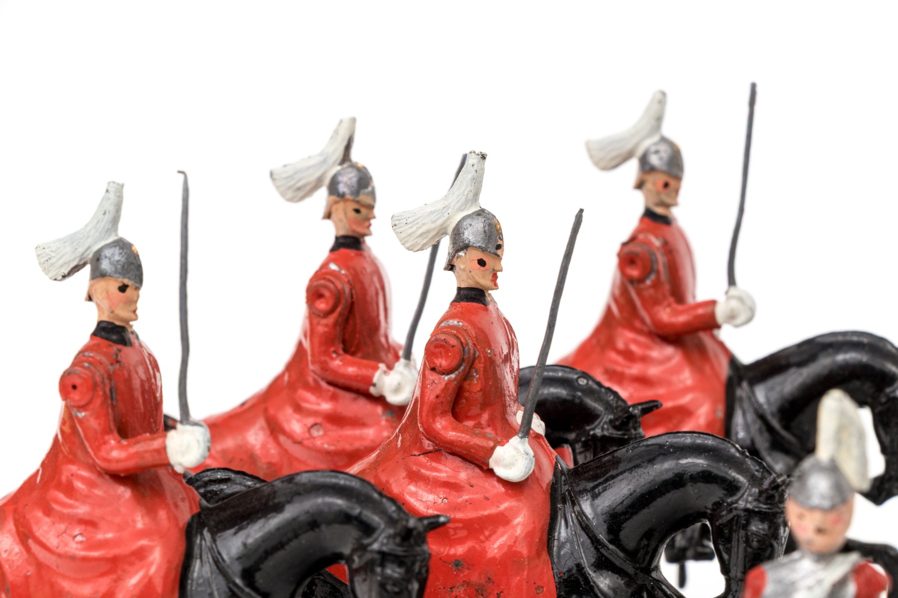 The set of Household Cavalry by John Hill & Co. England- scale model s of the horses and riders. One of the set of five is missing (only the head is preserved).