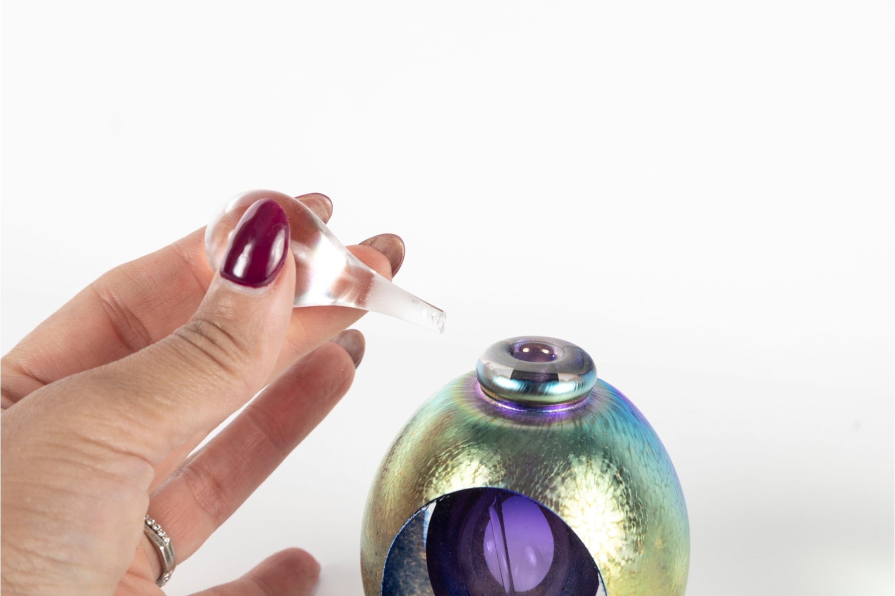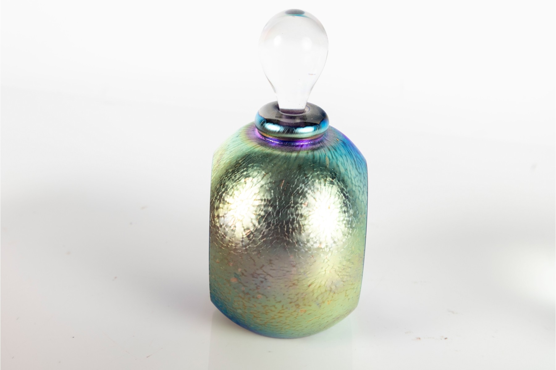 Glass topper stem is broken. Overall in good condition.
