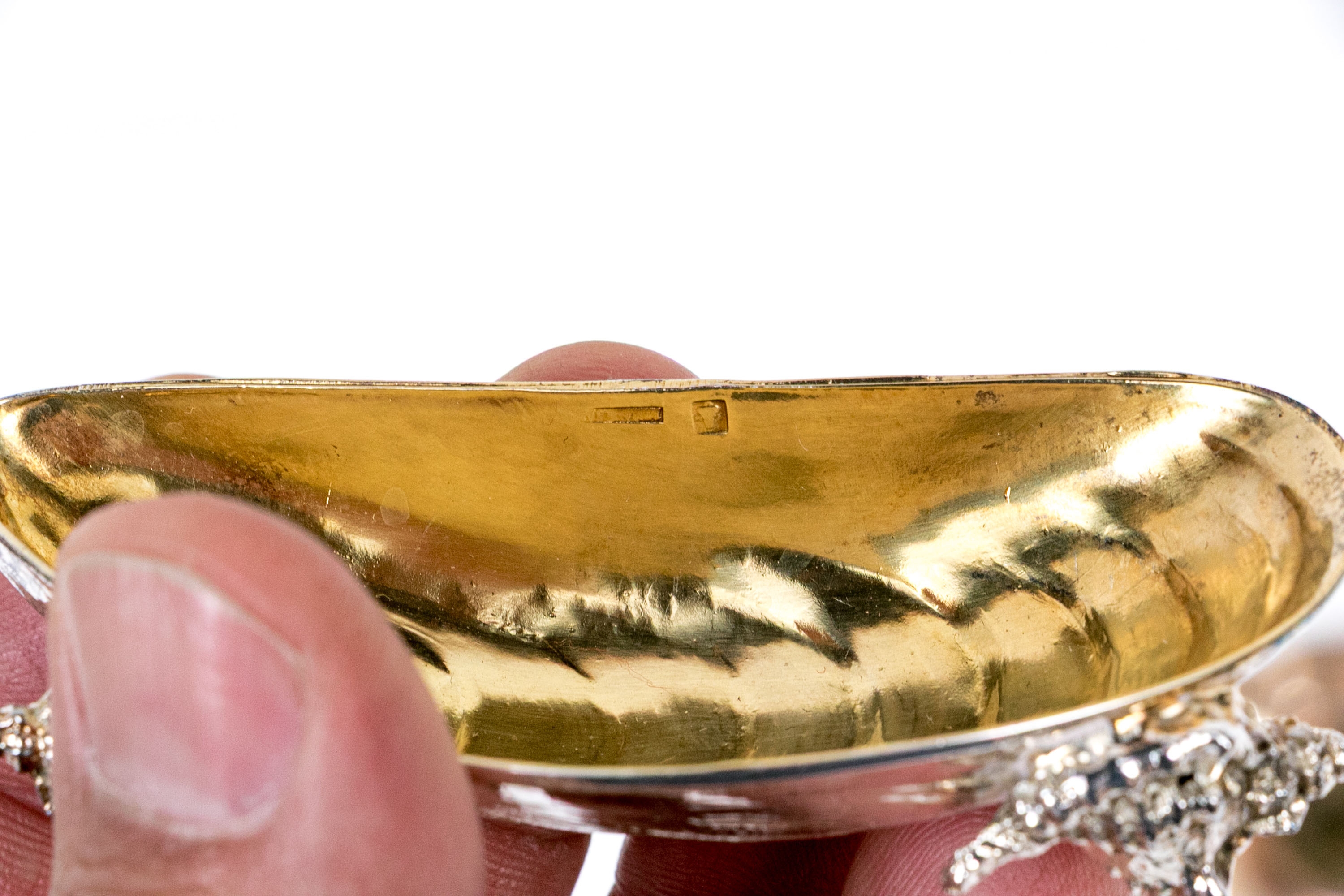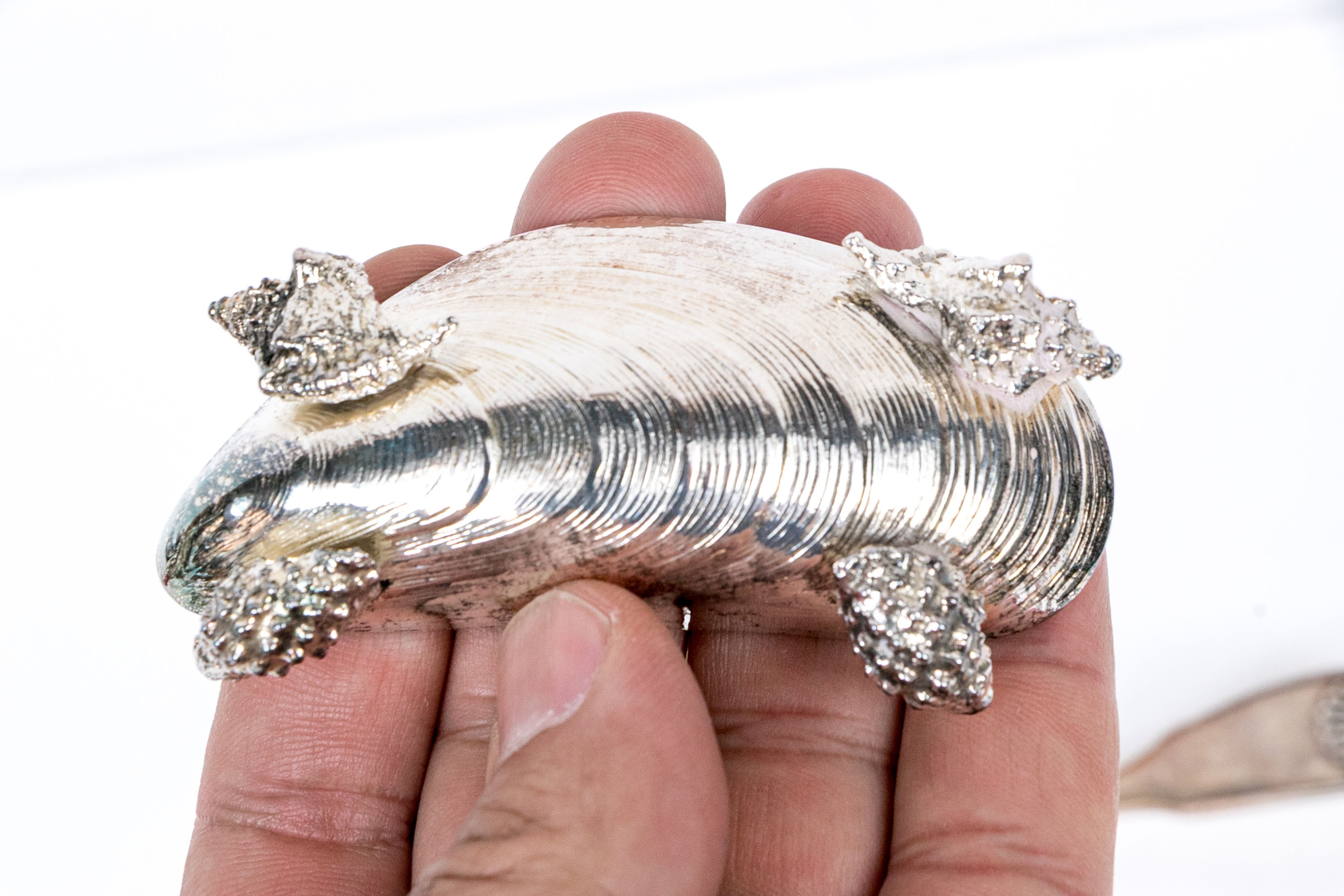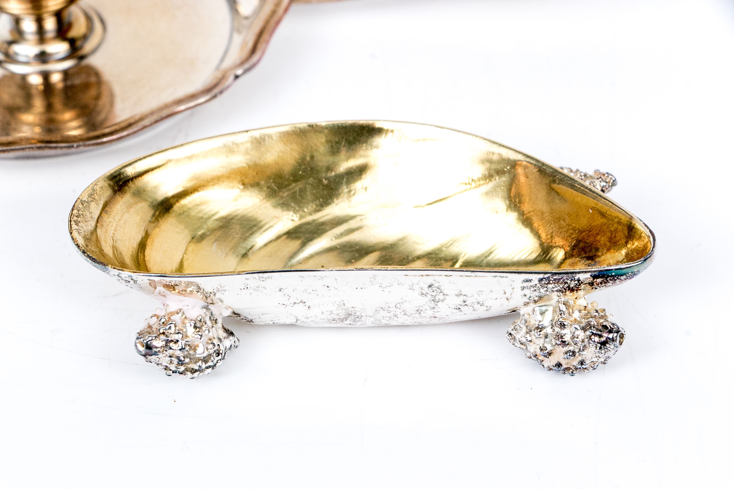 - Footed naturalistic form shell bowl on nautilus form feet