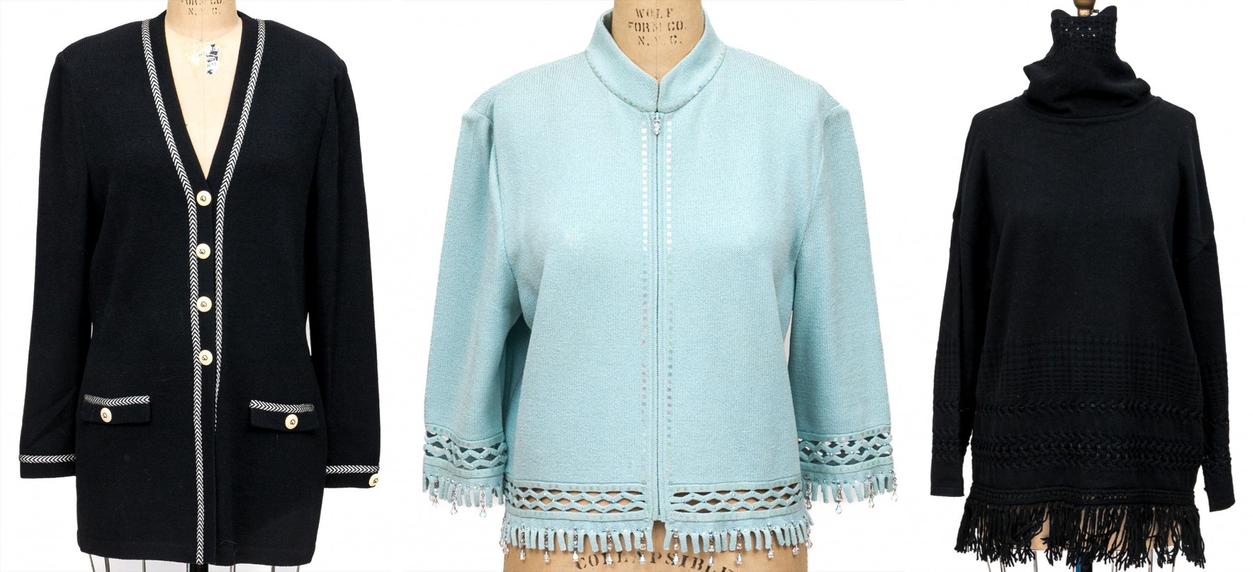 Two St. John Cardigans Size 12, And One Escada Sweater Size 38 #297090. Black Rock Galleries provides high end estate liquidation services through online estate auctions and a 50,000 sq ft designer showroom. estate liquidator, estate sale, online auction, antiques, fine art, liquidation, clean outs, auction, consignment, interior design, fine jewelry, collectibles, appraisals, estate appraisals, estate services, decor, furniture, furniture consignment, antique center, consignment shop. We offer appraisal services and specialize in fine art, jewelry, antiques and decorative arts. Sell with us. Black Rock Galleries is the tri-state's largest estate liquidator serving New England and the greater New York City area. We are the trusted source for expert appraisals, auction services, estate sales, and consignments. Black Rock Galleries is the east coast's largest and most trusted estate liquidator, with locations in Connecticut, greater Boston, MA and Raleigh, NC, Fairfield, Southport, Apex, TX. We are the best source for expert appraisals, auction services, estate sales and consignments. We have served thousands of families and estates with compassion, professionalism and expertise. BRG works with attorneys, executors, realtors and families to bring the greatest return on personal and estate property in the current market. Our unique combination of services make us the easy choice to get the job done in a timely and stress-free manner. We are with you from the initial consultation to the final clean out. Our house-built online auction software platform offers clients a dynamic approach to liquidating their personal property. This venue is most successful in bringing the best return with the least amount of disruption for our clients. See our services page for a complete description of this offering. Two St. John Cardigans Size 12, And One Escada Sweater Size 38 #297090