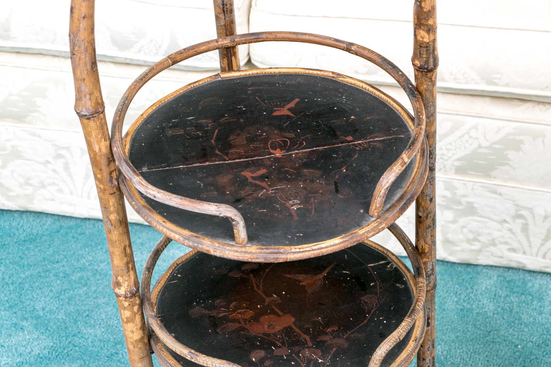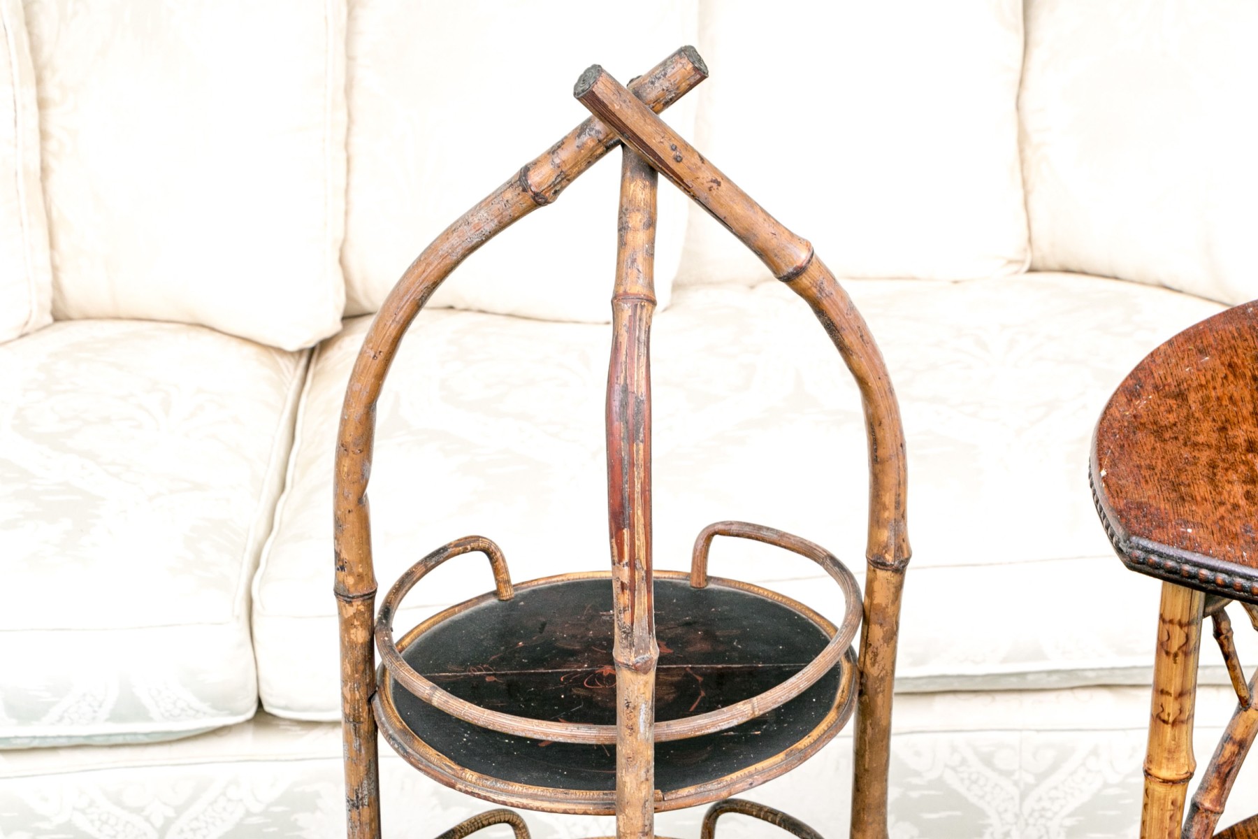 Some splits to the bamboo and wear to the finish with loose connections. Could be refurbished. Please review the photos as they are part of the condition report.