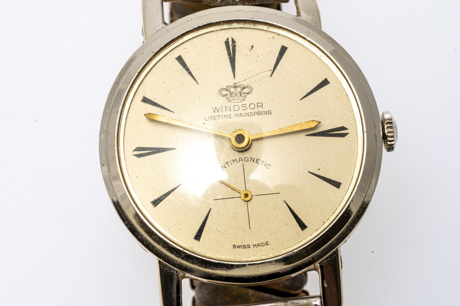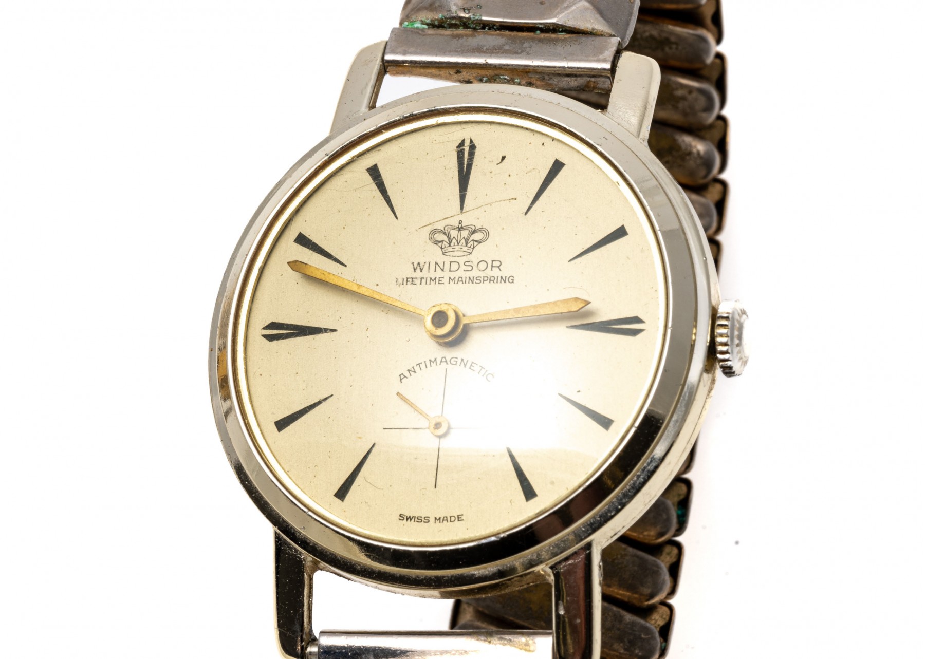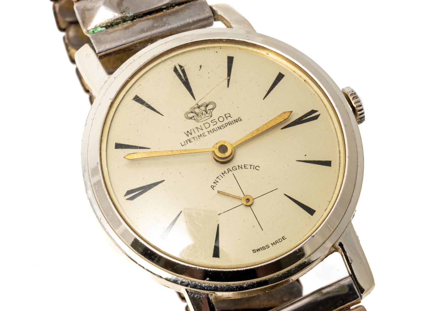 Condition: The Windsor has a loose and worn/scratched crystal, debris under crystal. Tarnishing.