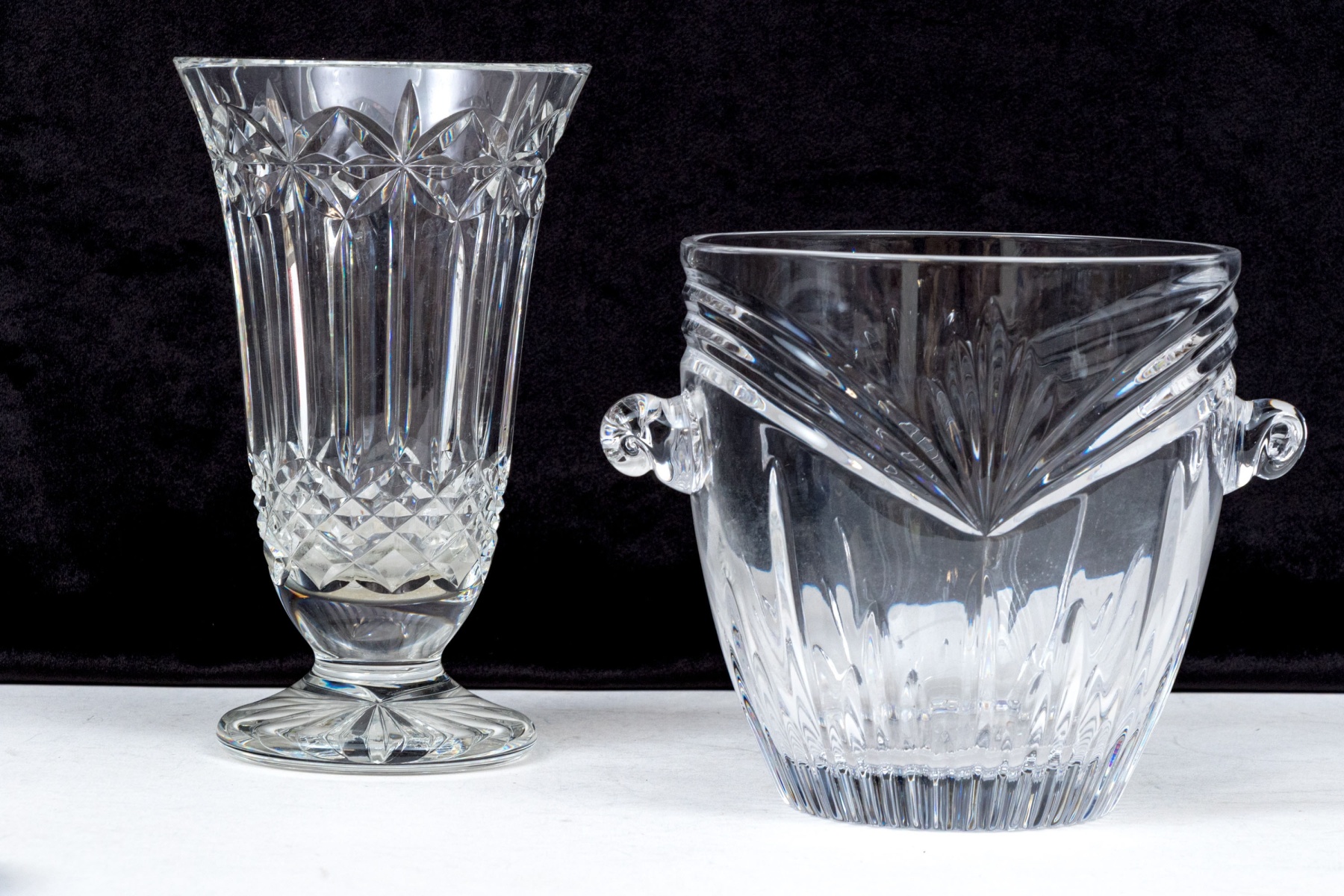 Comprised of a footed trumpet vase, together with a twin handled wine cooler.
