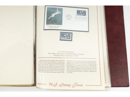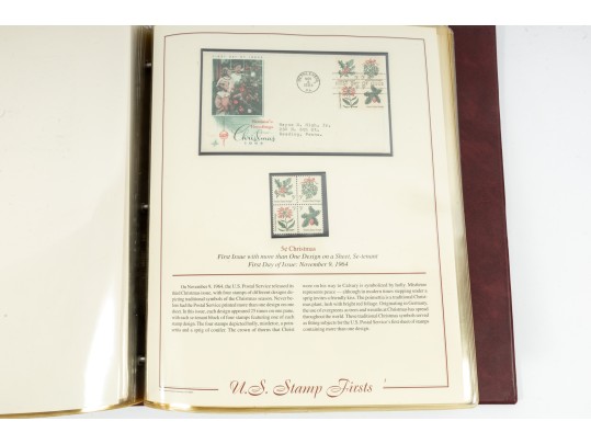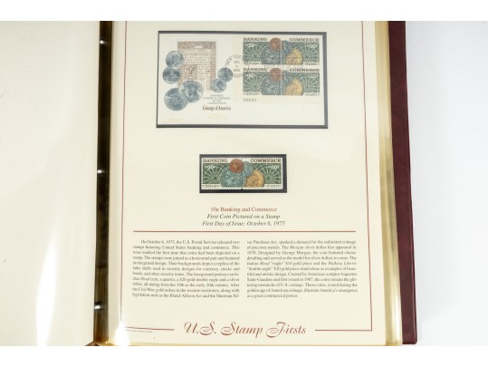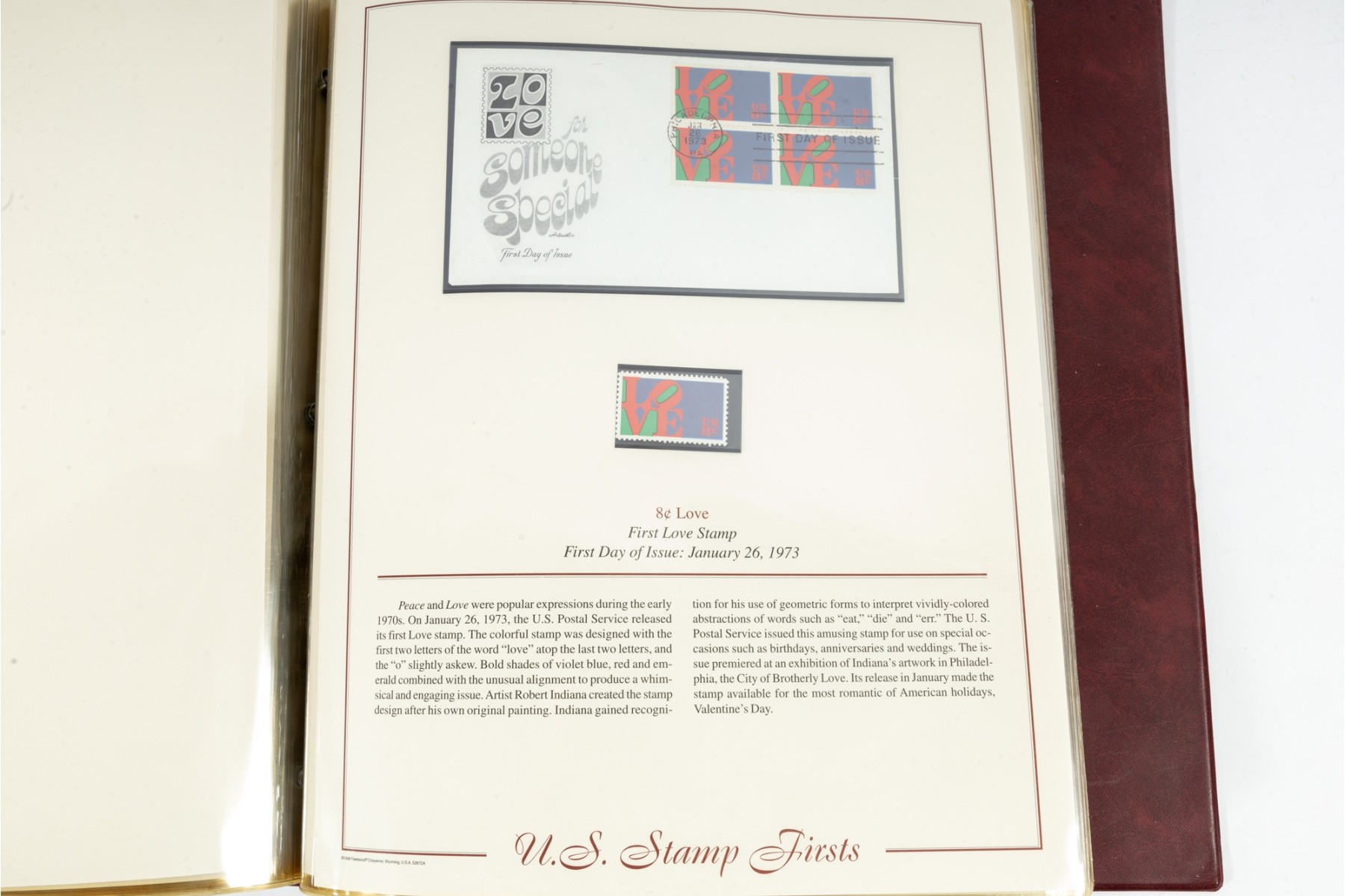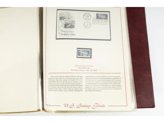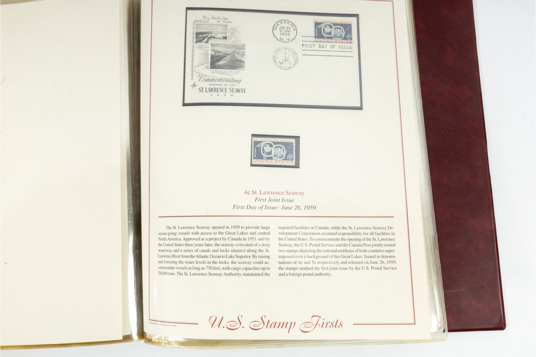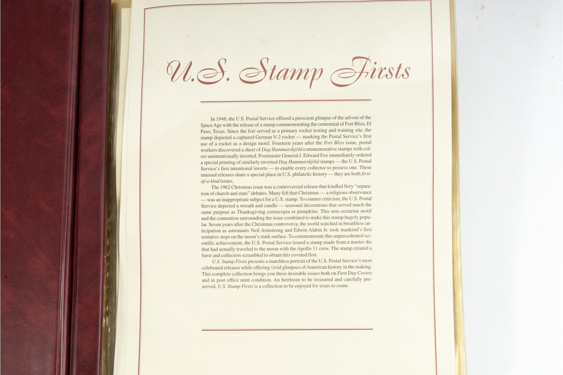An official album of U.S. stamp firsts -- Special stamps produced to recognize/commemorate the accomplishments, inventions, and historical events within the United States of America. The album is comprehensive and complete, see photos for details.