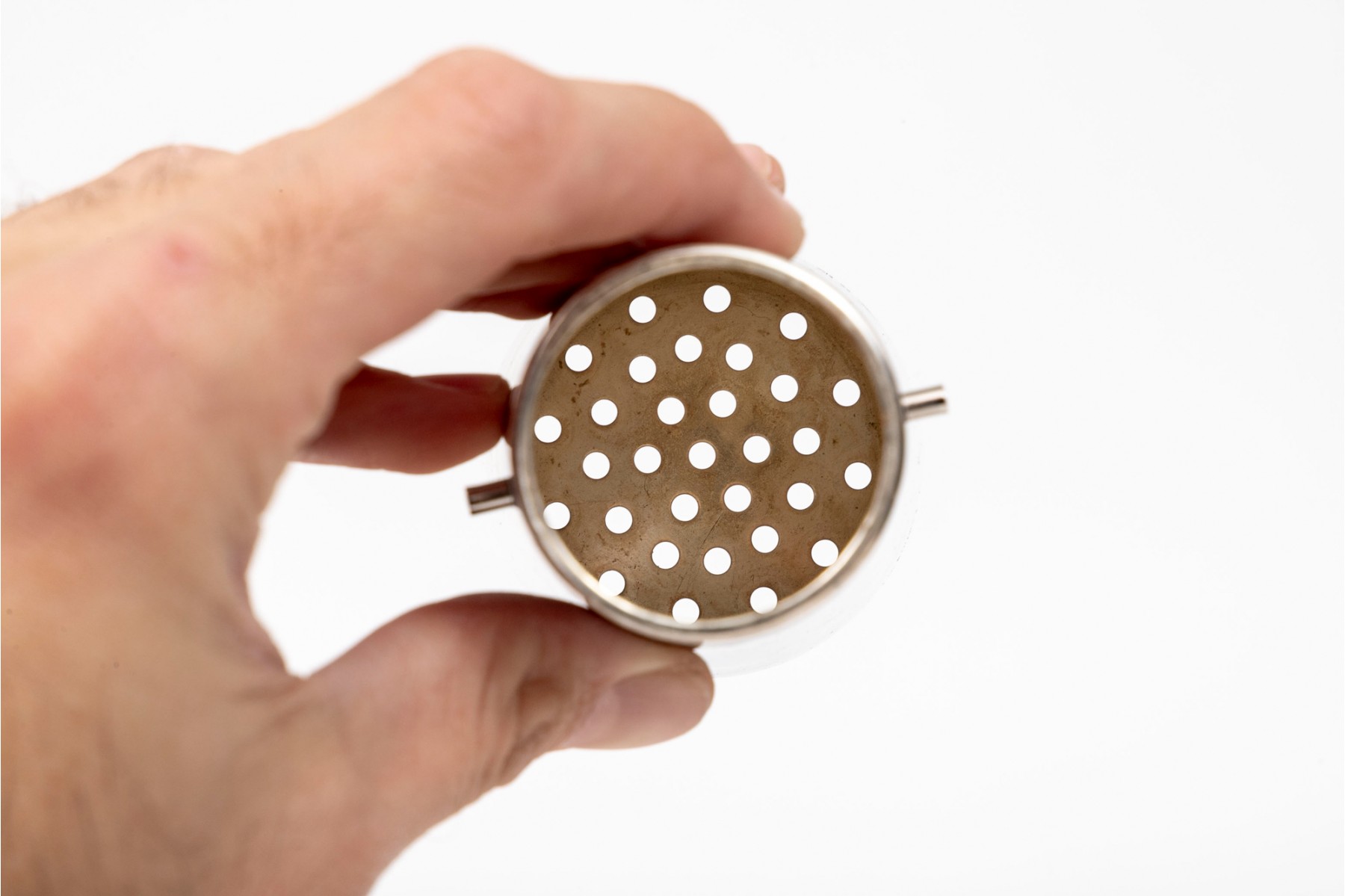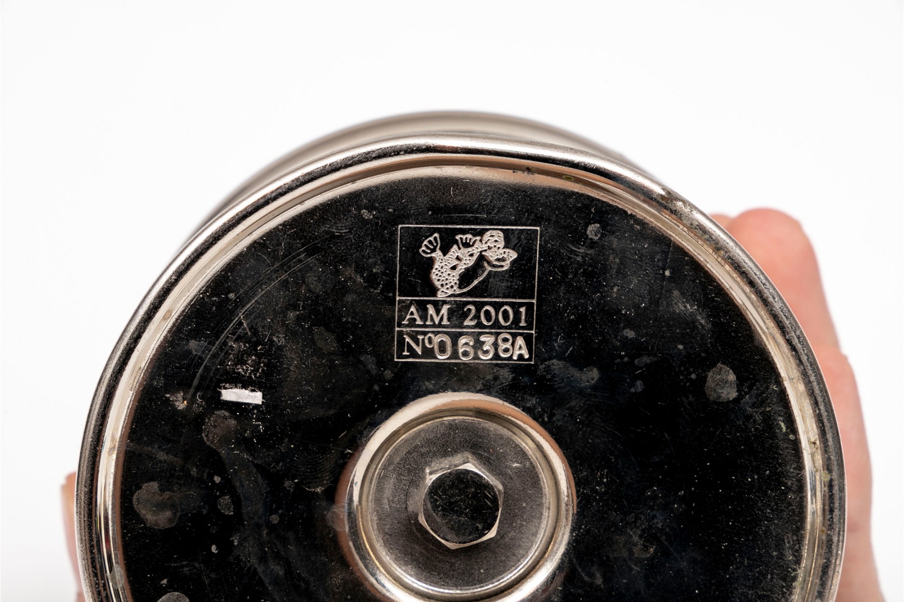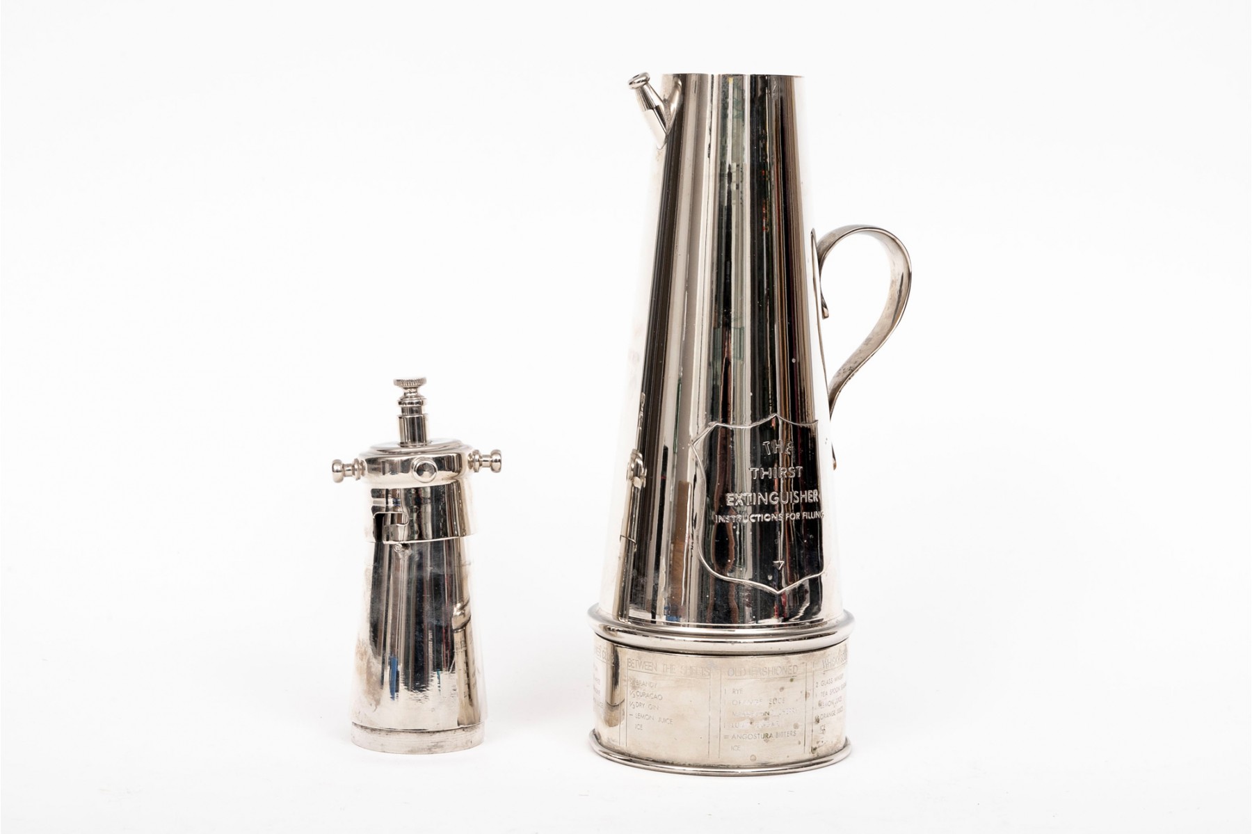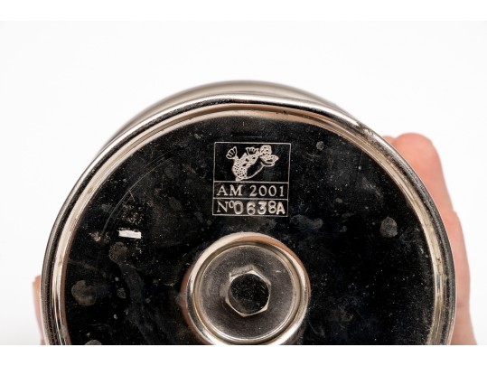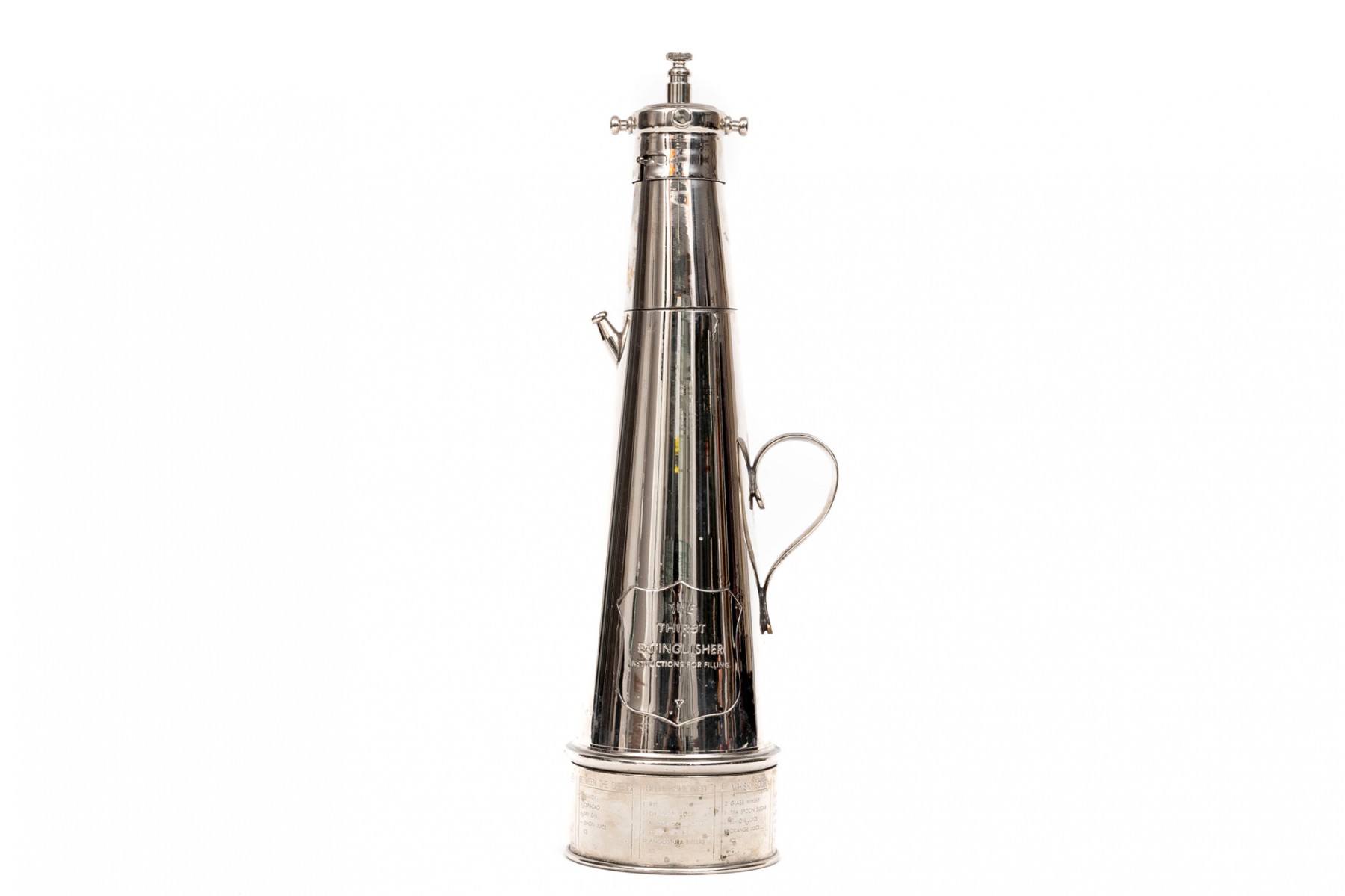 Stainless steel drink mixer. The mixer has a rotating bottom displaying instructions for missing classic drinks. Unique addition to your collection.