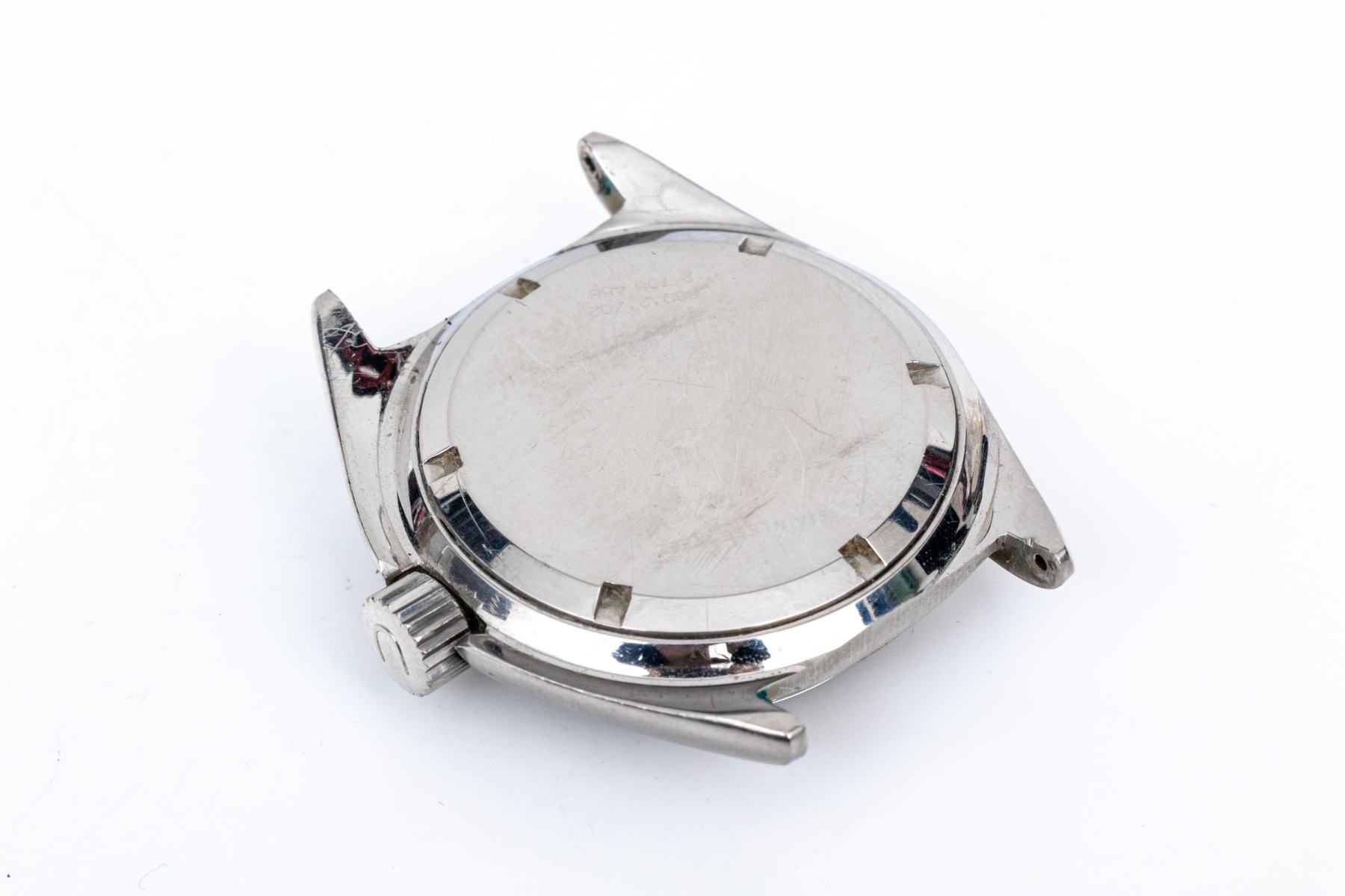 Condition: Crystal is abraded, scratched and crazed; bezel is missing; dial has darkening to markers, hands are starting to see losses. The watch is in running condition, however the accuracy of the timekeeping is unknown. In as-is condition due to the missing bezel