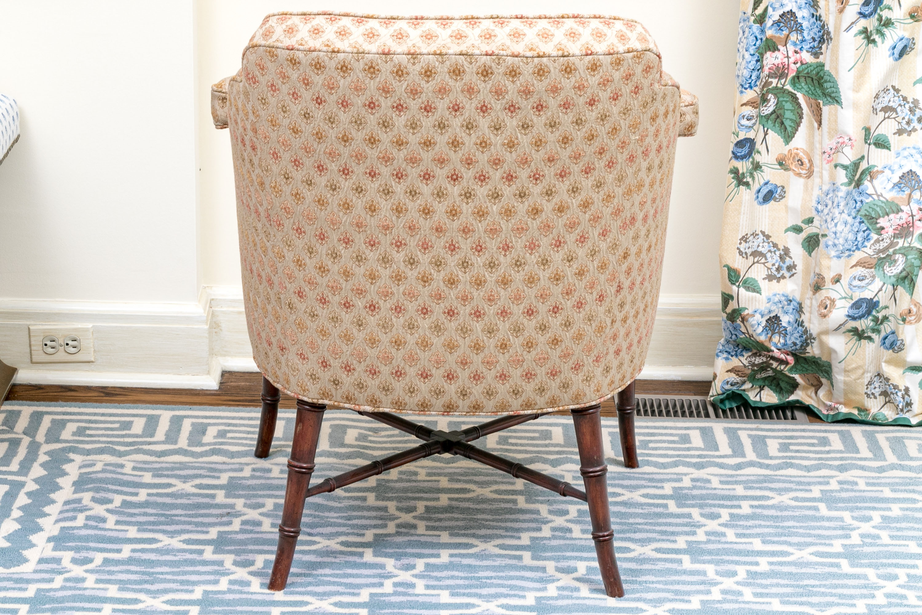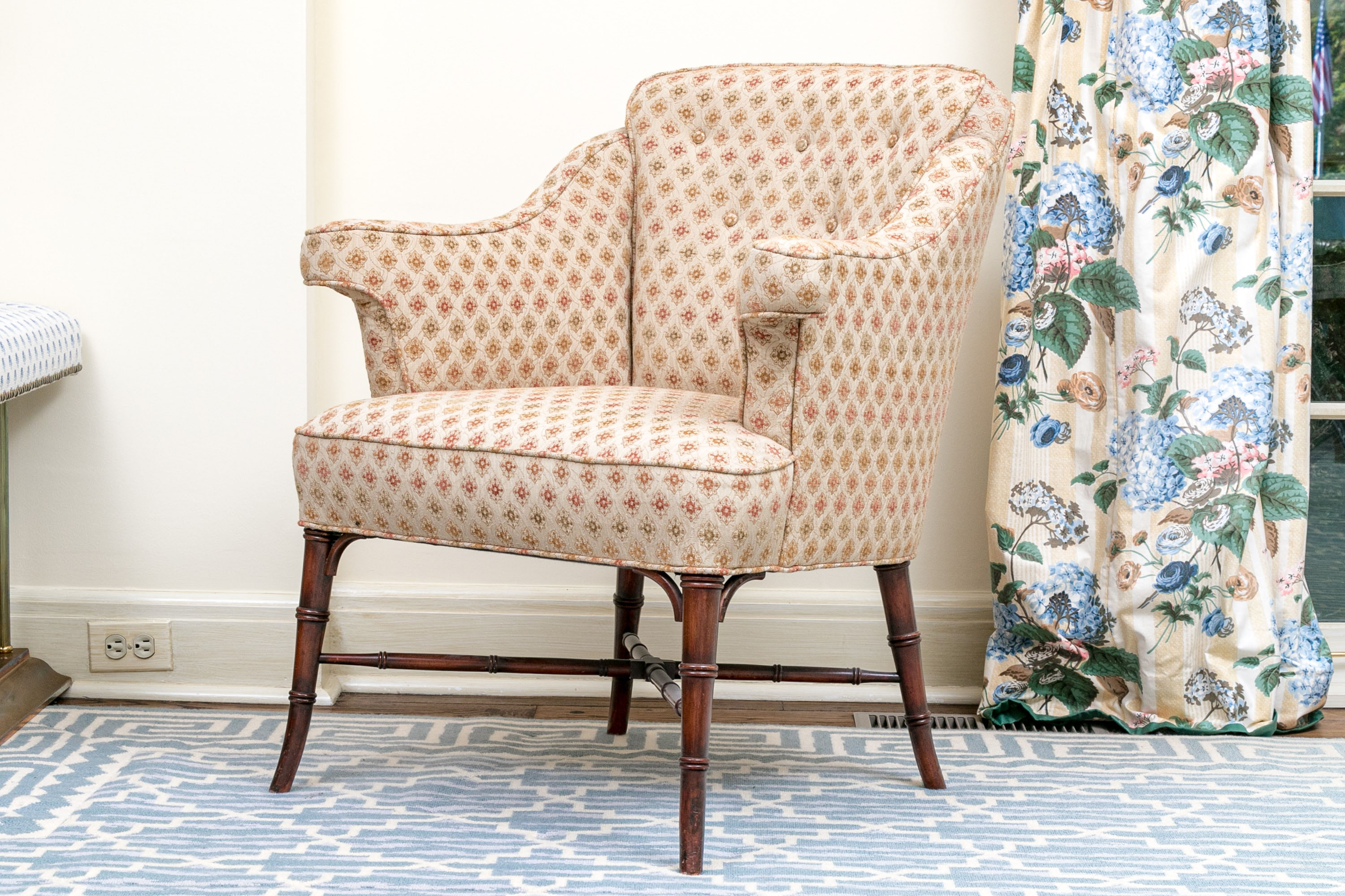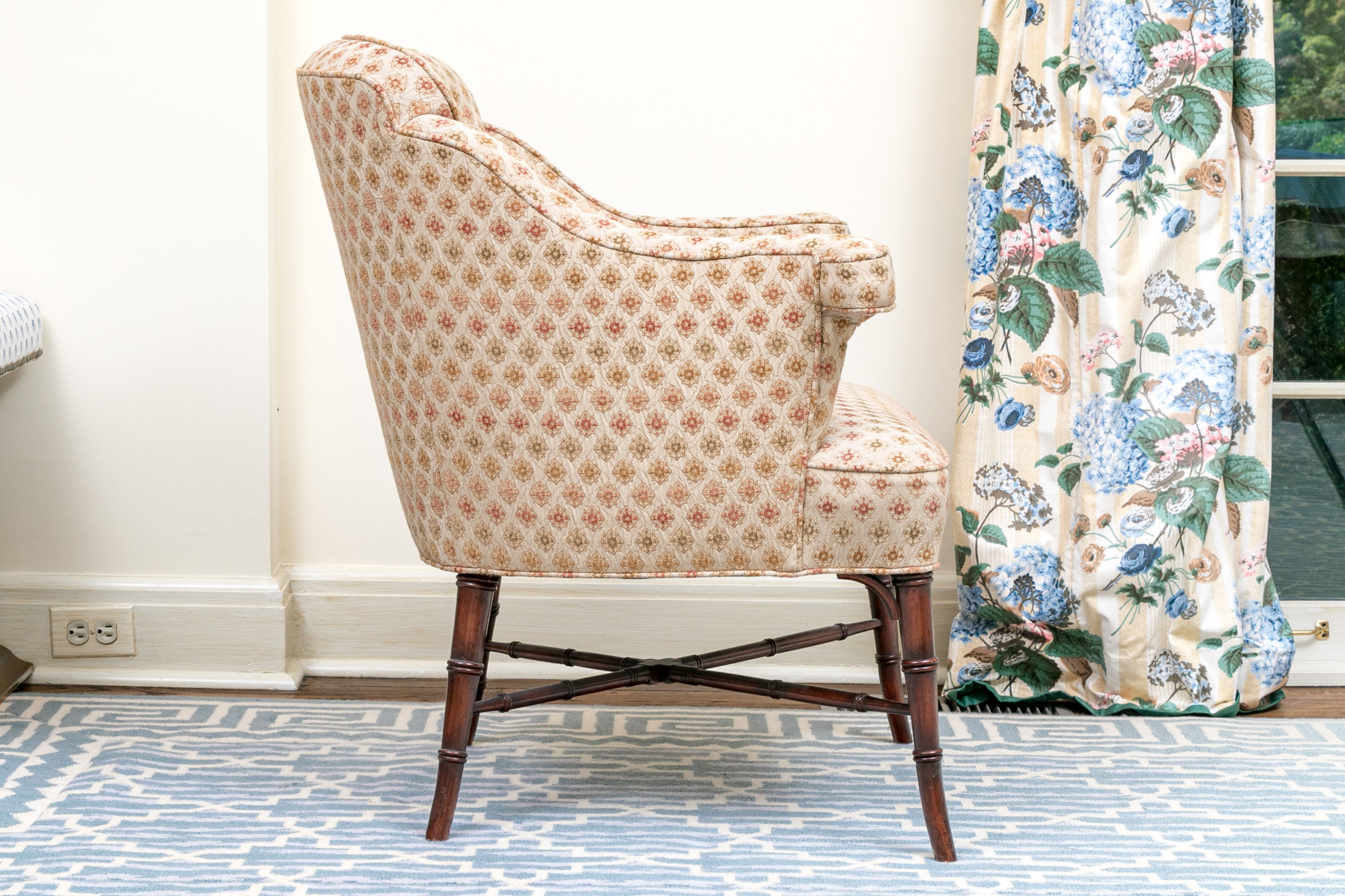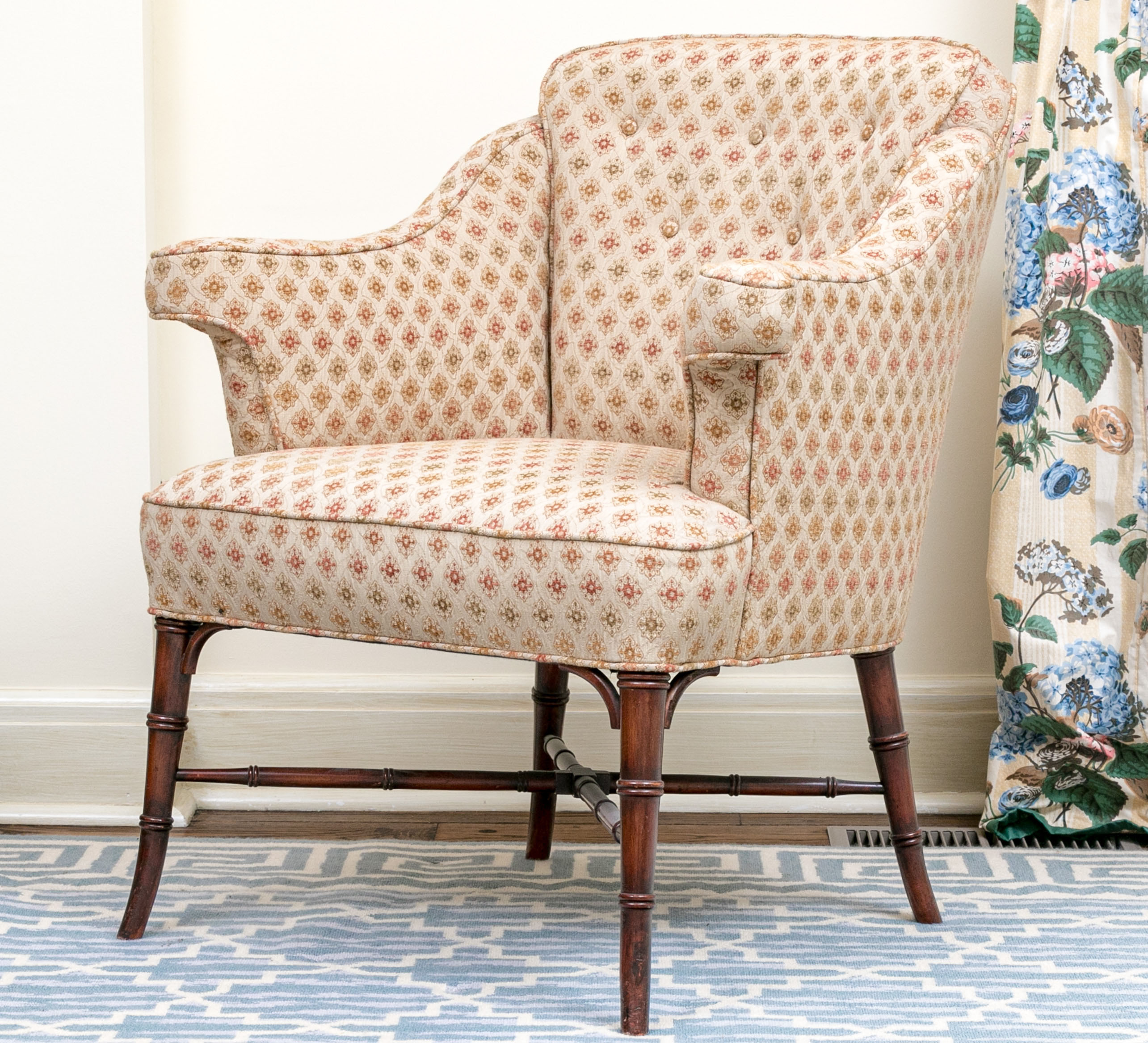 Upholstered Tub Back Armchair With Faux Bamboo Frame #290310. Black Rock Galleries provides high end estate liquidation services through online estate auctions and a 50,000 sq ft designer showroom. estate liquidator, estate sale, online auction, antiques, fine art, liquidation, clean outs, auction, consignment, interior design, fine jewelry, collectibles, appraisals, estate appraisals, estate services, decor, furniture, furniture consignment, antique center, consignment shop. We offer appraisal services and specialize in fine art, jewelry, antiques and decorative arts. Sell with us. Black Rock Galleries is the tri-state's largest estate liquidator serving New England and the greater New York City area. We are the trusted source for expert appraisals, auction services, estate sales, and consignments. Black Rock Galleries is the east coast's largest and most trusted estate liquidator, with locations in Connecticut, greater Boston, MA and Raleigh, NC, Fairfield, Southport, Apex, TX. We are the best source for expert appraisals, auction services, estate sales and consignments. We have served thousands of families and estates with compassion, professionalism and expertise. BRG works with attorneys, executors, realtors and families to bring the greatest return on personal and estate property in the current market. Our unique combination of services make us the easy choice to get the job done in a timely and stress-free manner. We are with you from the initial consultation to the final clean out. Our house-built online auction software platform offers clients a dynamic approach to liquidating their personal property. This venue is most successful in bringing the best return with the least amount of disruption for our clients. See our services page for a complete description of this offering. Upholstered Tub Back Armchair With Faux Bamboo Frame #290310