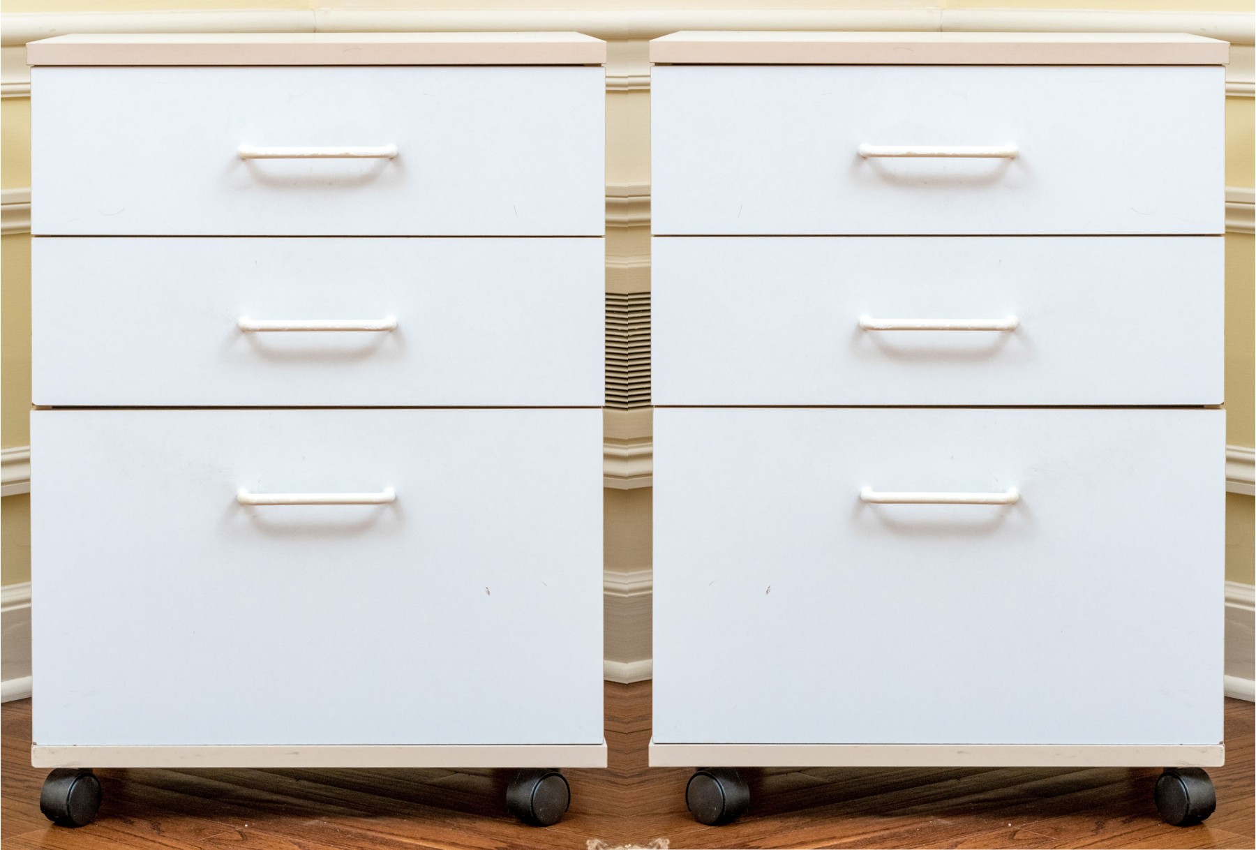 The pair with rectangular cases, featuring a pair of drawers over a deeper cabinet for filing.