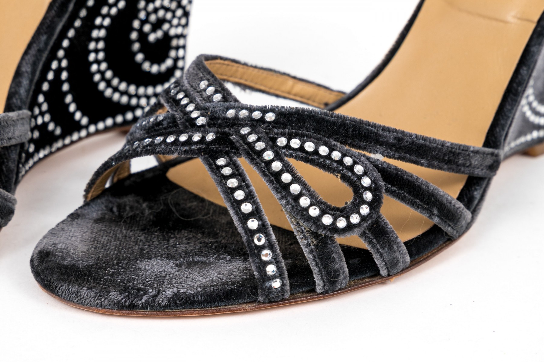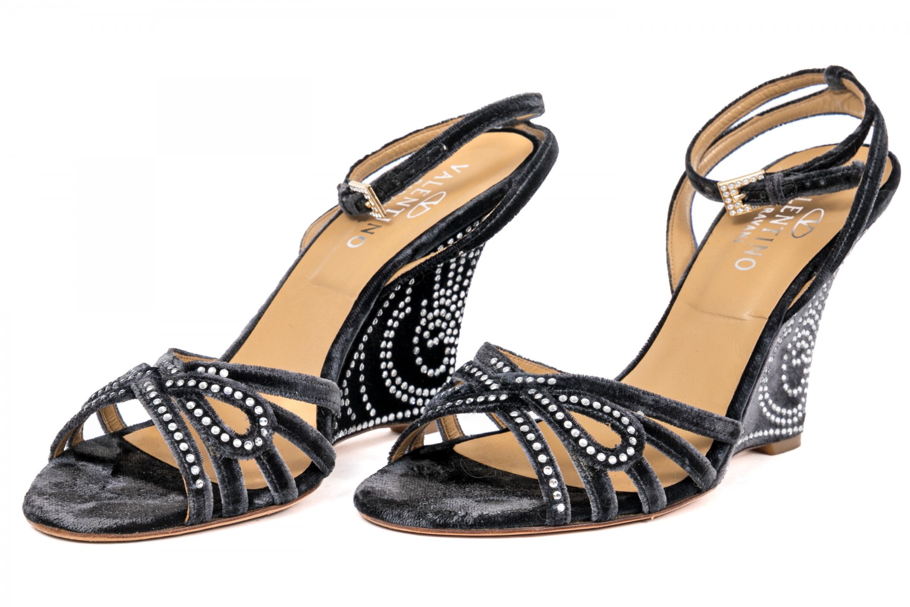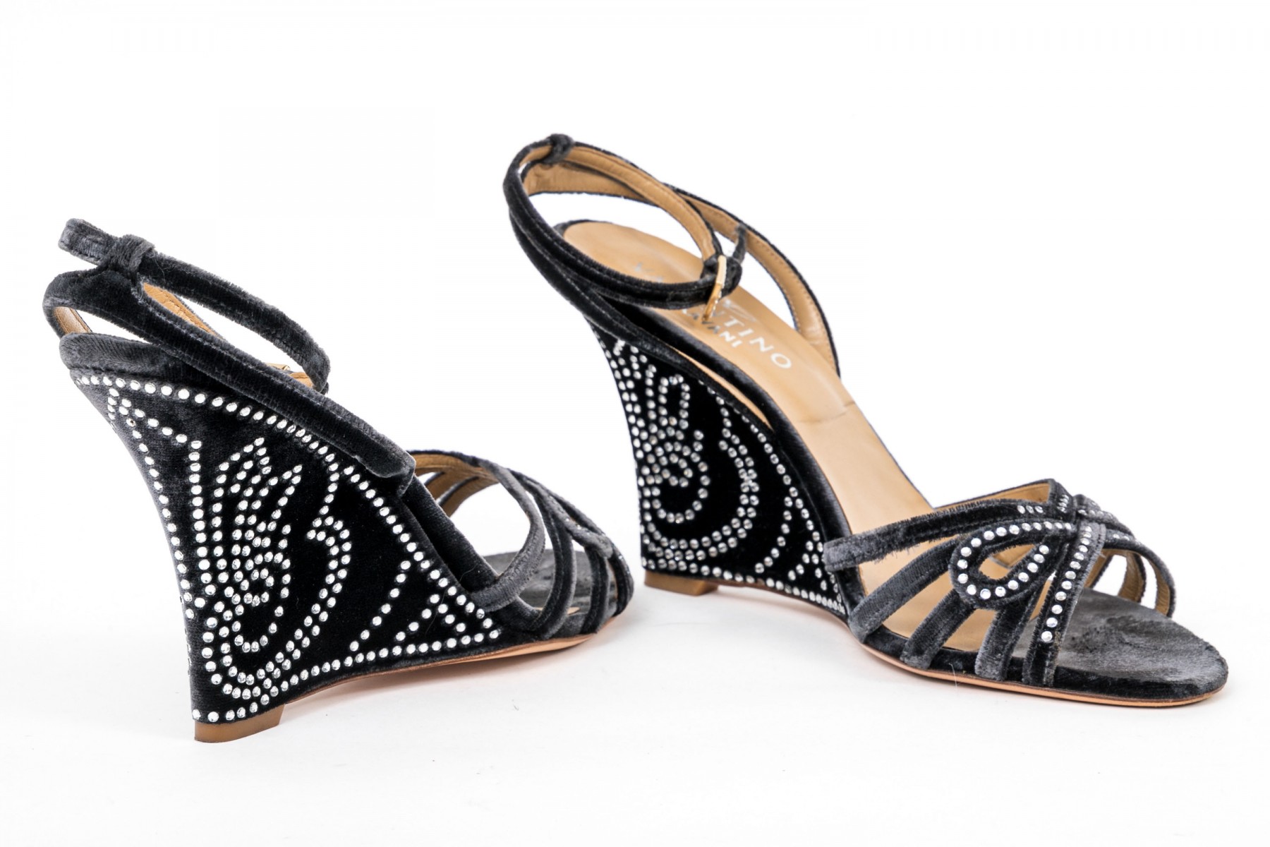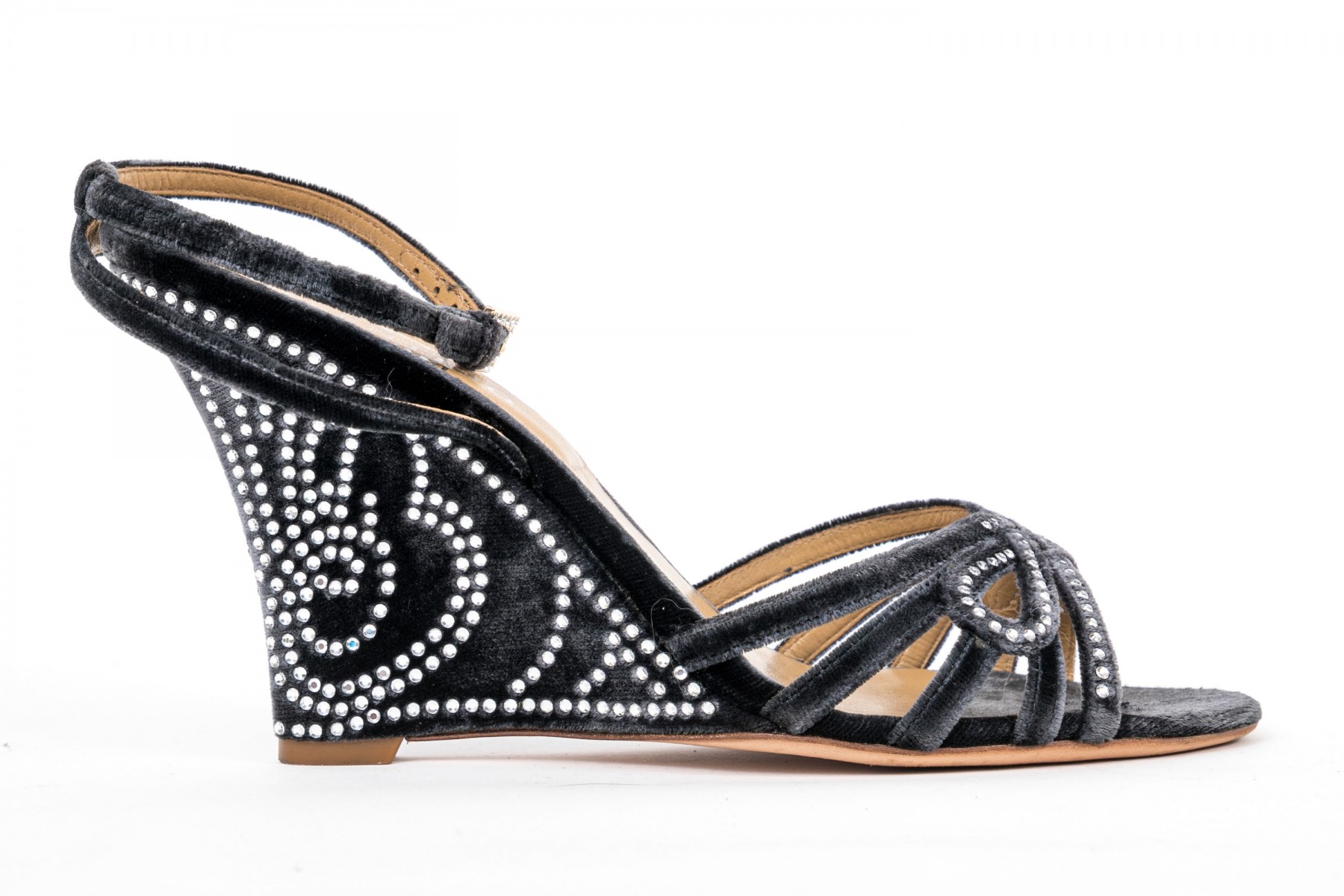 Valentino Garavini extravagant, dark grey strappy wedge sandals, bejeweled, size 40 1/2