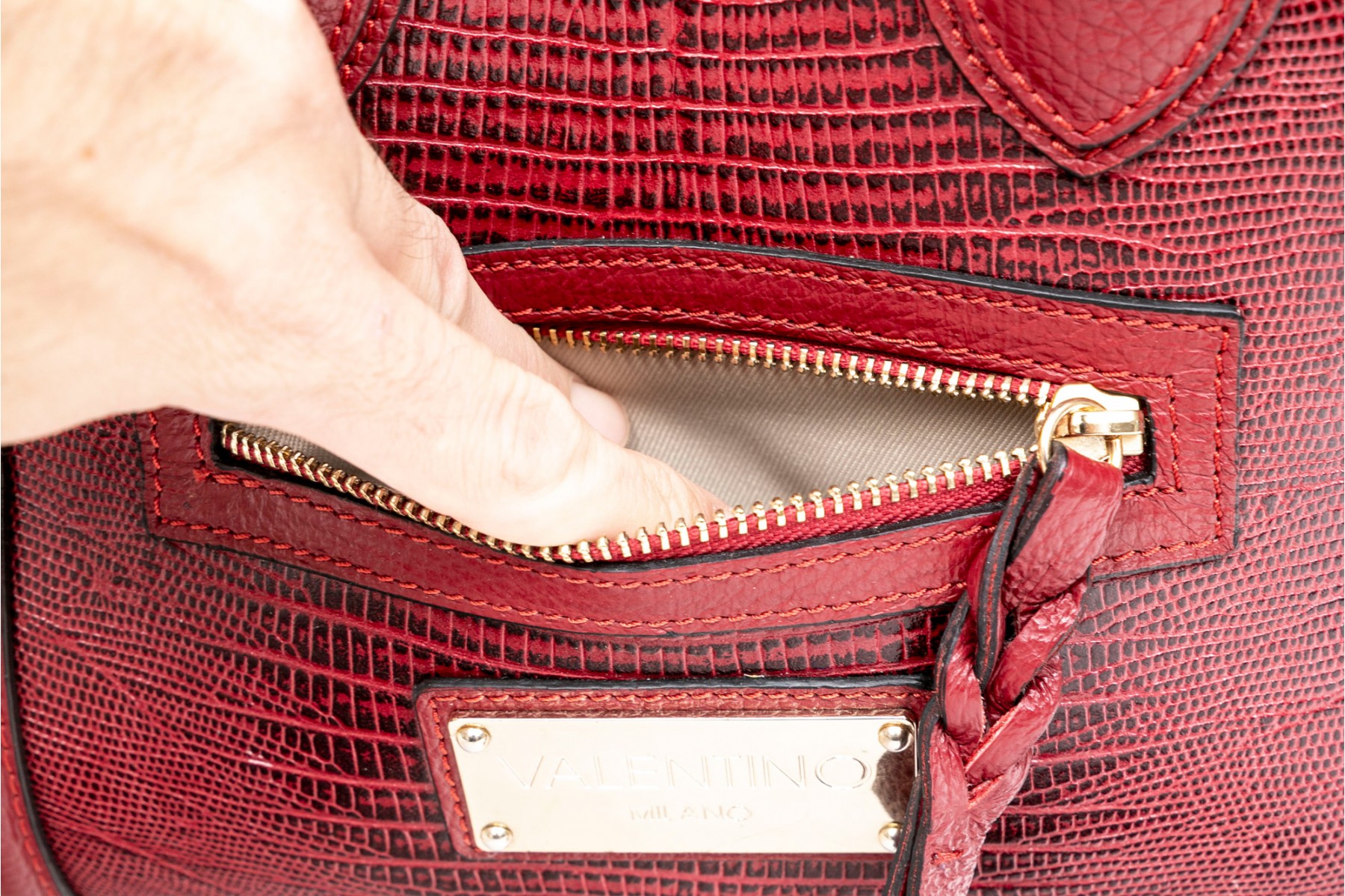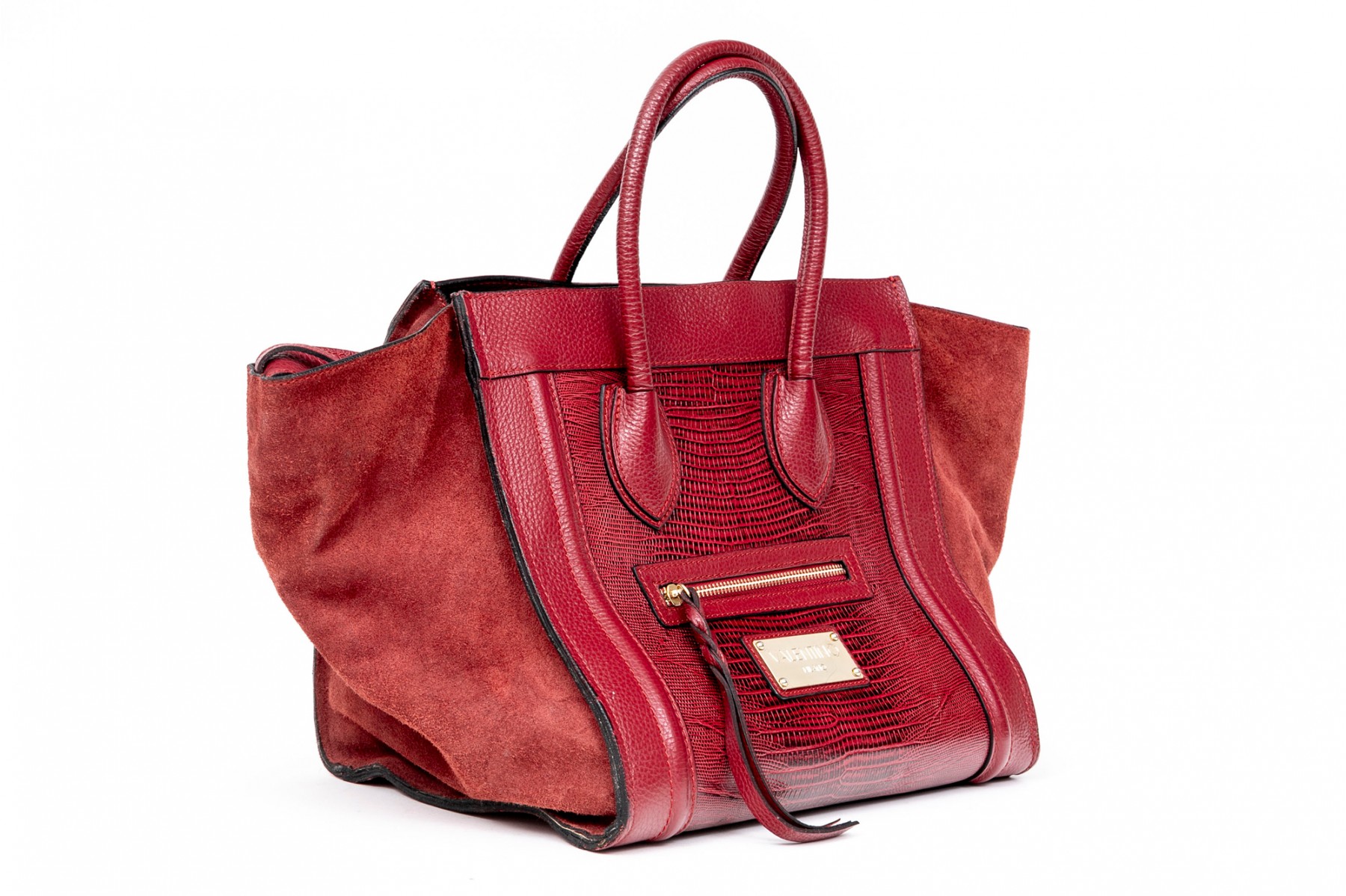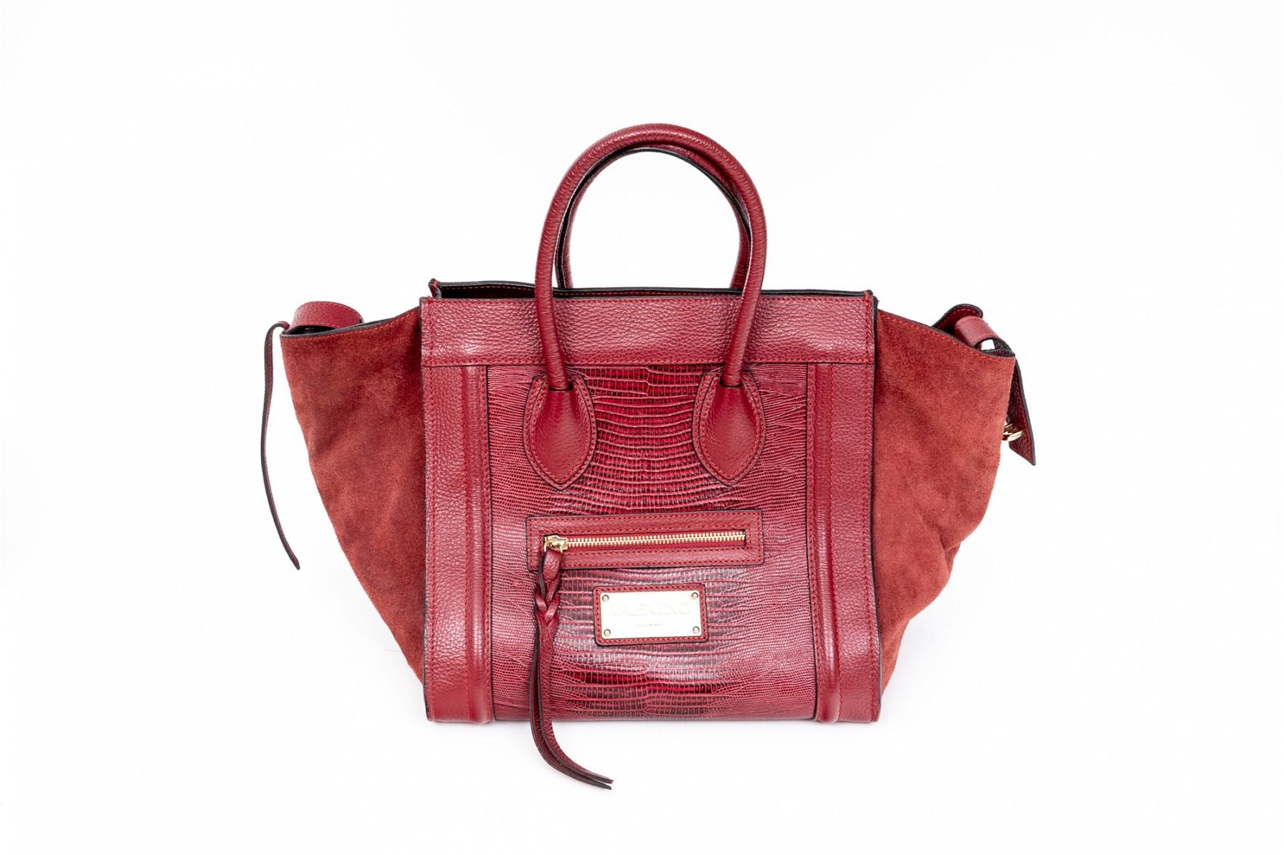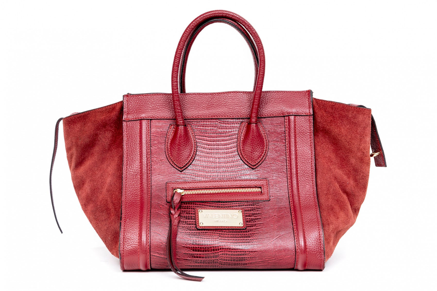 Valentino lavish burgundy leather, alligator and suede oversized top handle bag