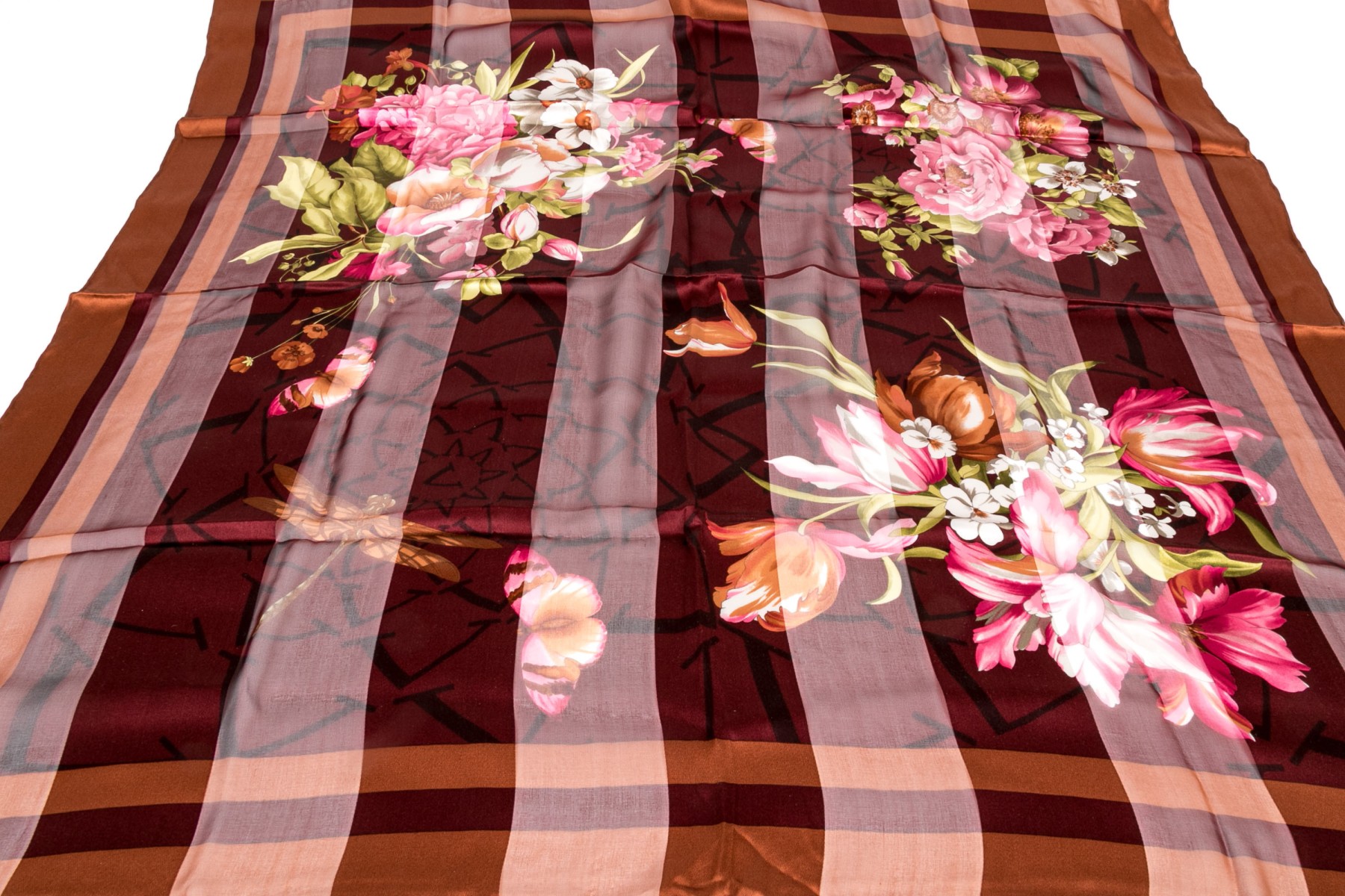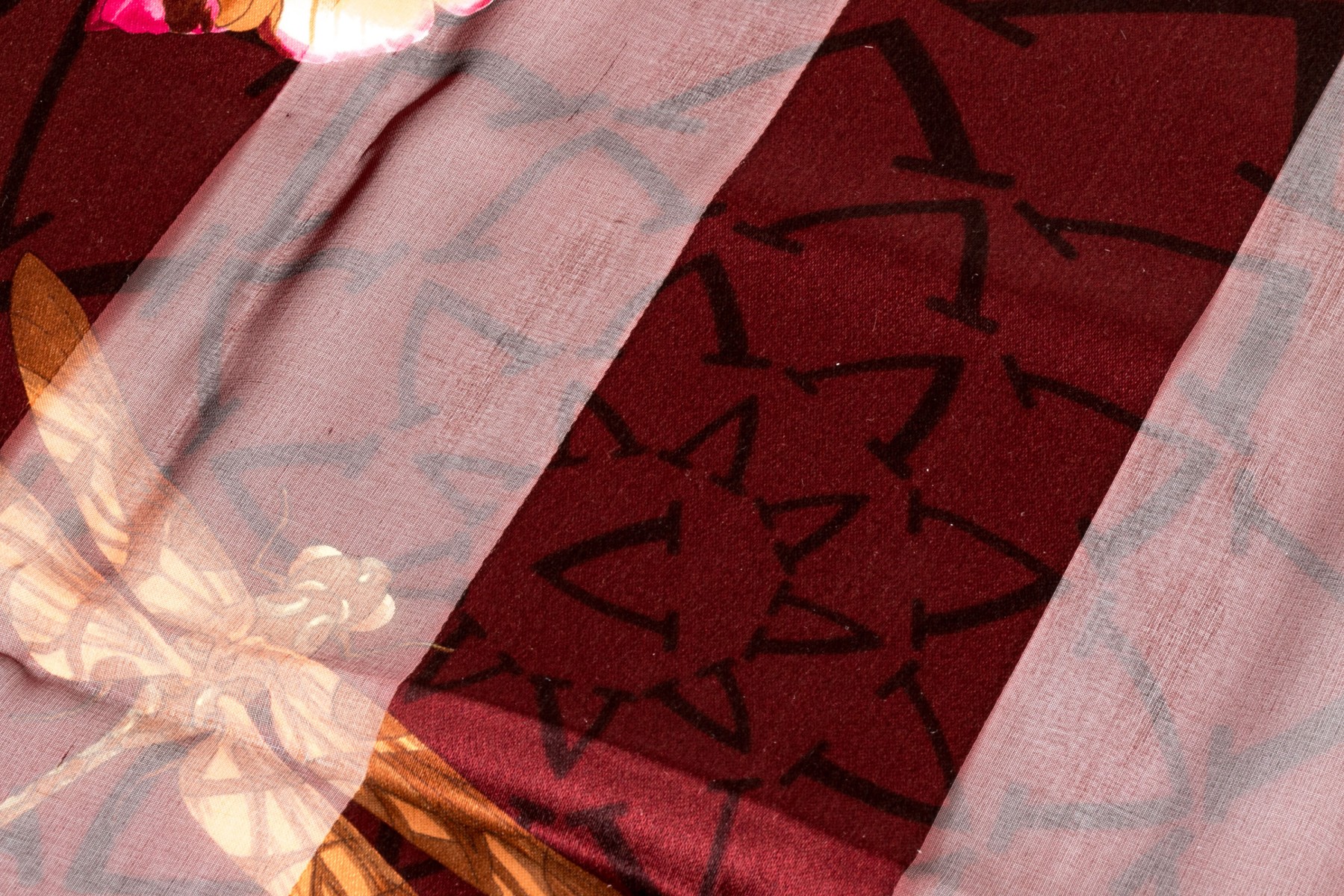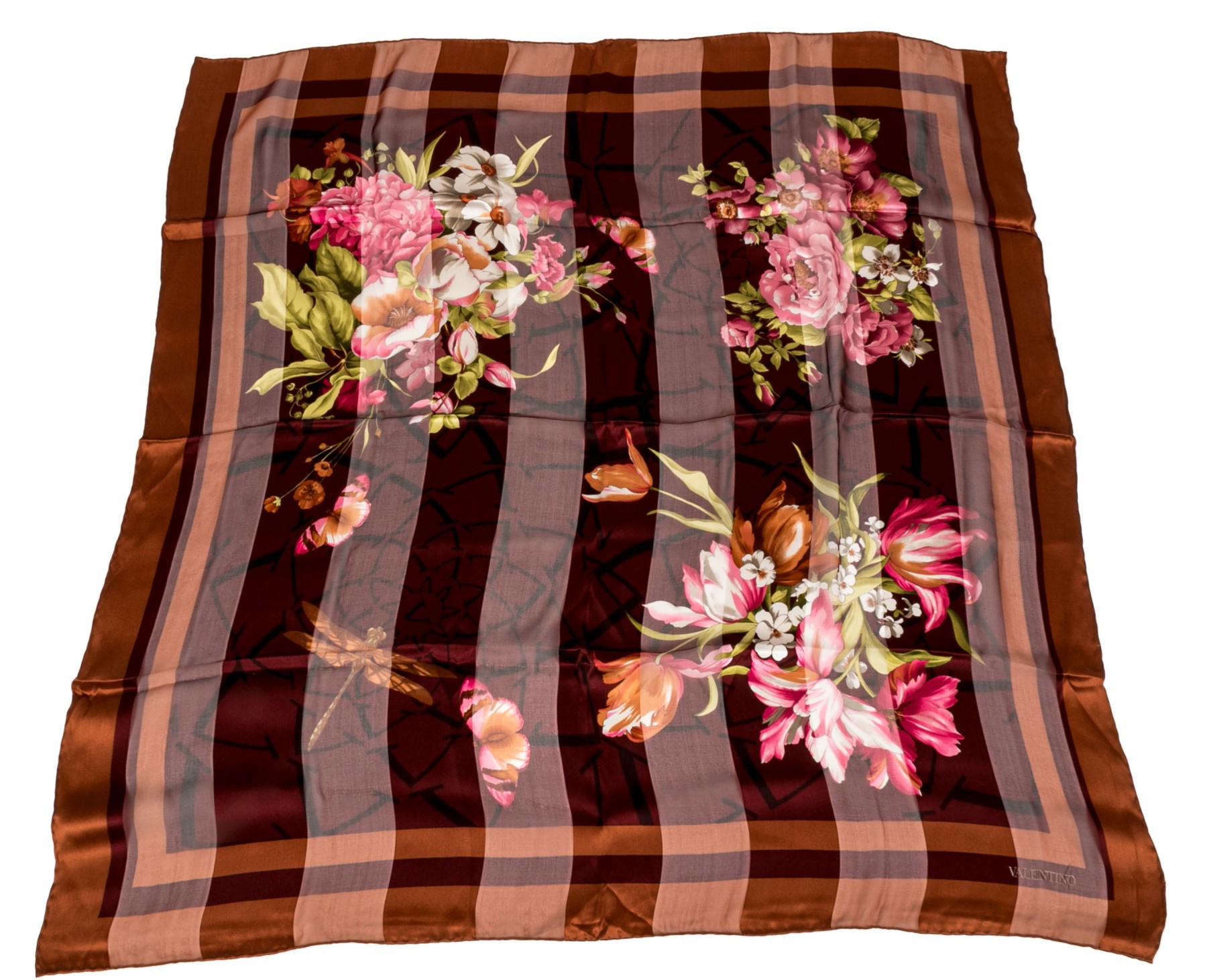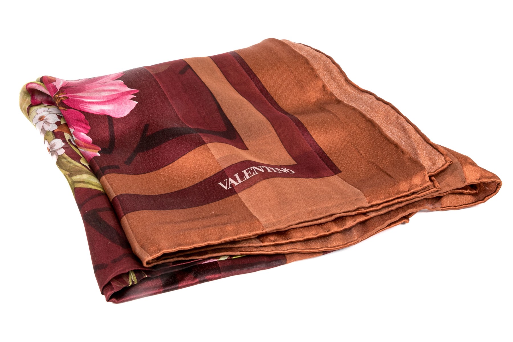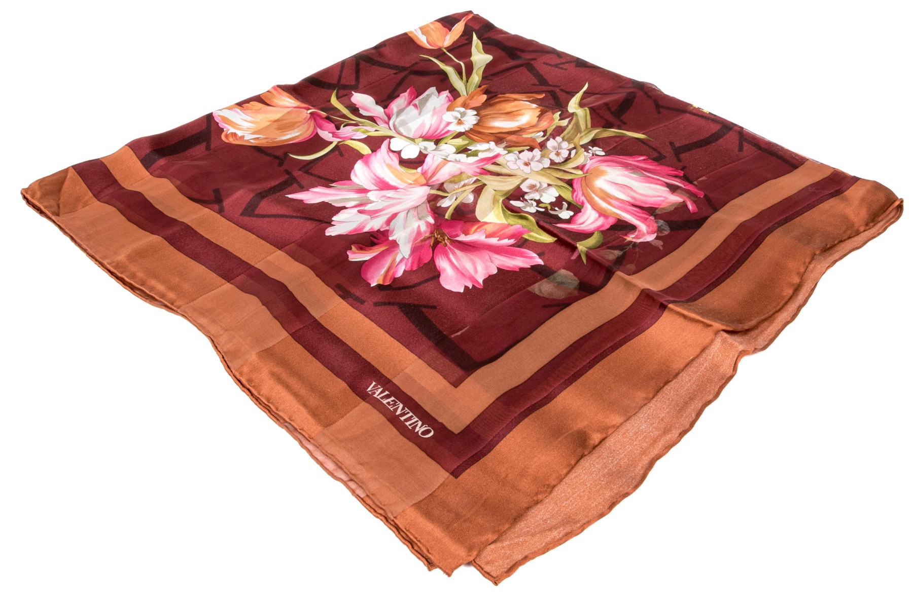 Valentino lovely burgundy and coppper floral motif silk scarf