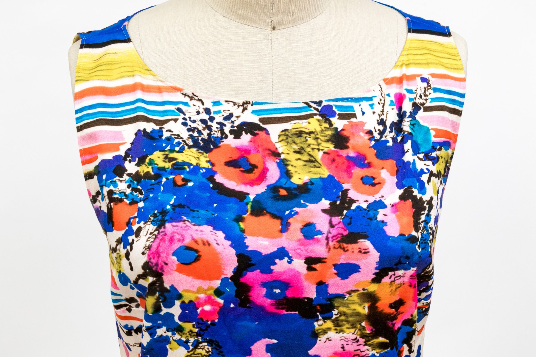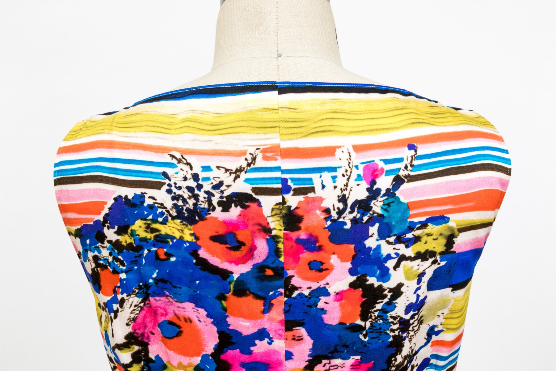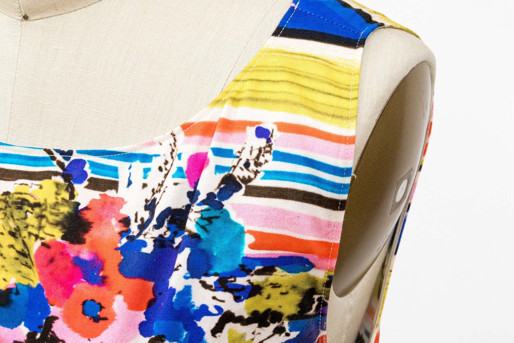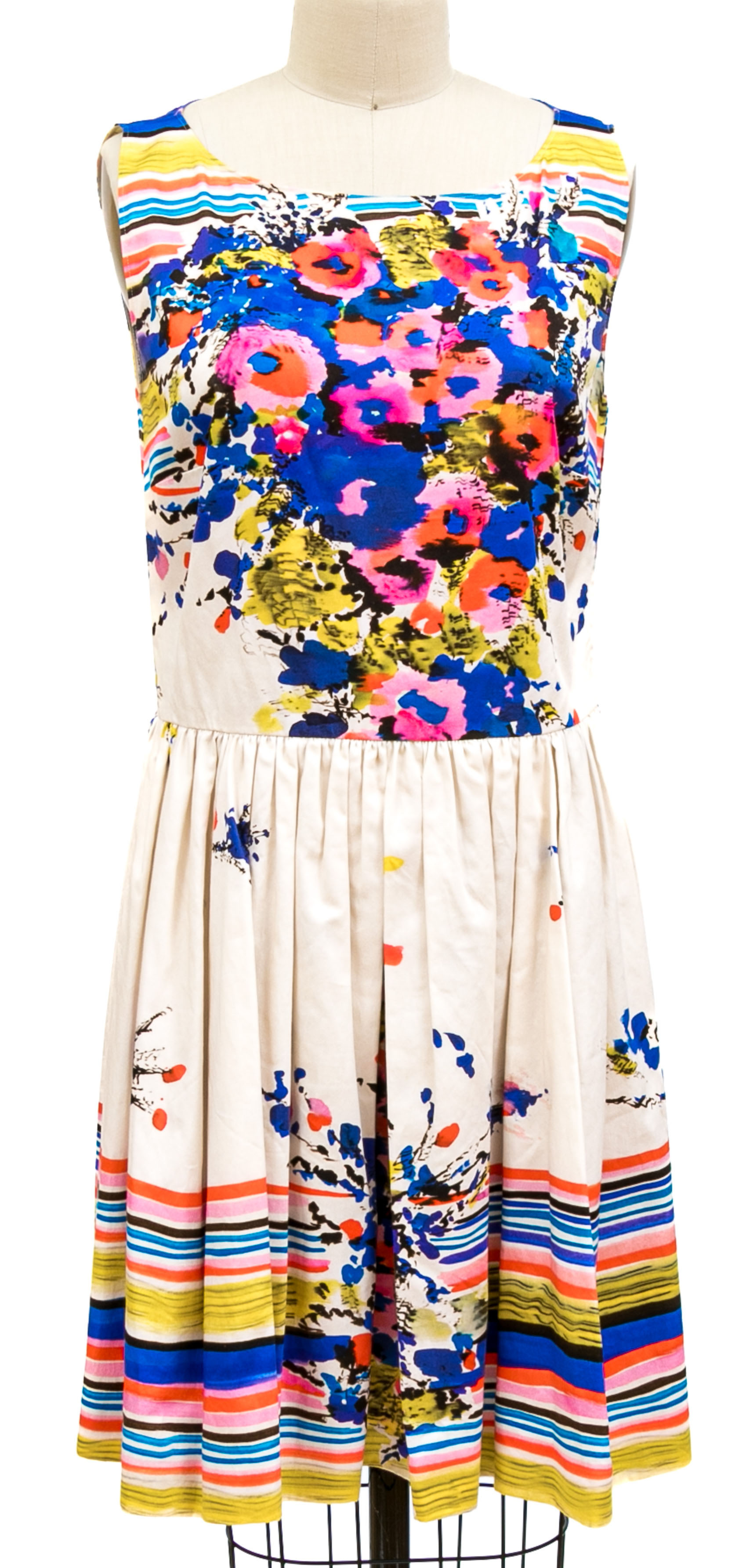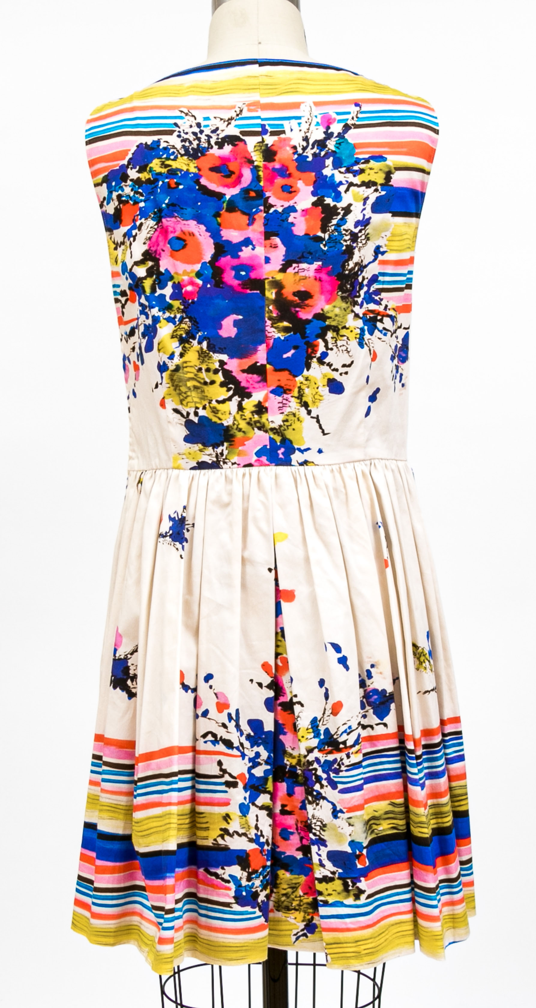 Valentino Red bright multi color sleeveless cotton dress, gathered skirt, size 48