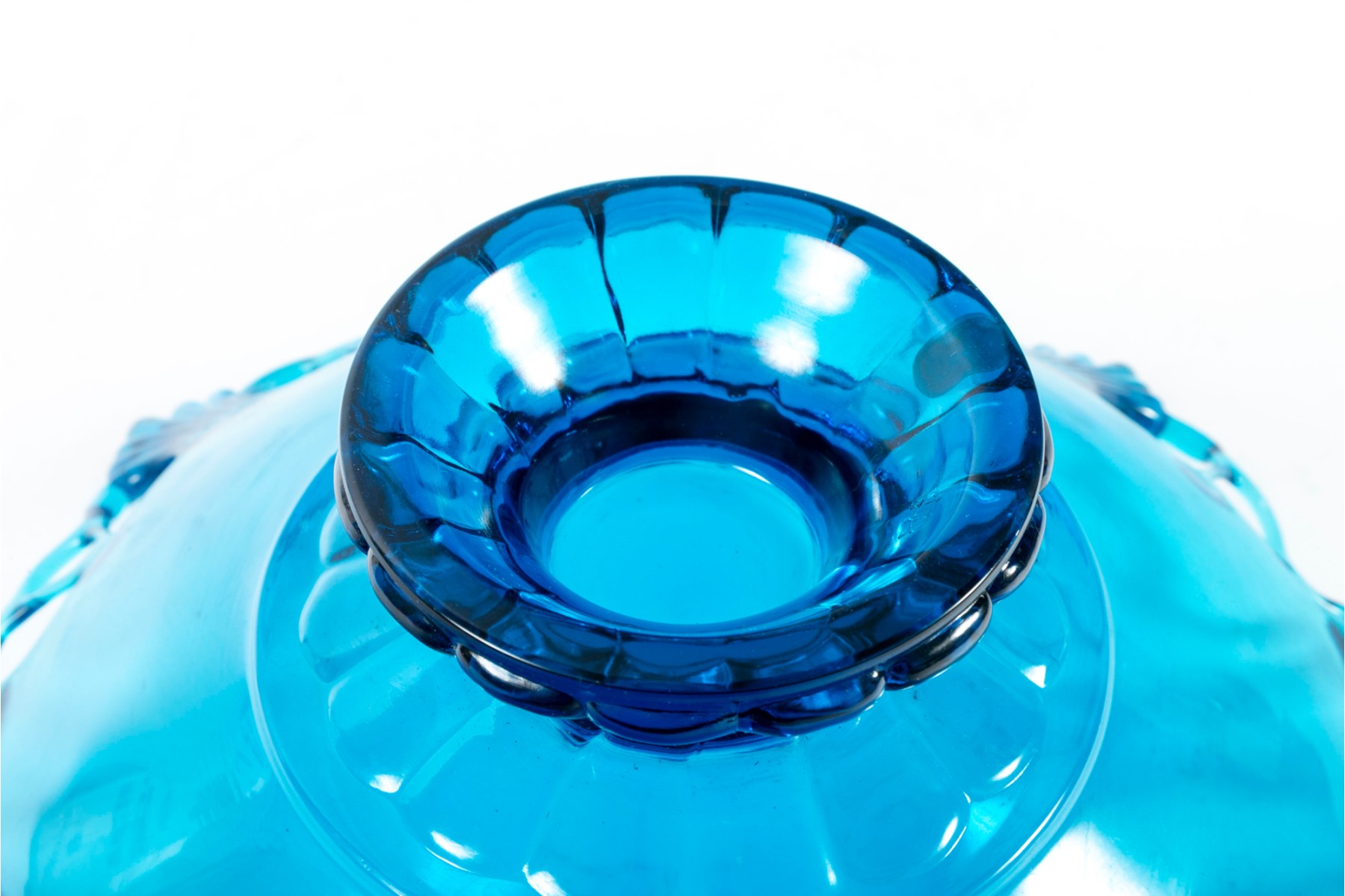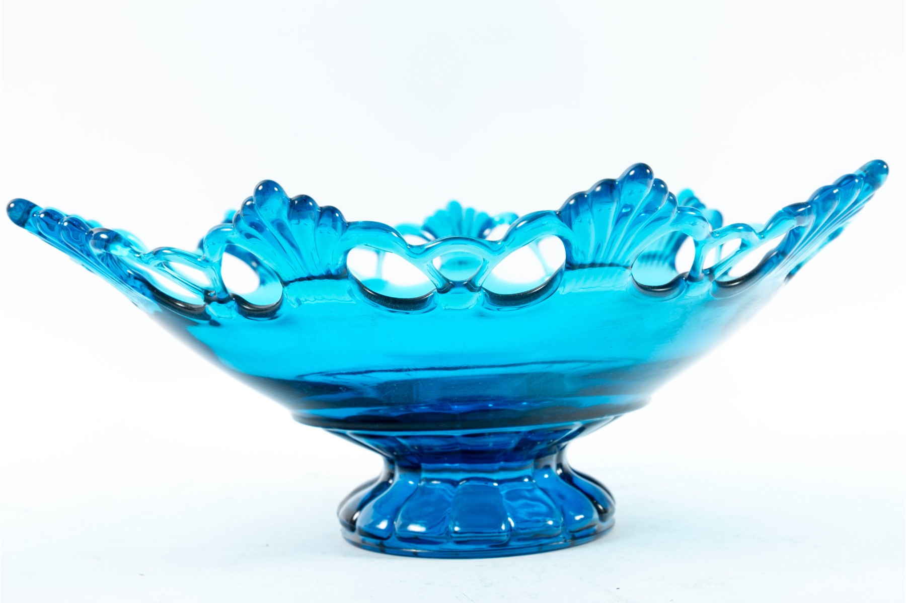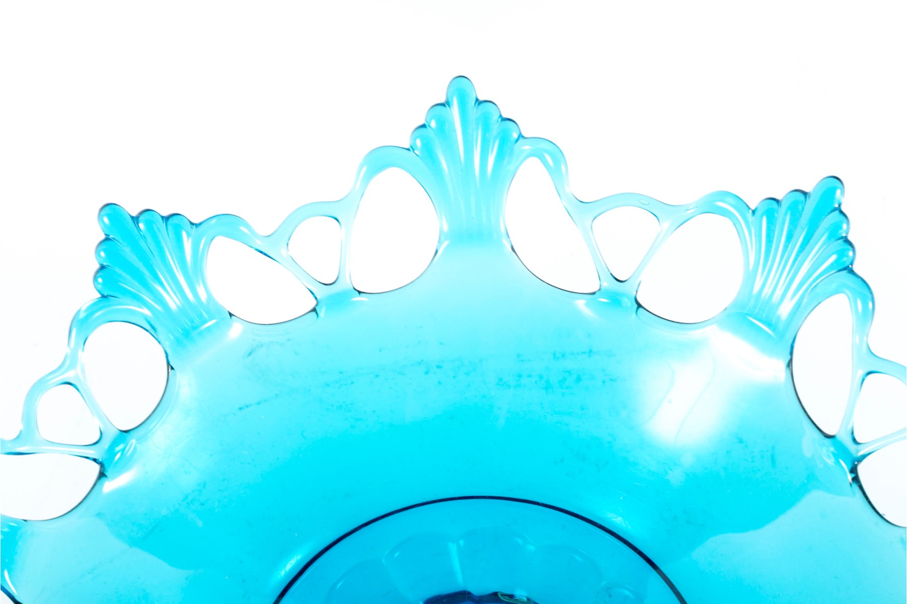 A beautifully crafted aqua blue glass petal bowl produced by Westmoreland in the 1950's, perfect for display.