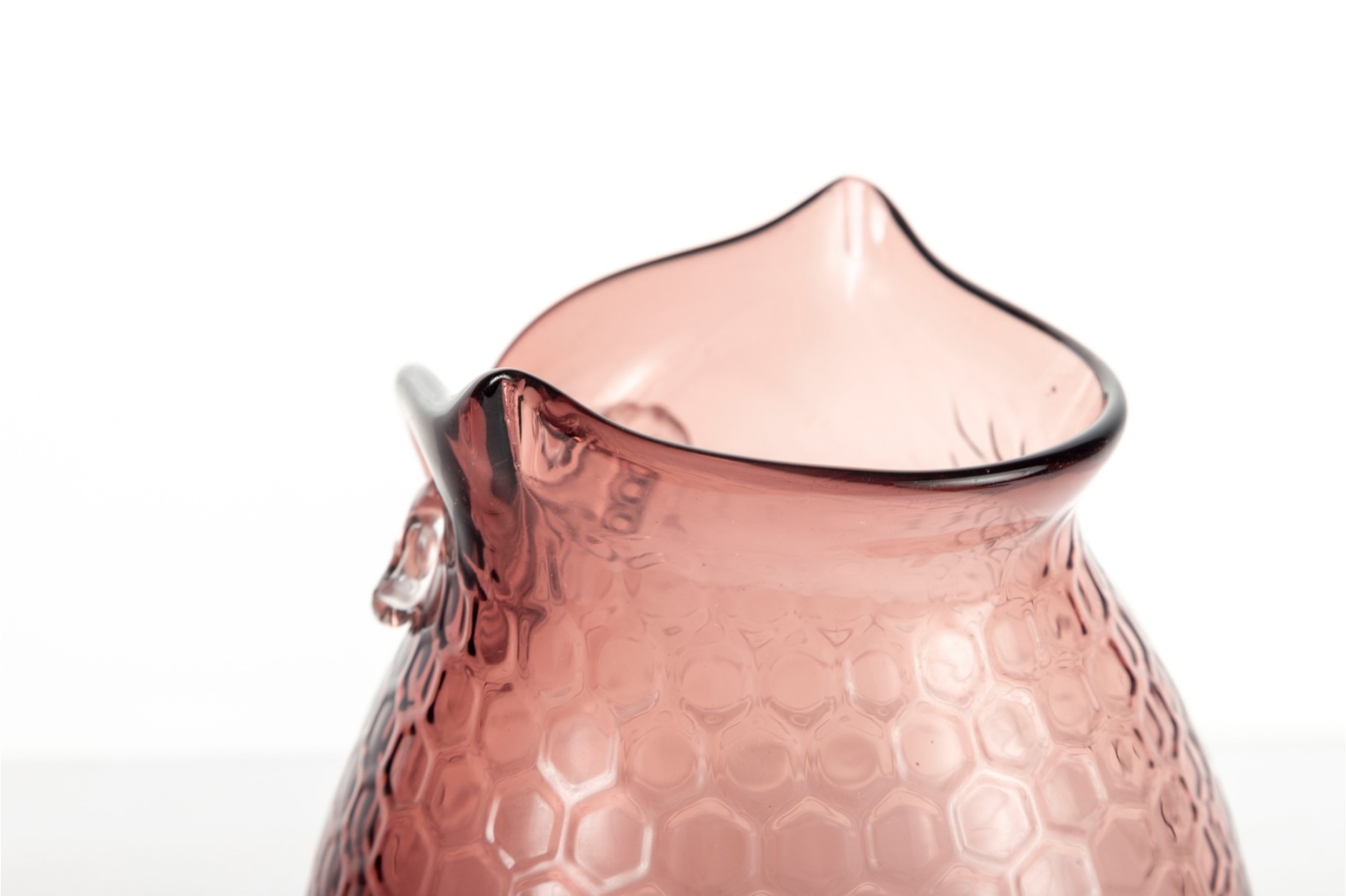 Vintage Amethyst Purple Art Glass Owl Honeycomb Vase