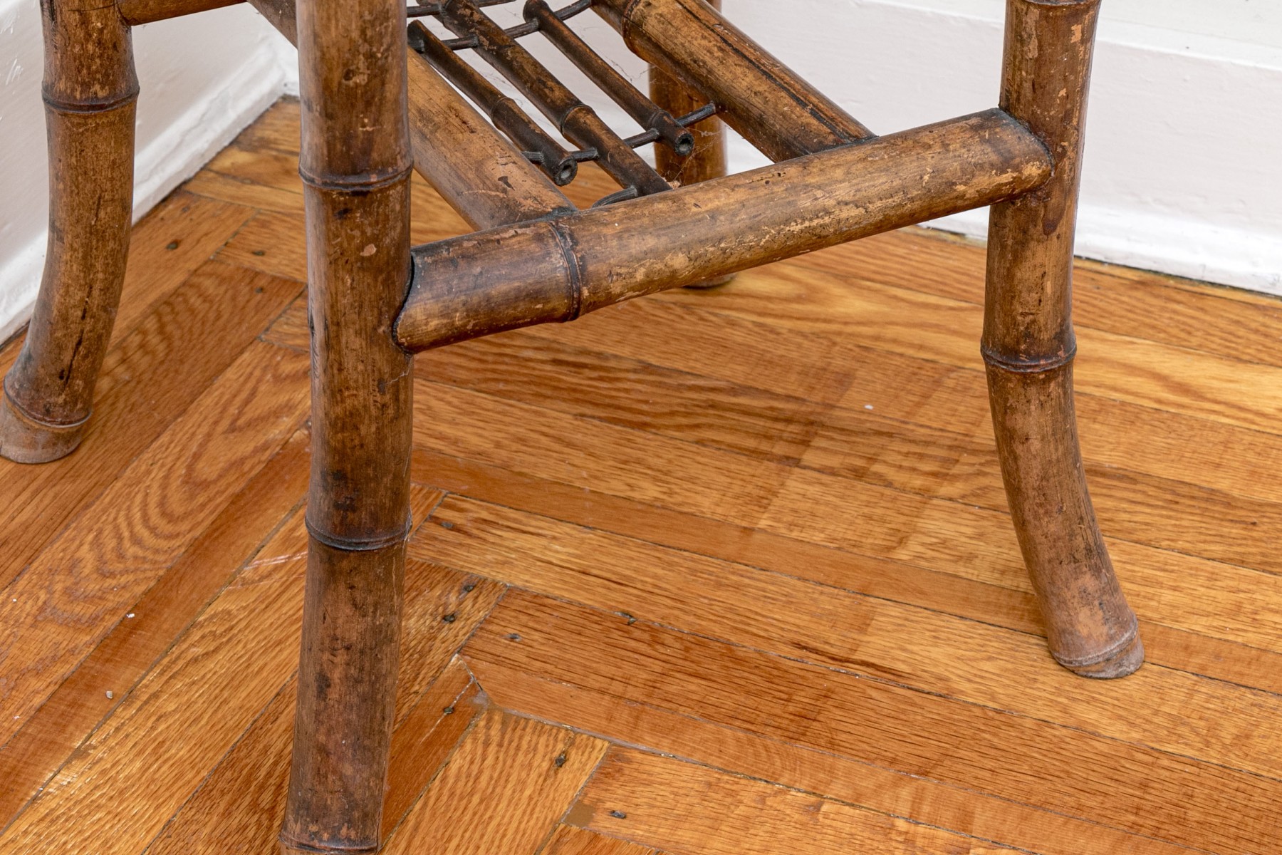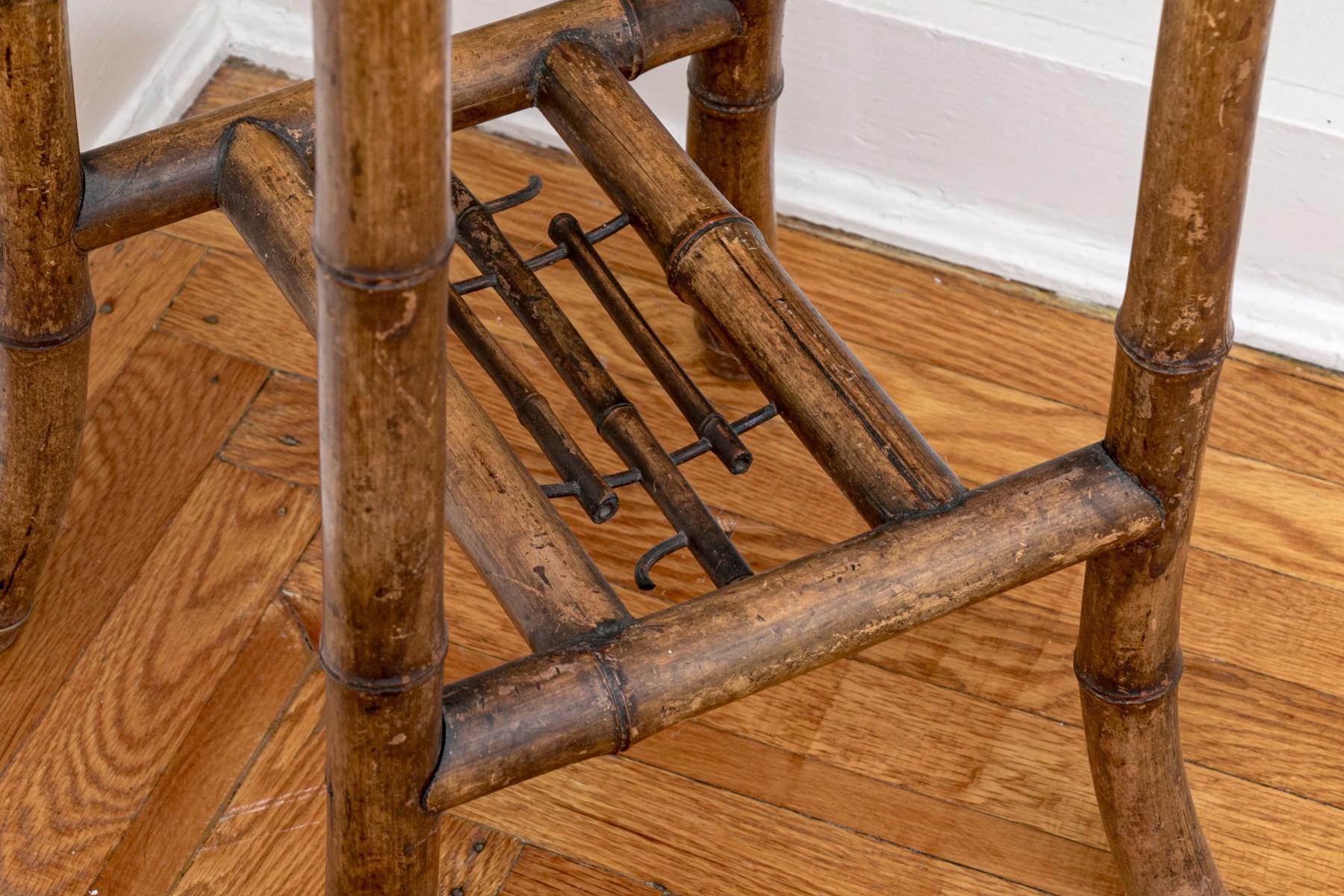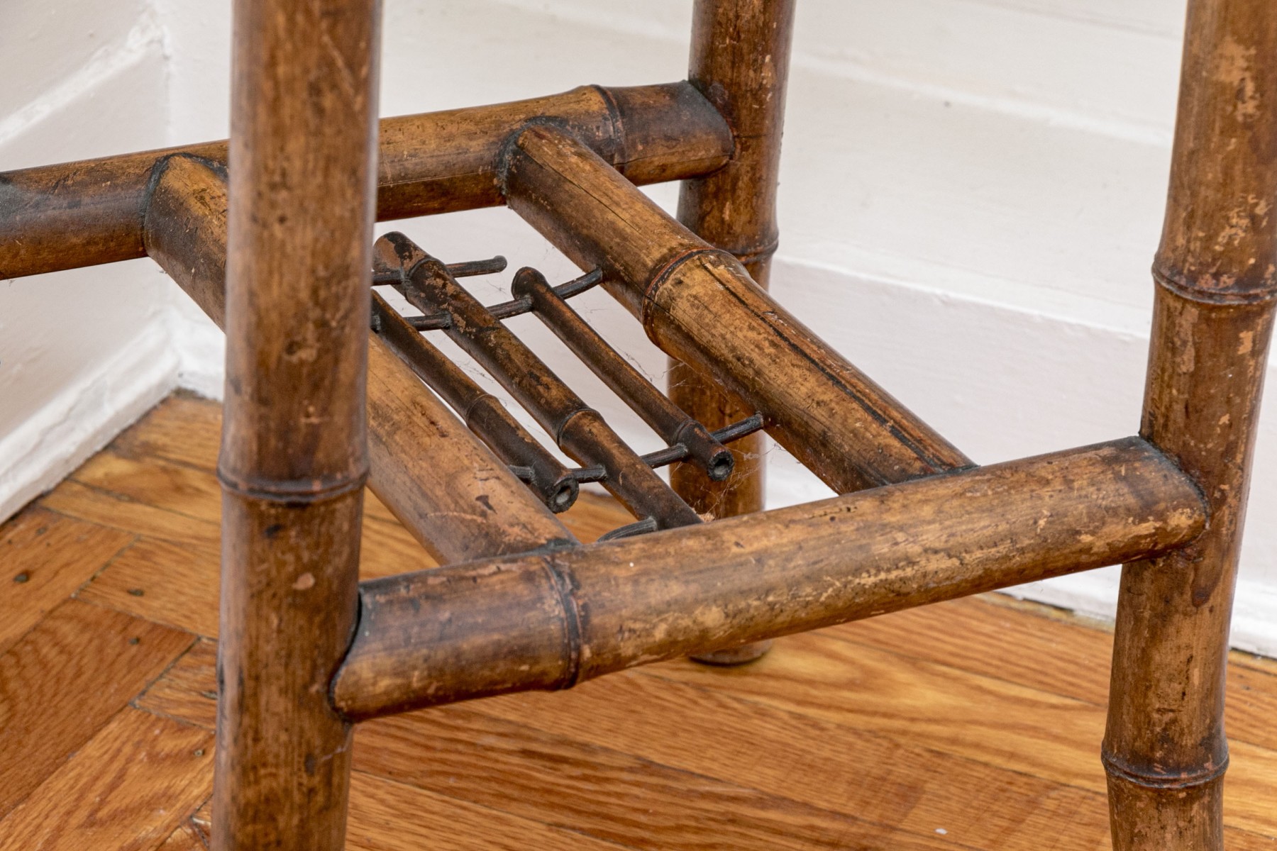 Condition: Age related discoloration and wear. Some mounts broken, but the table remains sturdy and visually appealing.