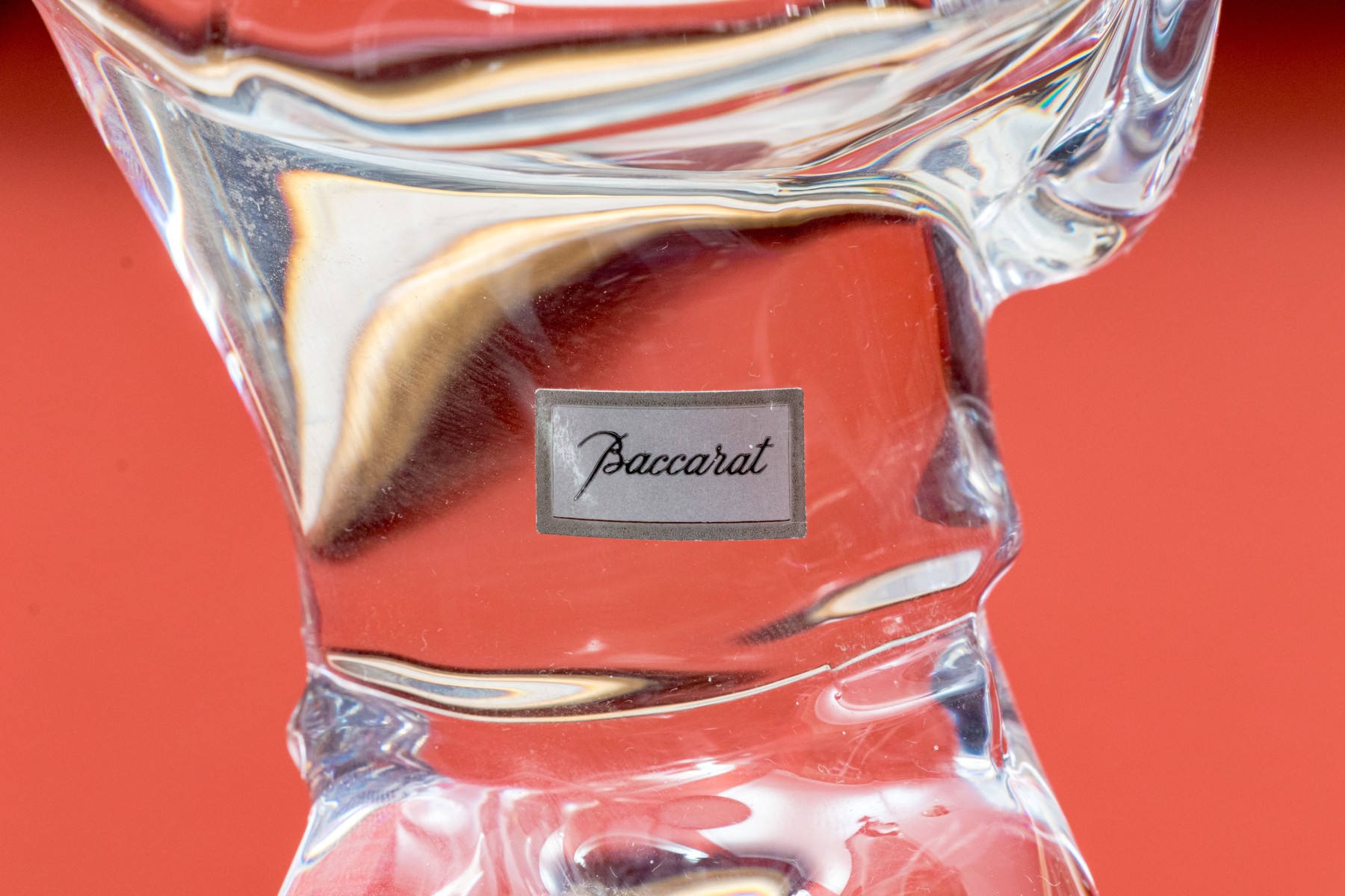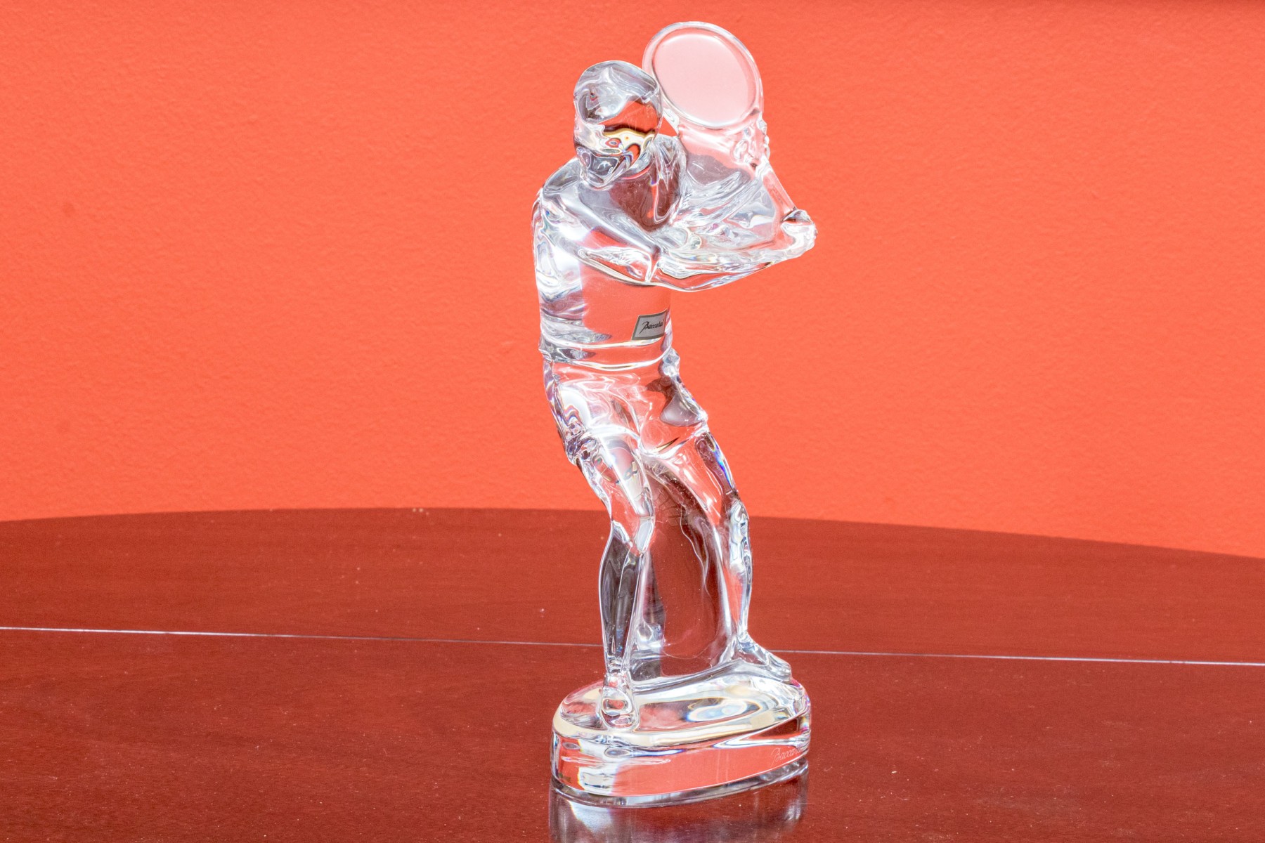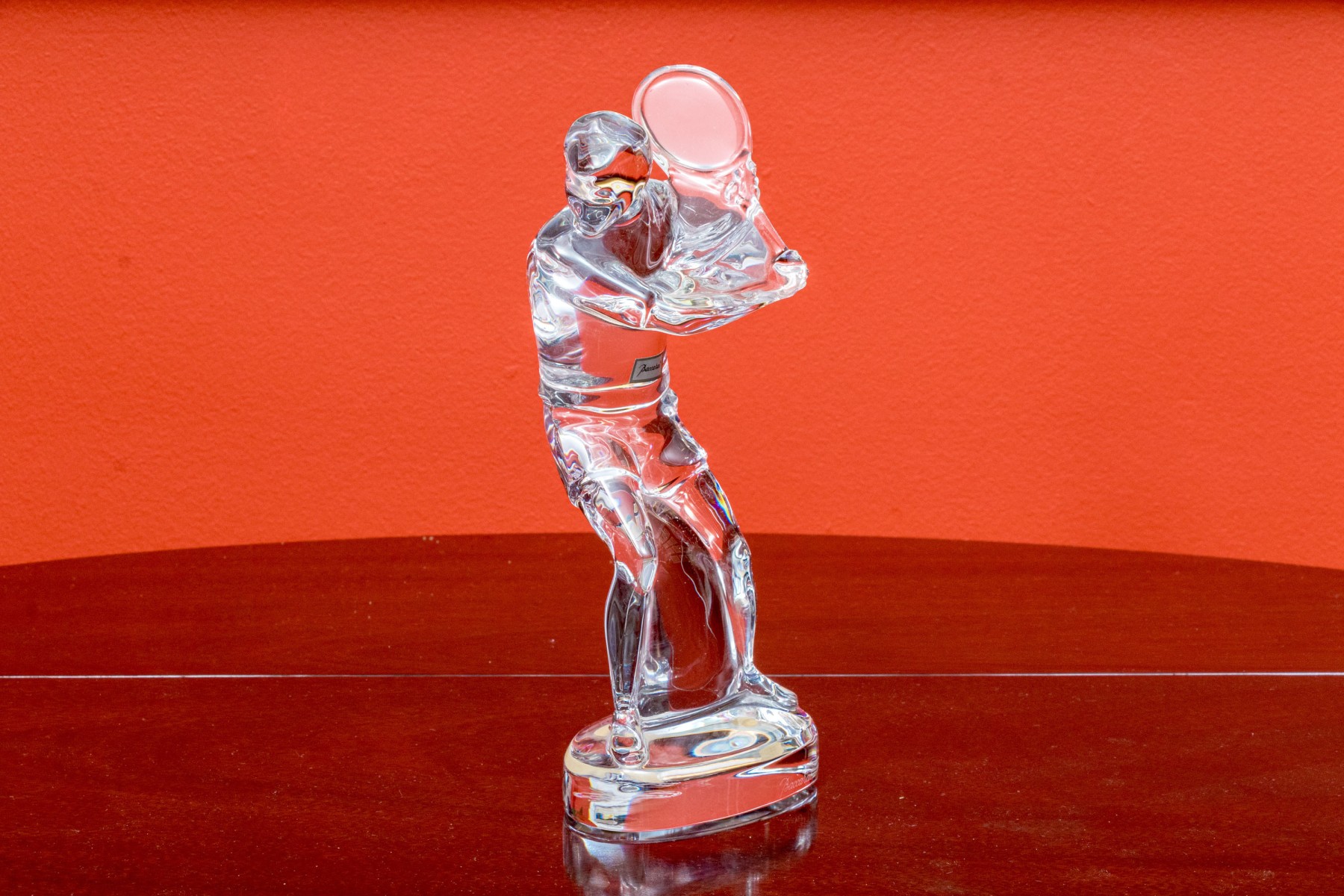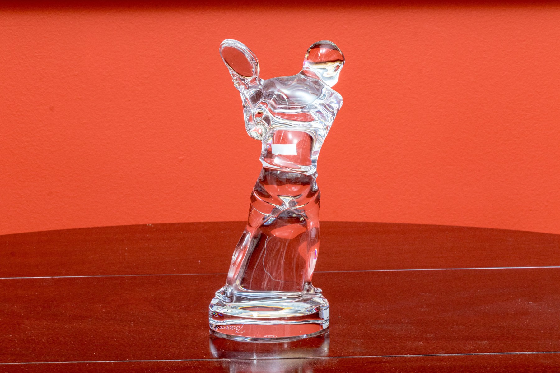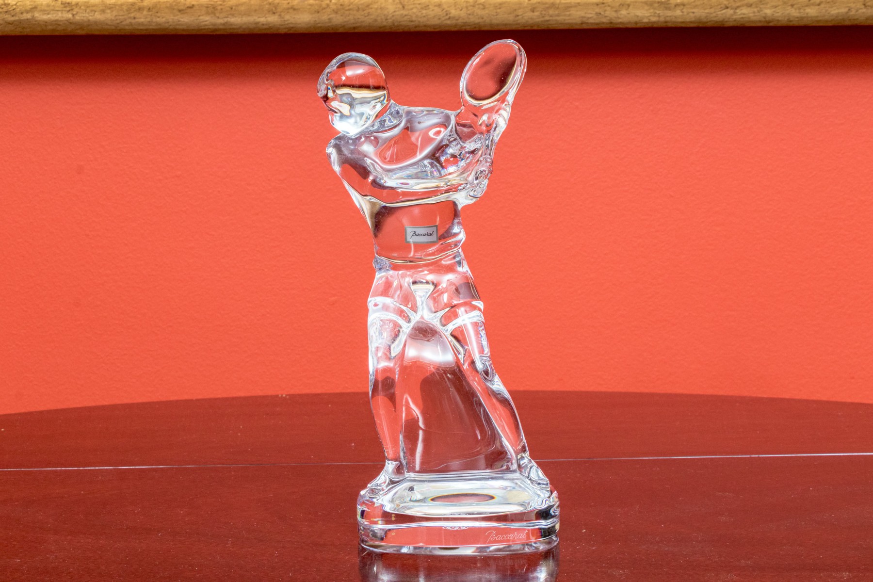 The Baccarat crystal figural sculpture with an etched Baccarat signature mark underfoot.