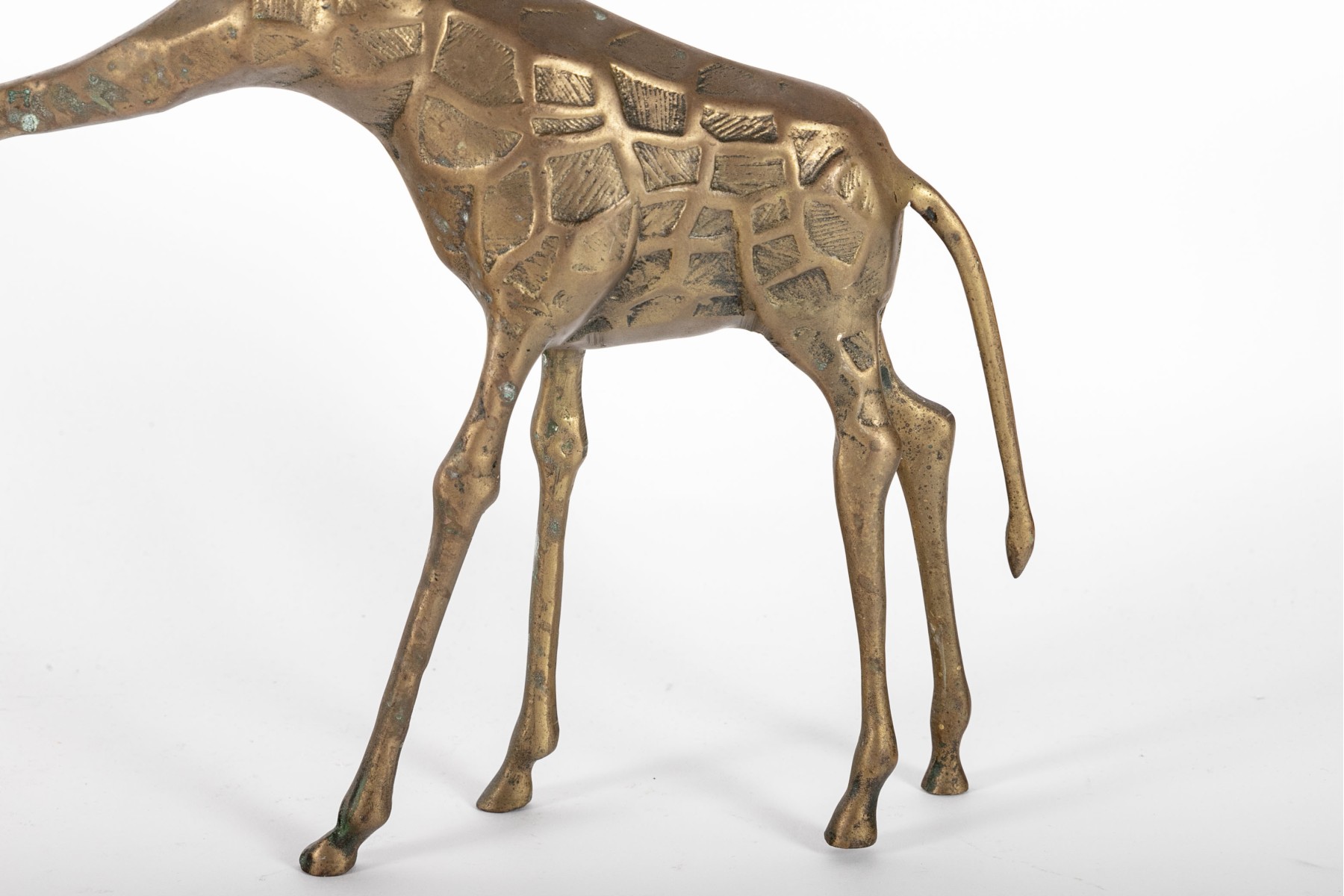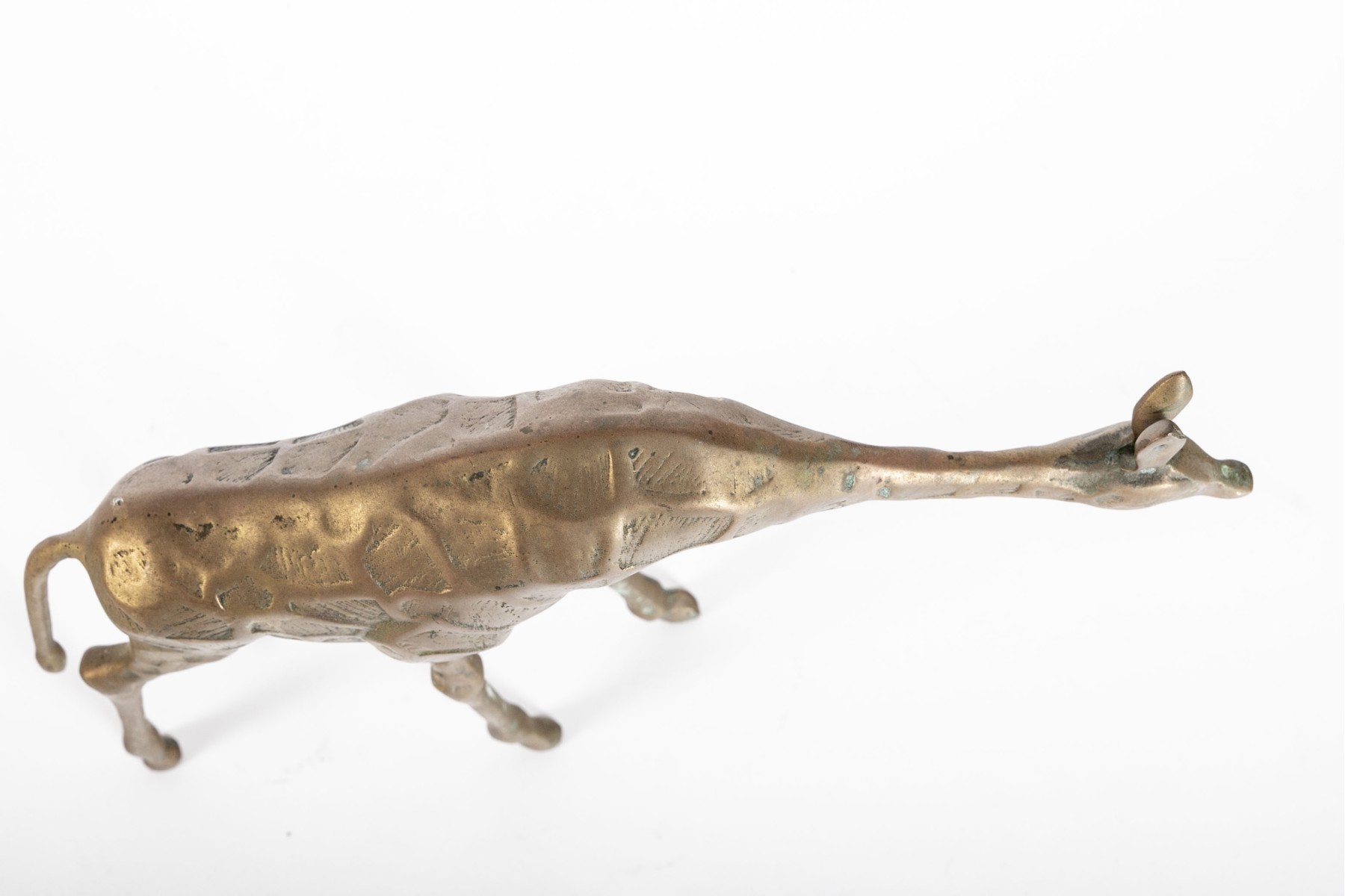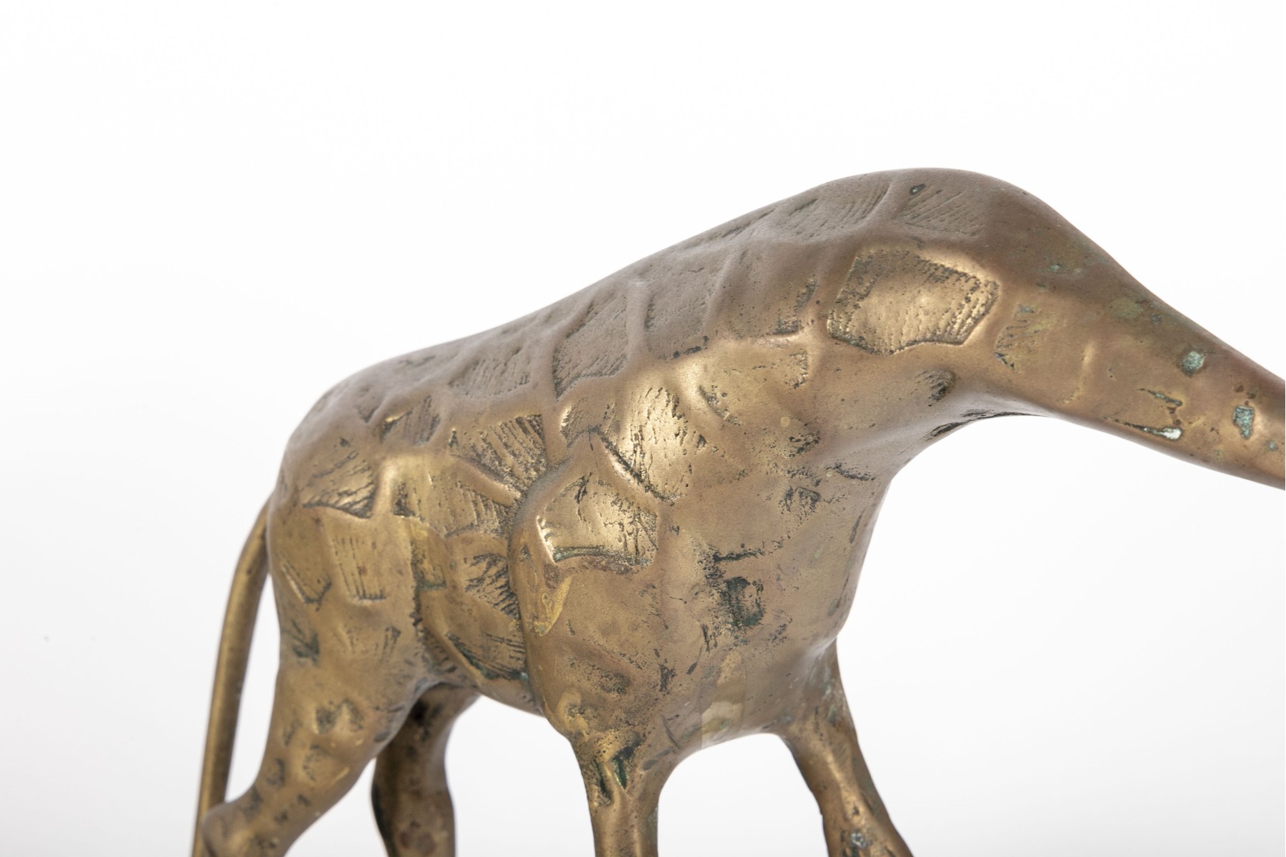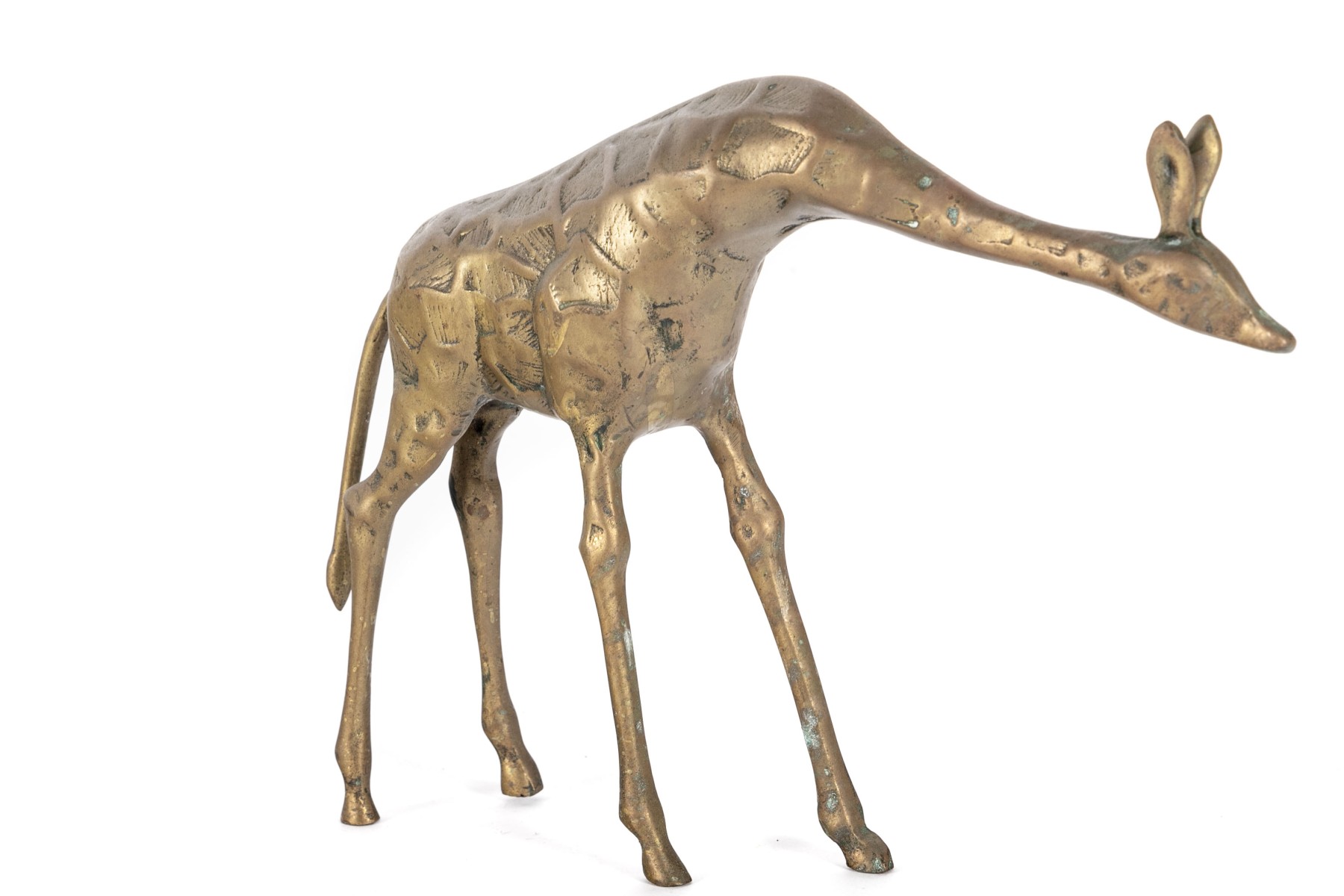 A wonderful vintage brass giraffe figurine posed standing with its long neck lowered.
