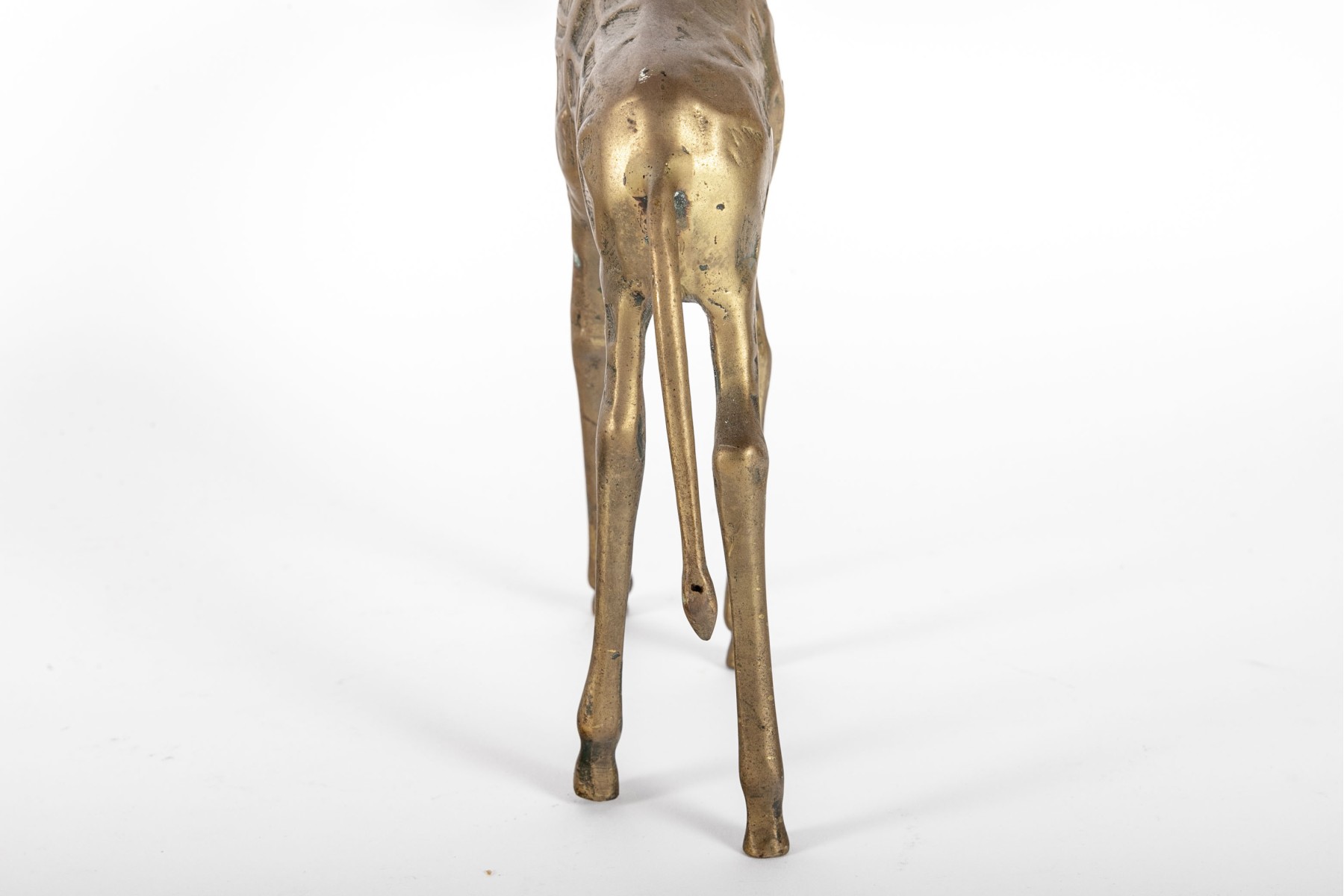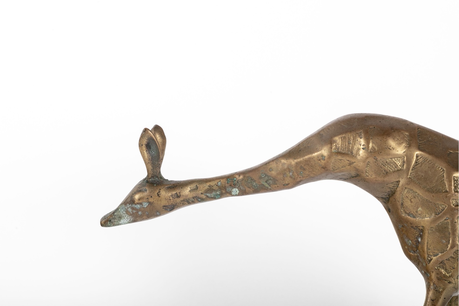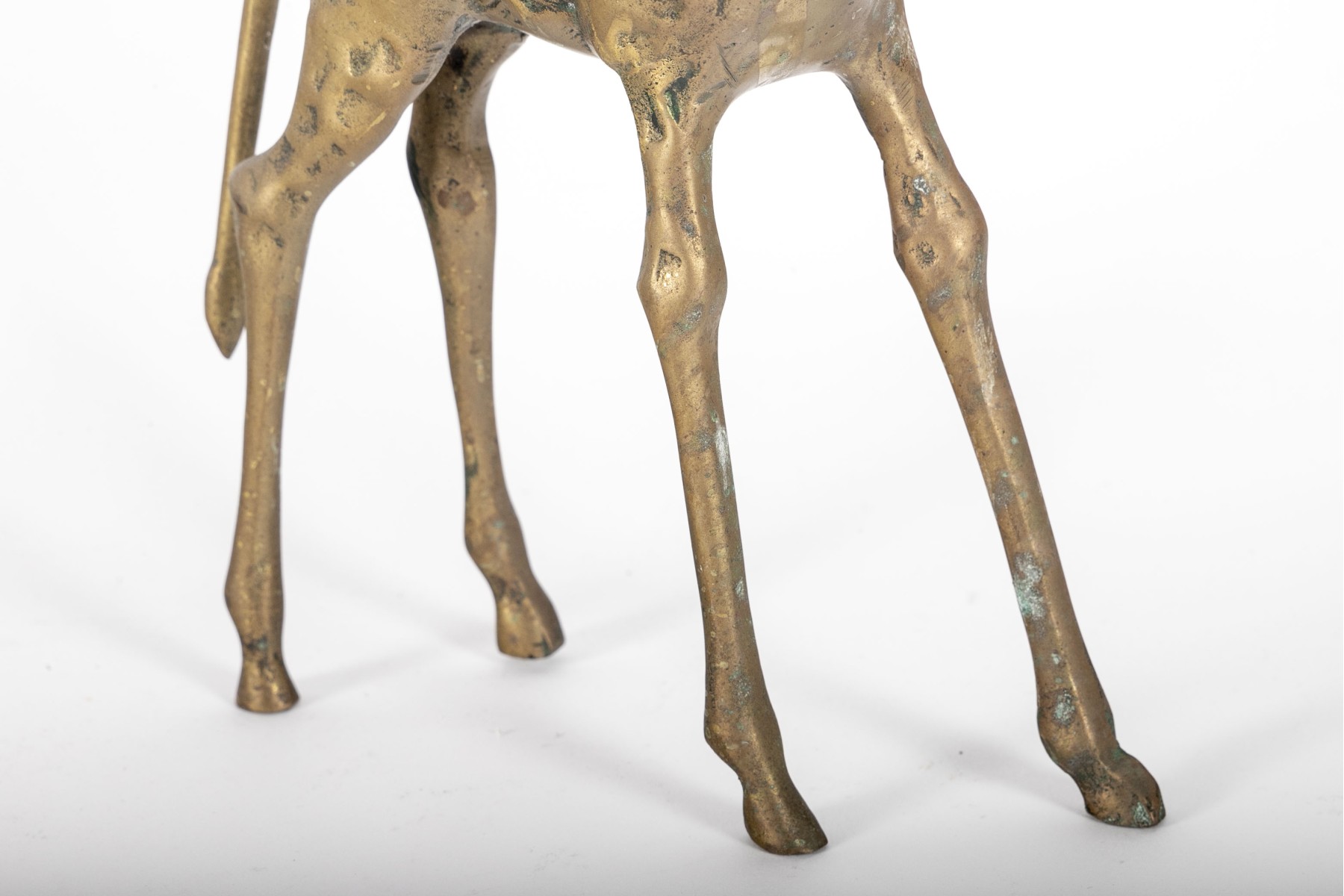 A wonderful vintage brass giraffe figurine posed standing with its long neck lowered.