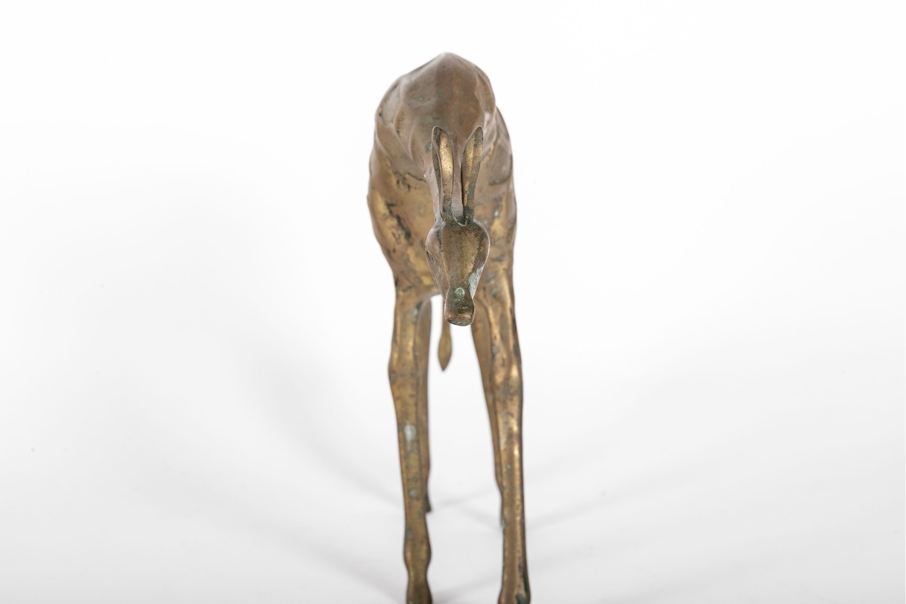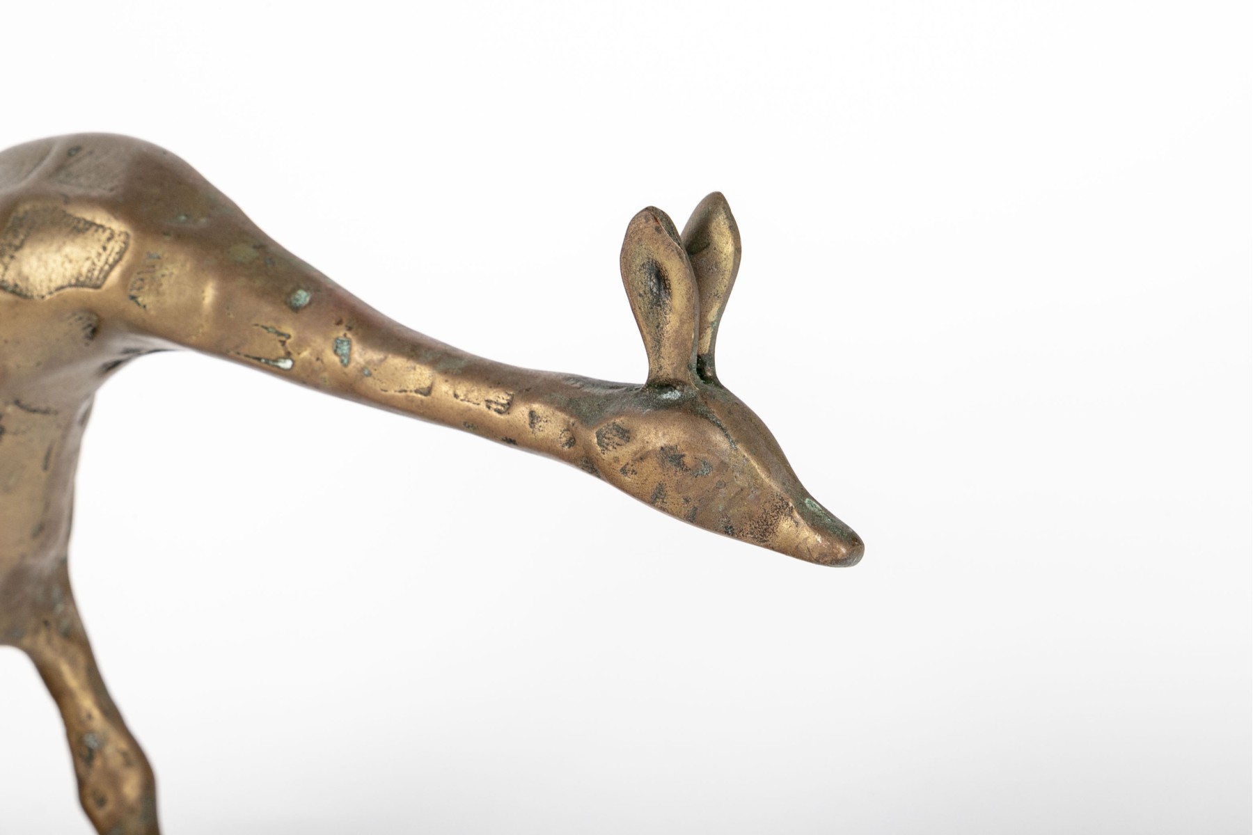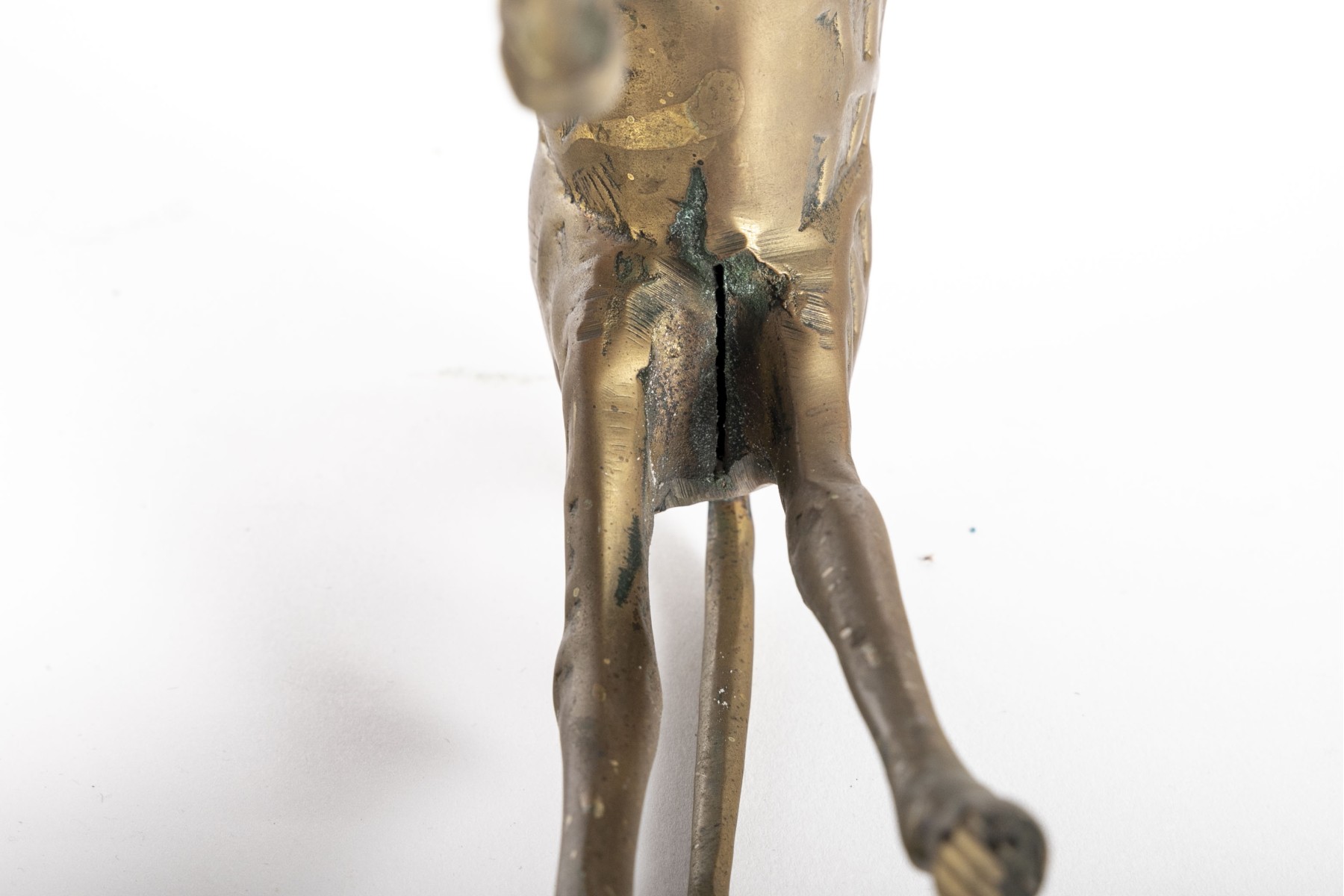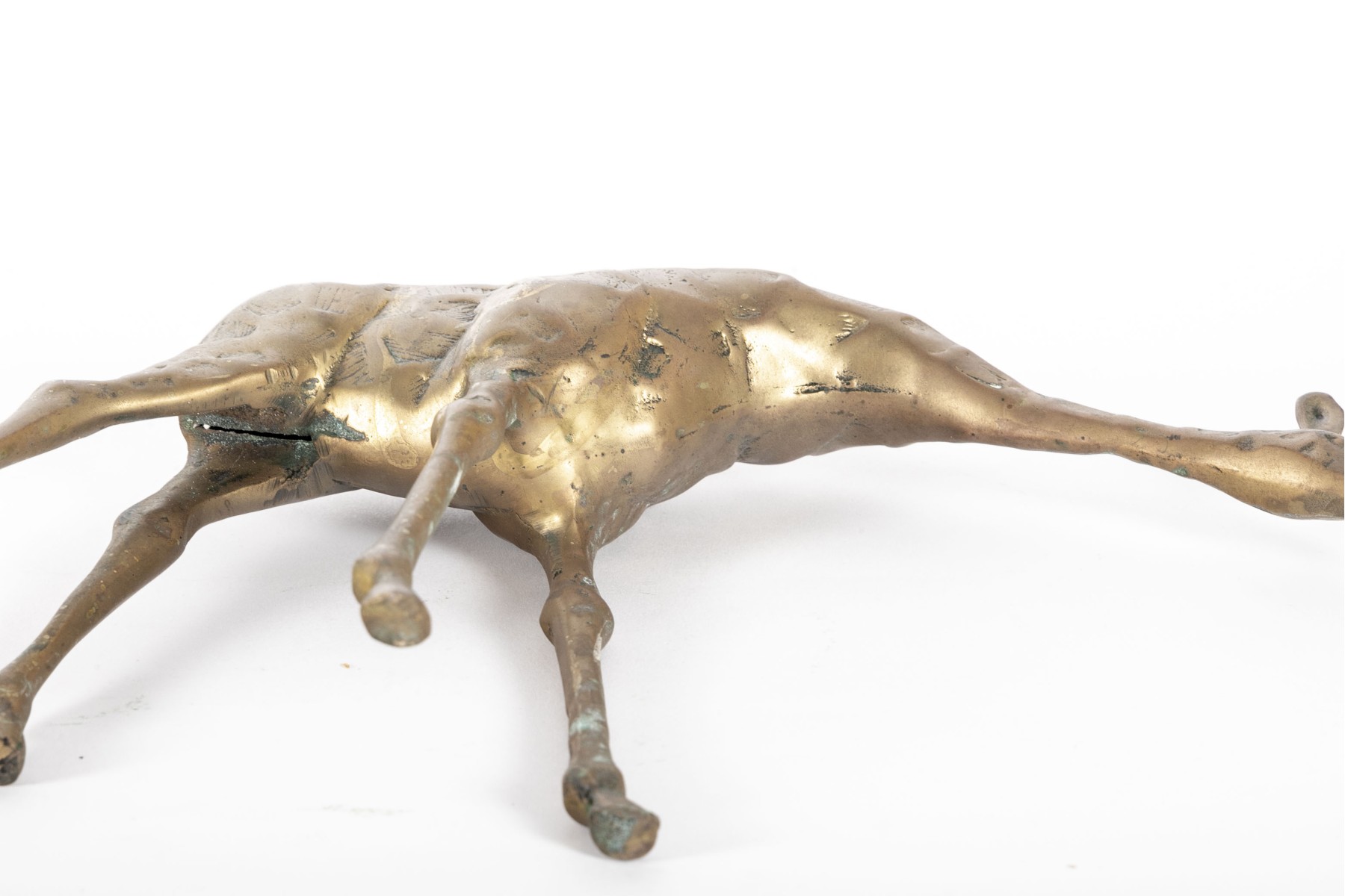 A wonderful vintage brass giraffe figurine posed standing with its long neck lowered.