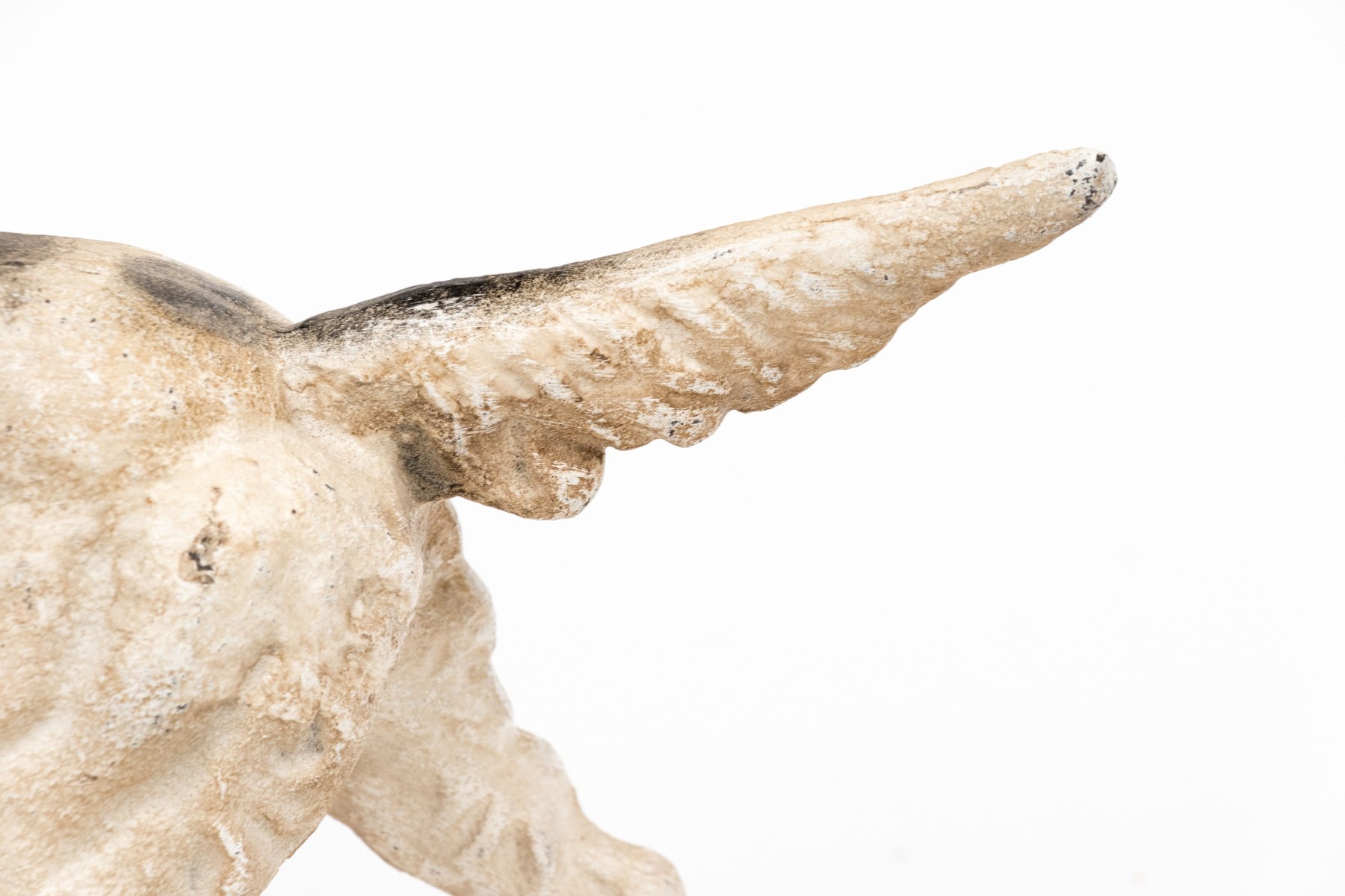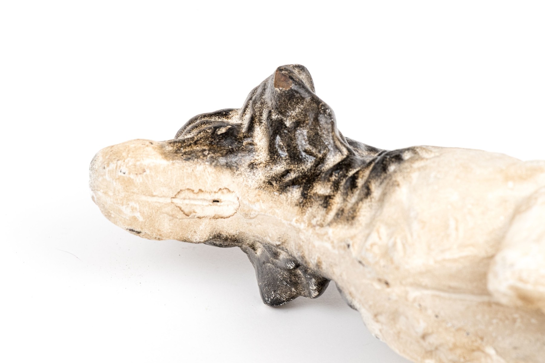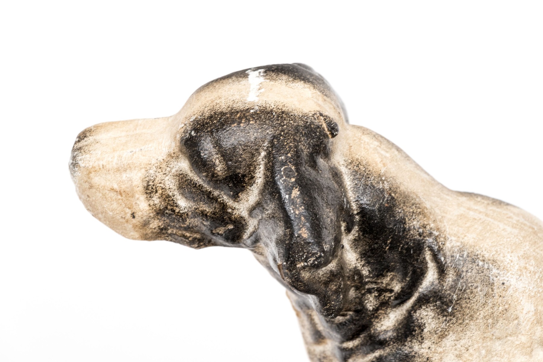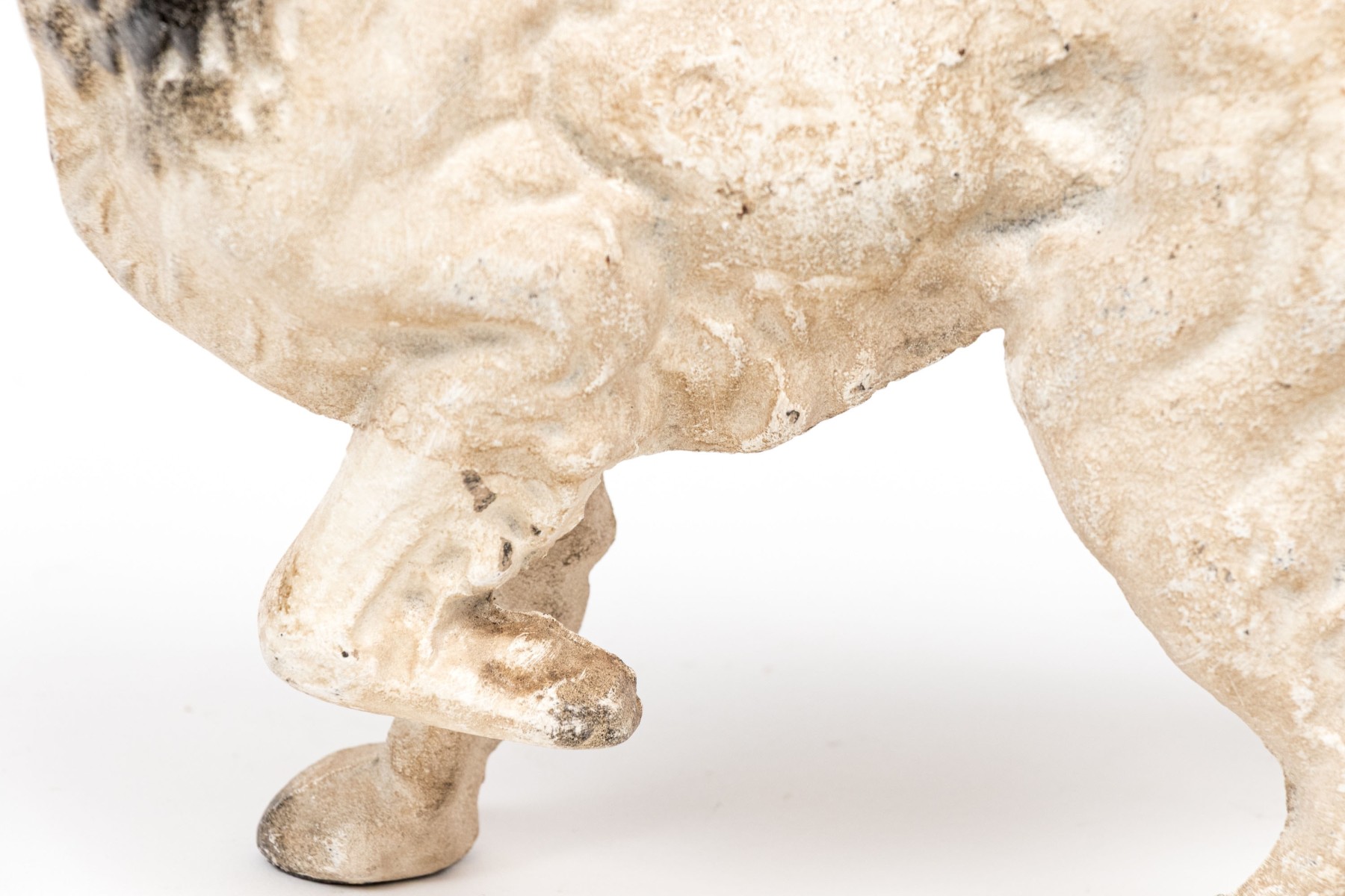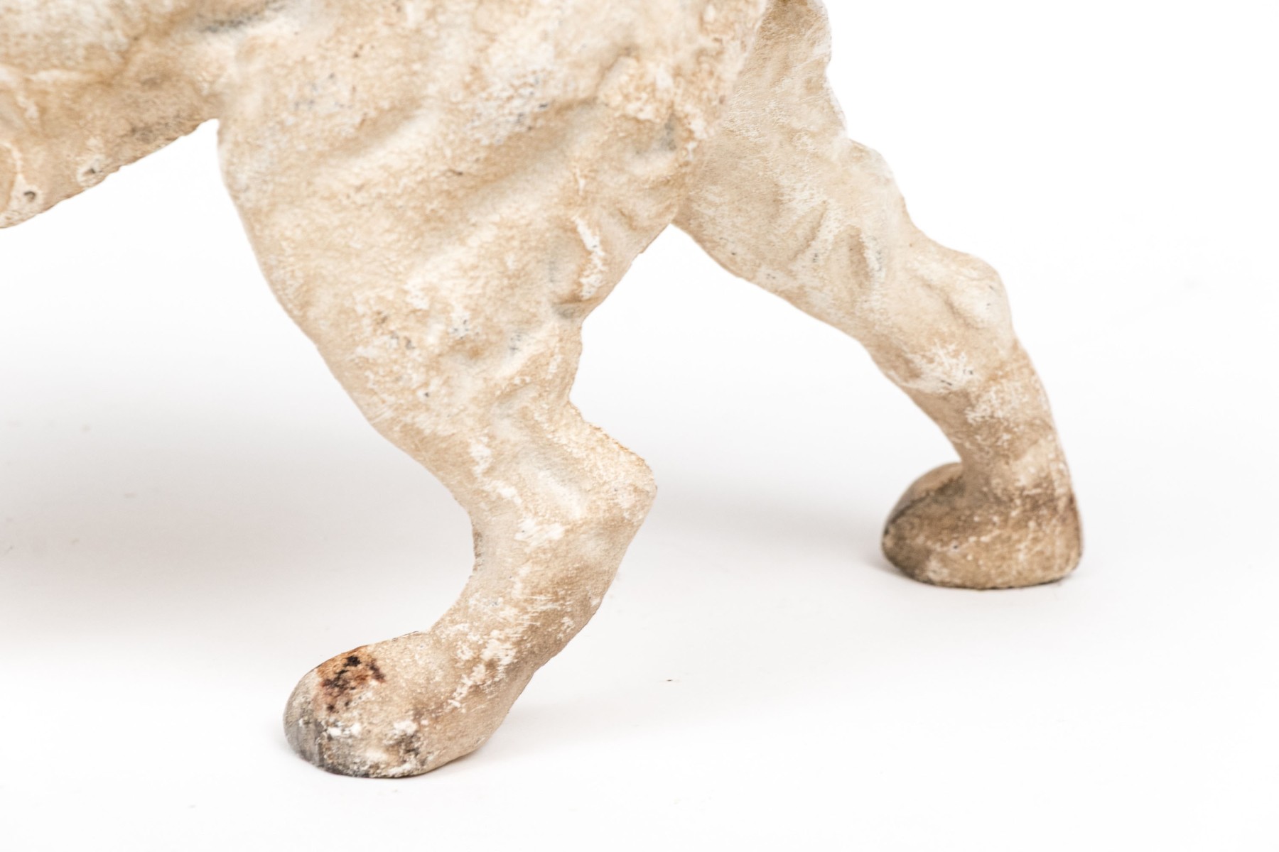 There is a seam where the two pieces of iron come together. Some painted white finish to the ear and top of head. Despite wear the dog presents well.