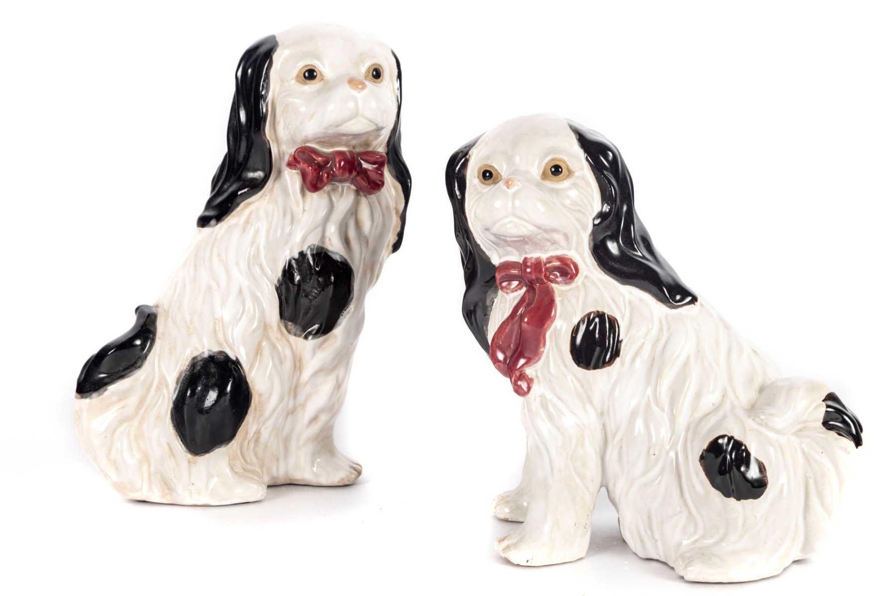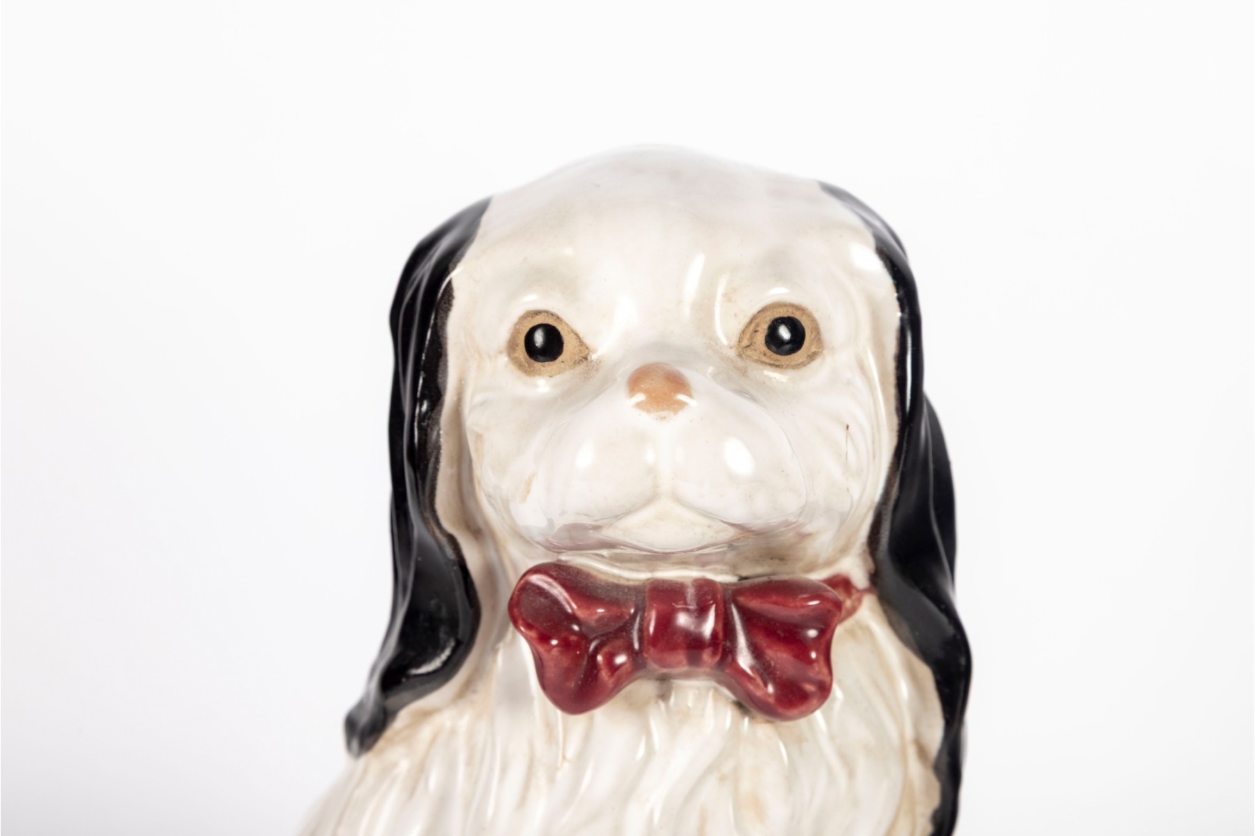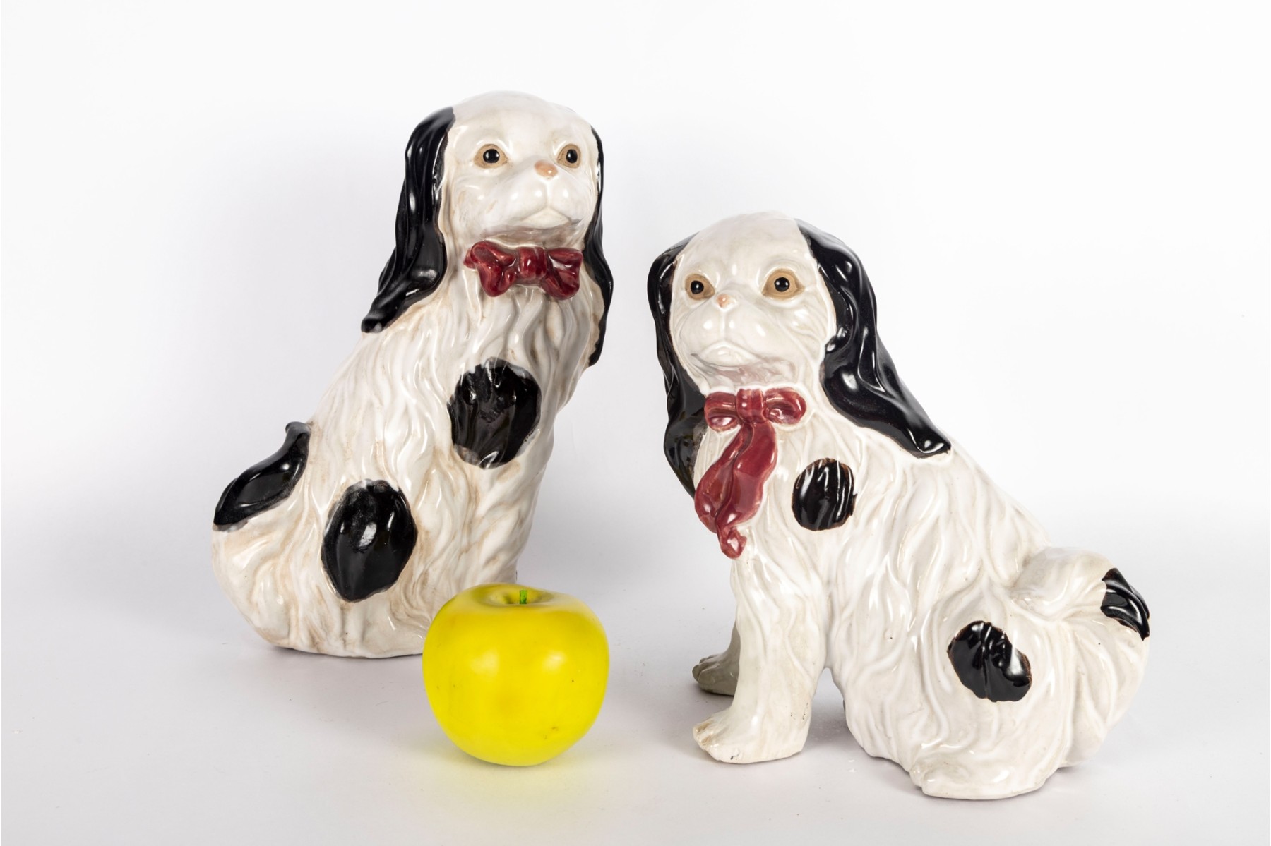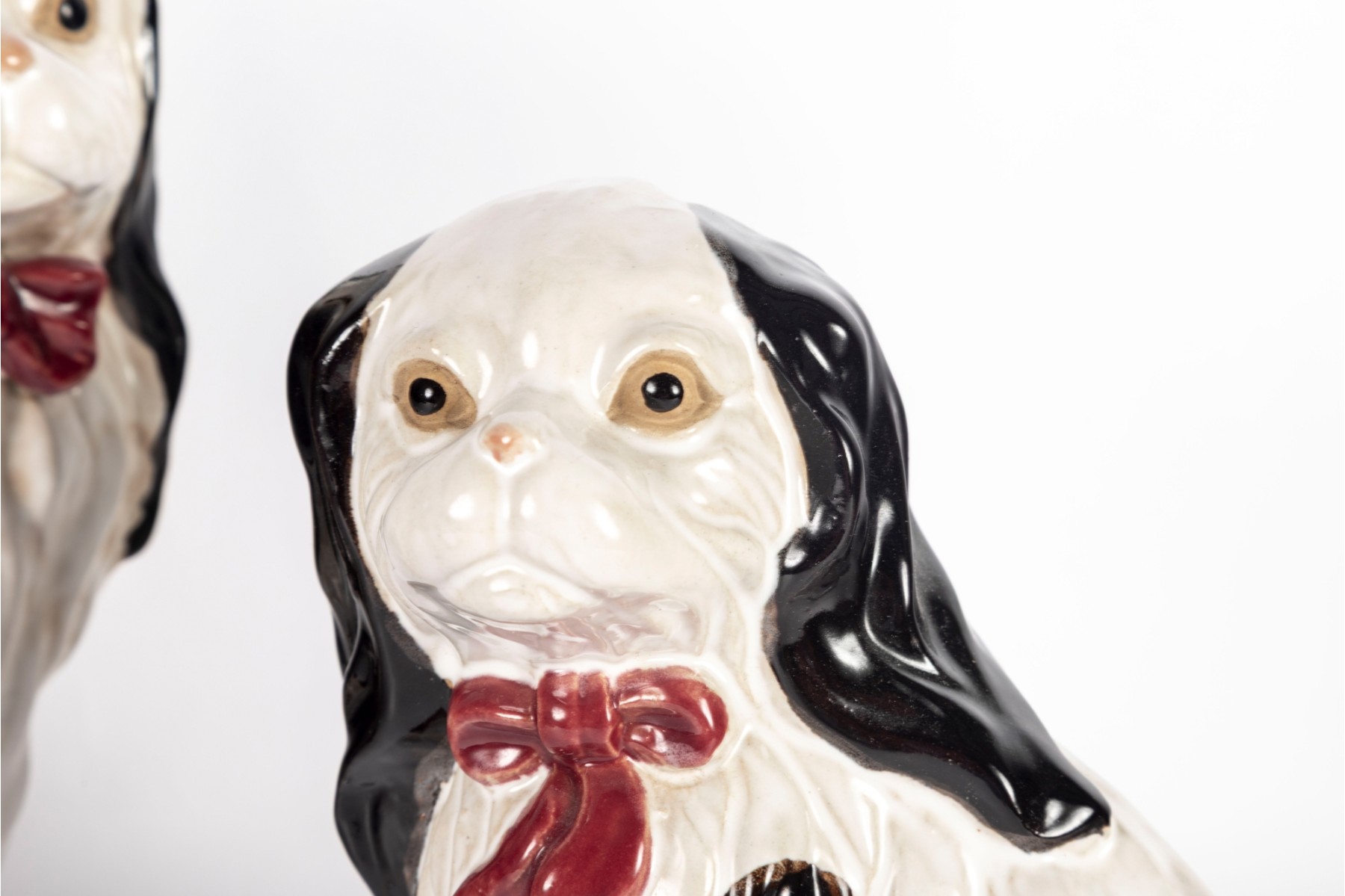 A pairing of charming, hand-painted vintage cocker spaniel dogs crafted from glazed ceramic. Two sizes.