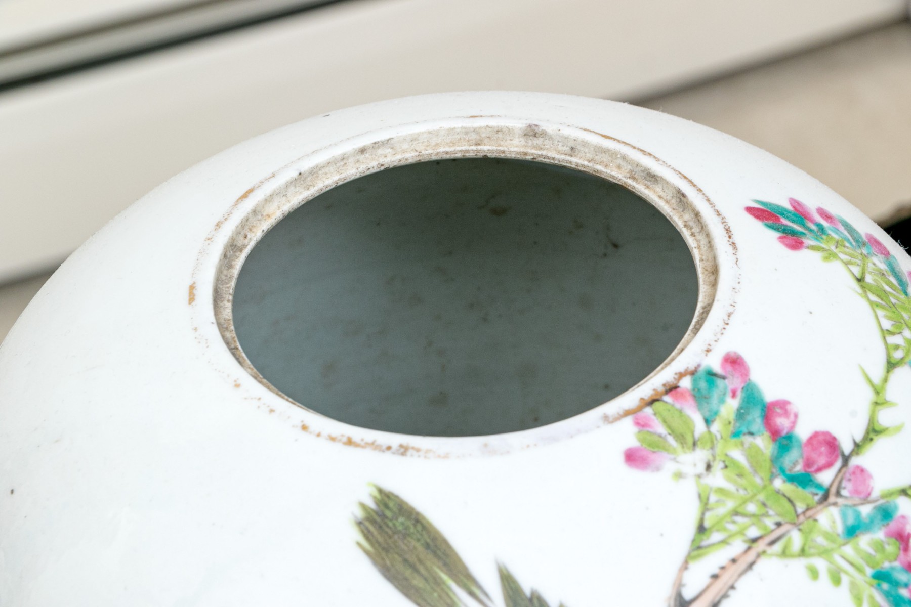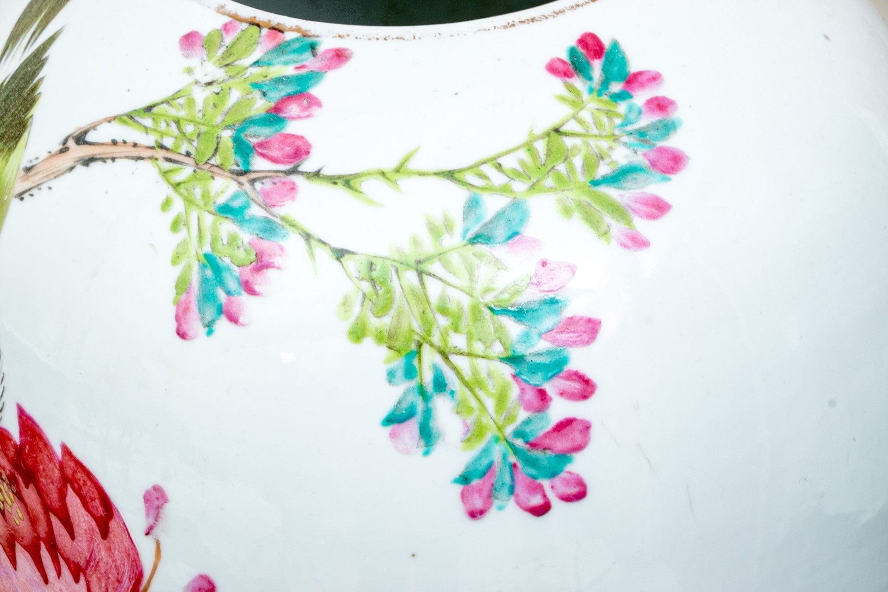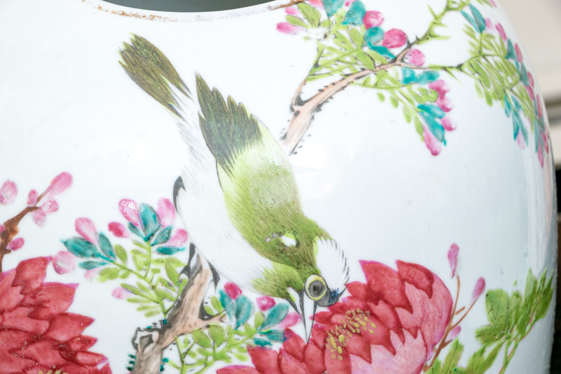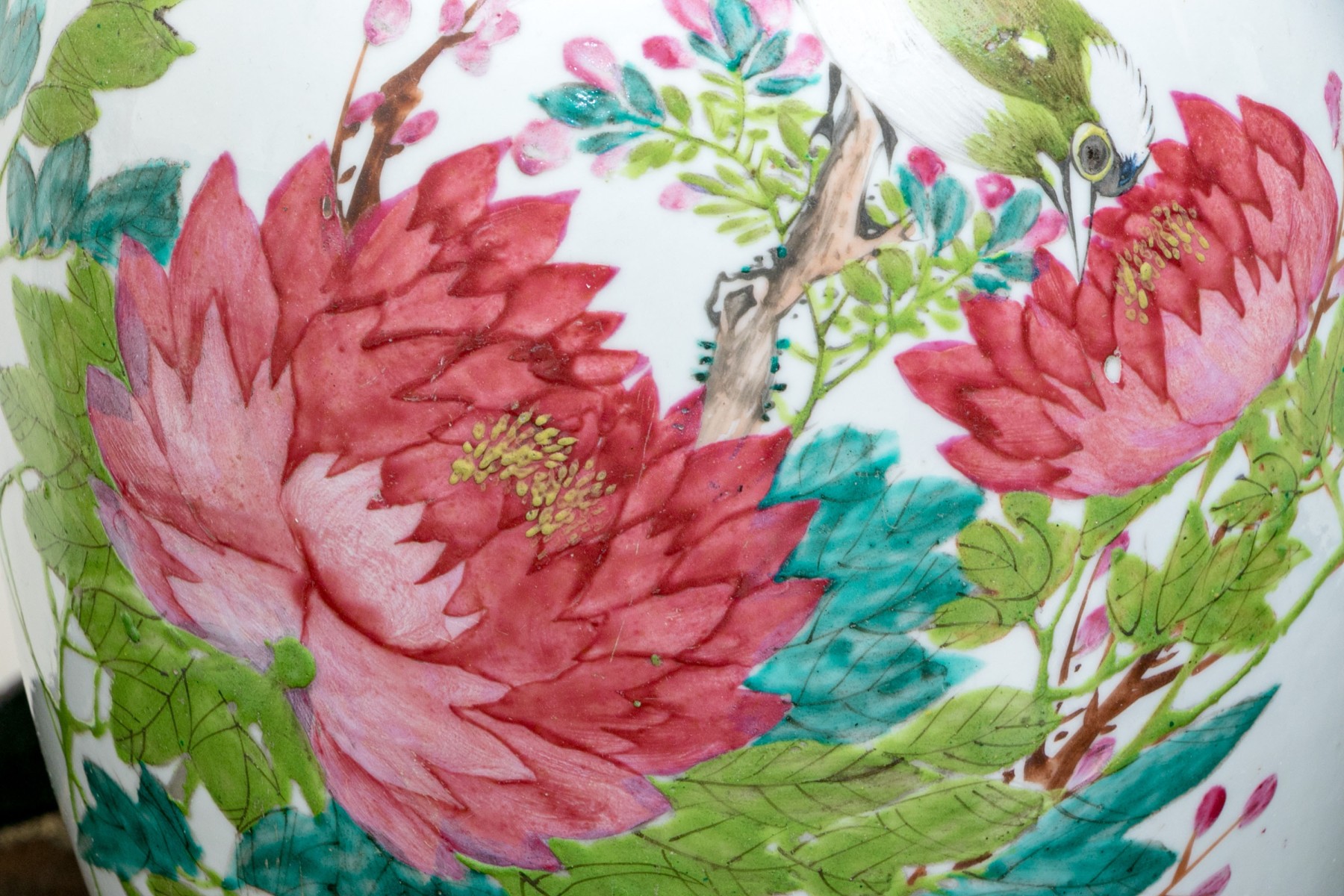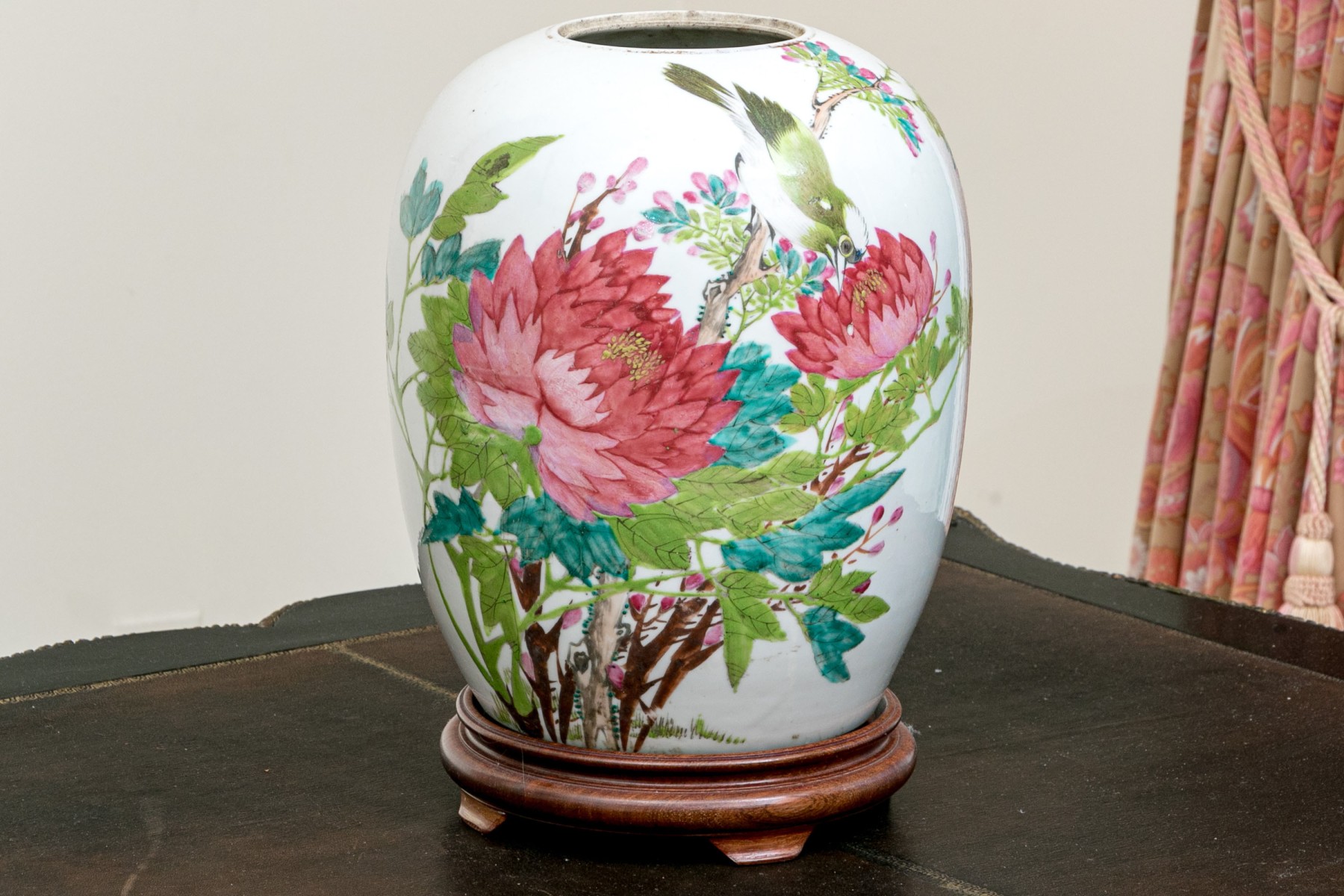 A Chinese famille rose porcelain ginger jar form ovoid form vase, with out a lid.