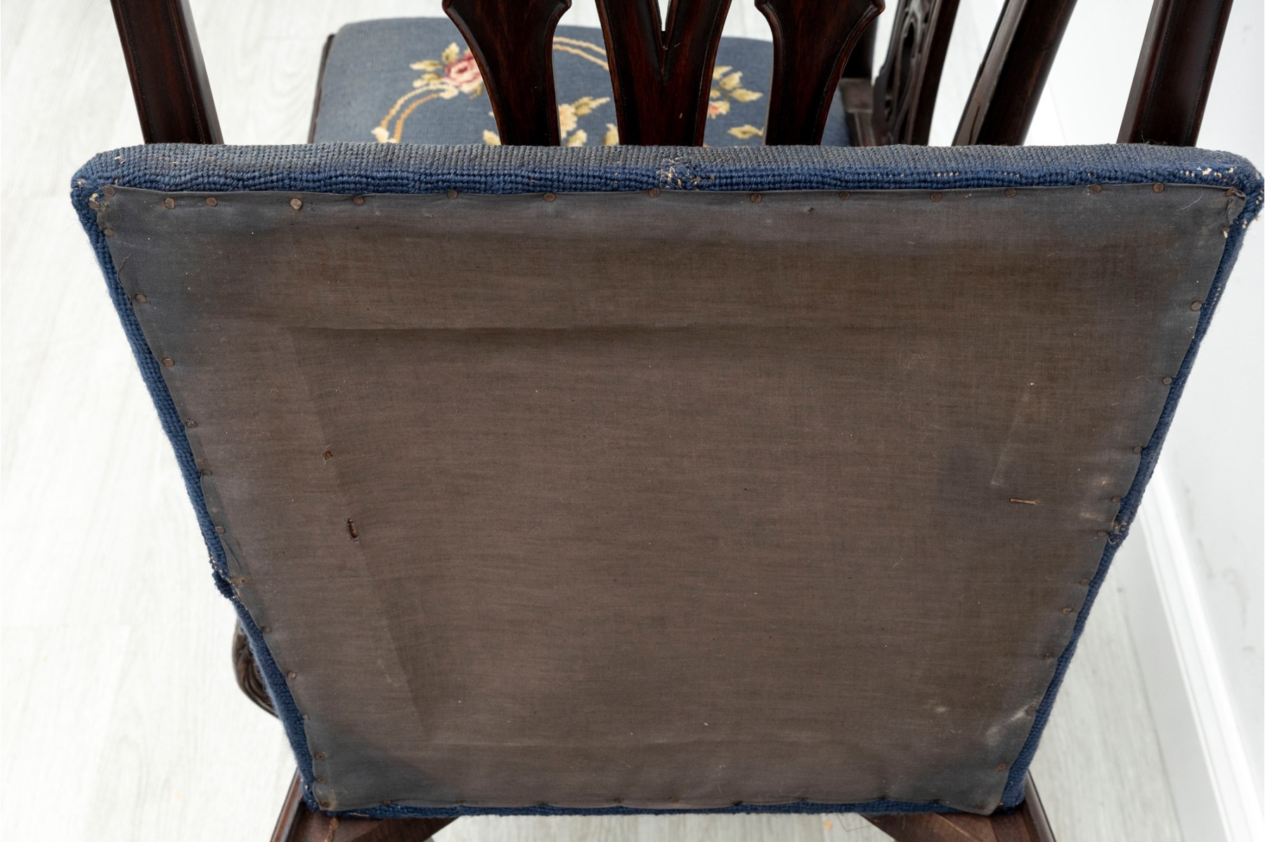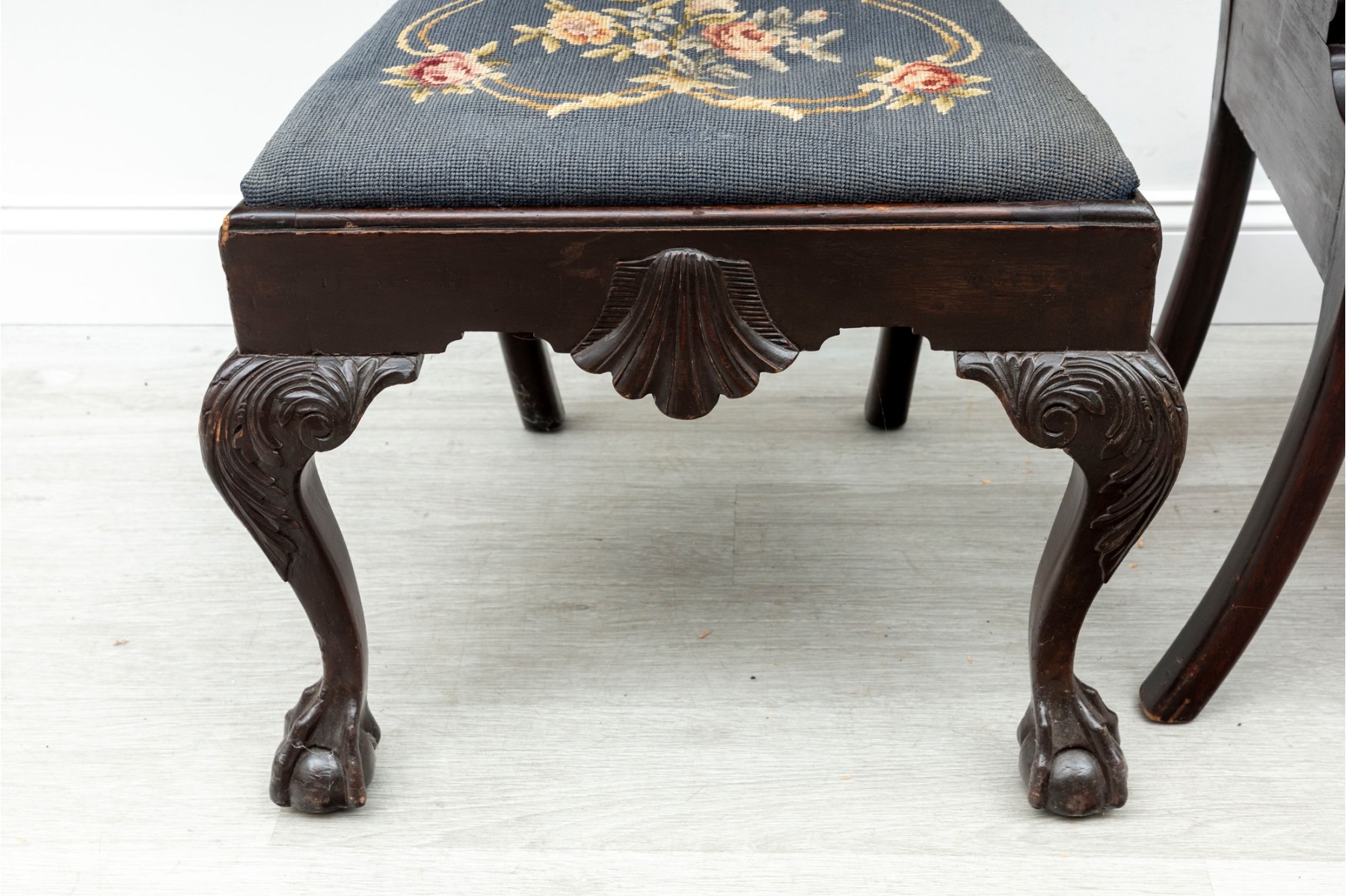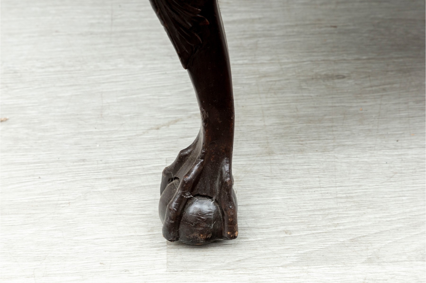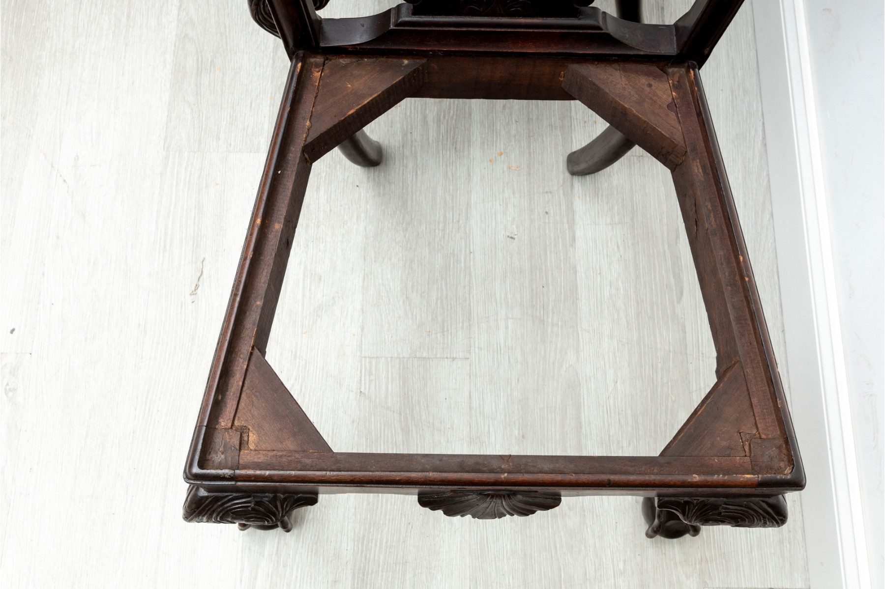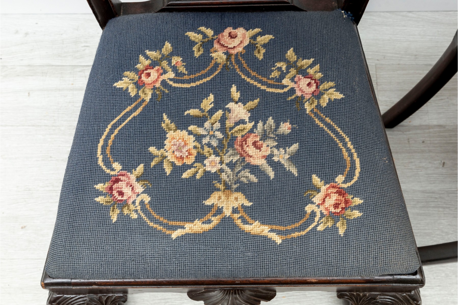 This pair of vintage solid wood Chippendale chairs showcases exquisite craftsmanship and classic design. Each chair is elegantly carved with traditional Chippendale details, featuring graceful curves and intricate back splats. The legs terminate in iconic ball and claw feet, adding a touch of bold sophistication.