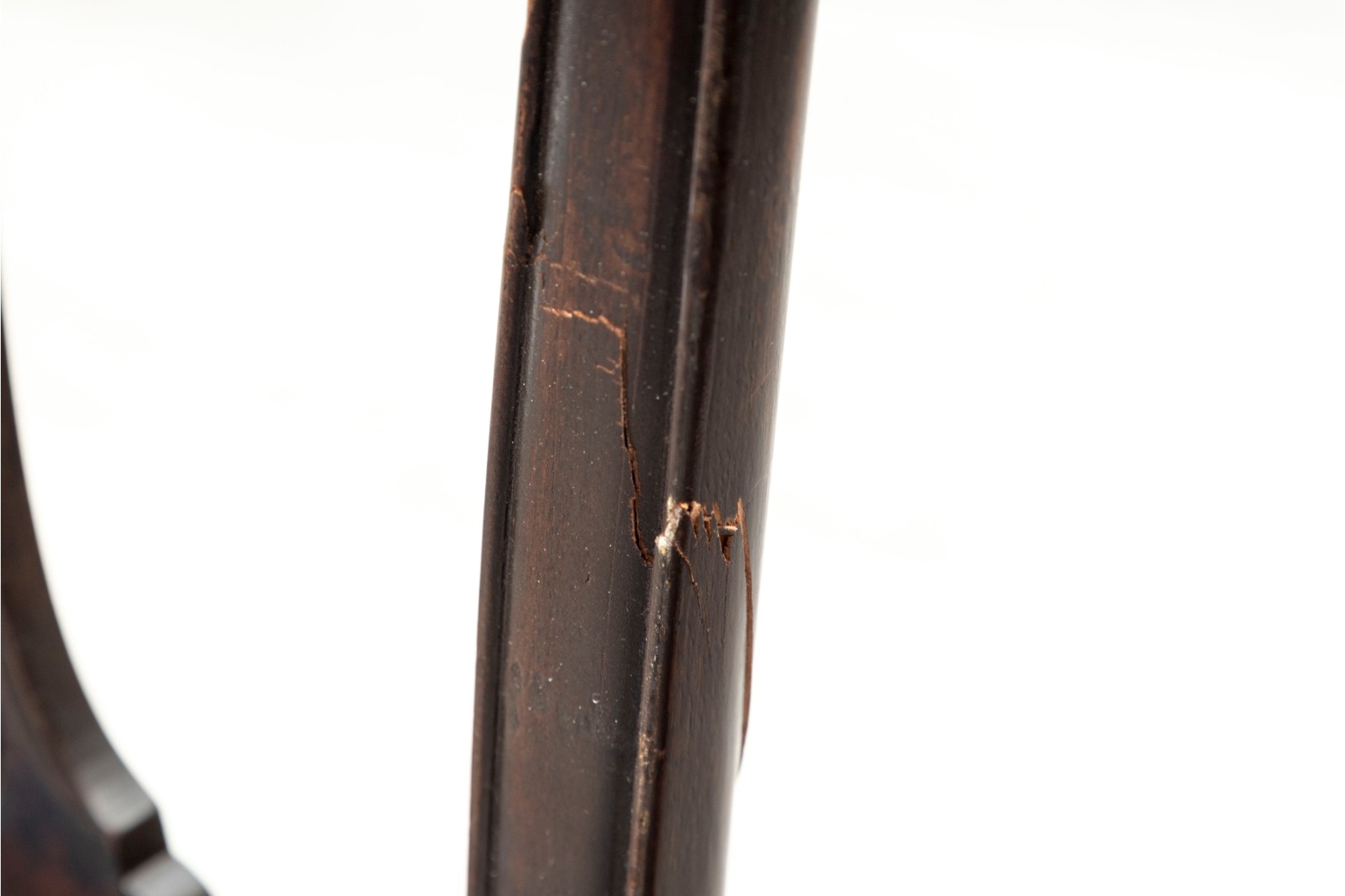 Consistent with age. Losses to wood and scratches to surfaces. One chair right-side back pillar is split.