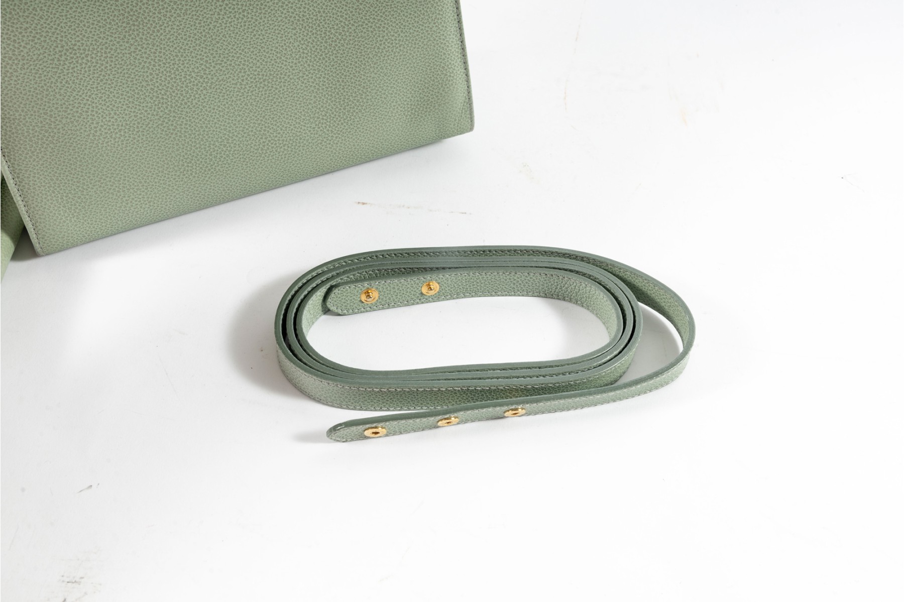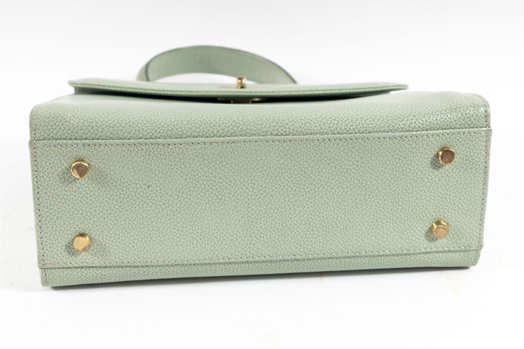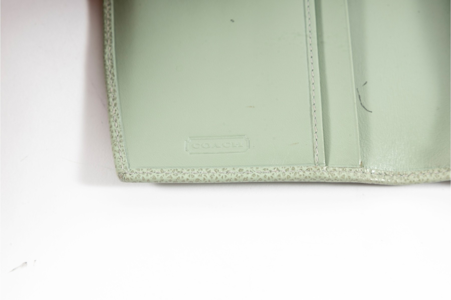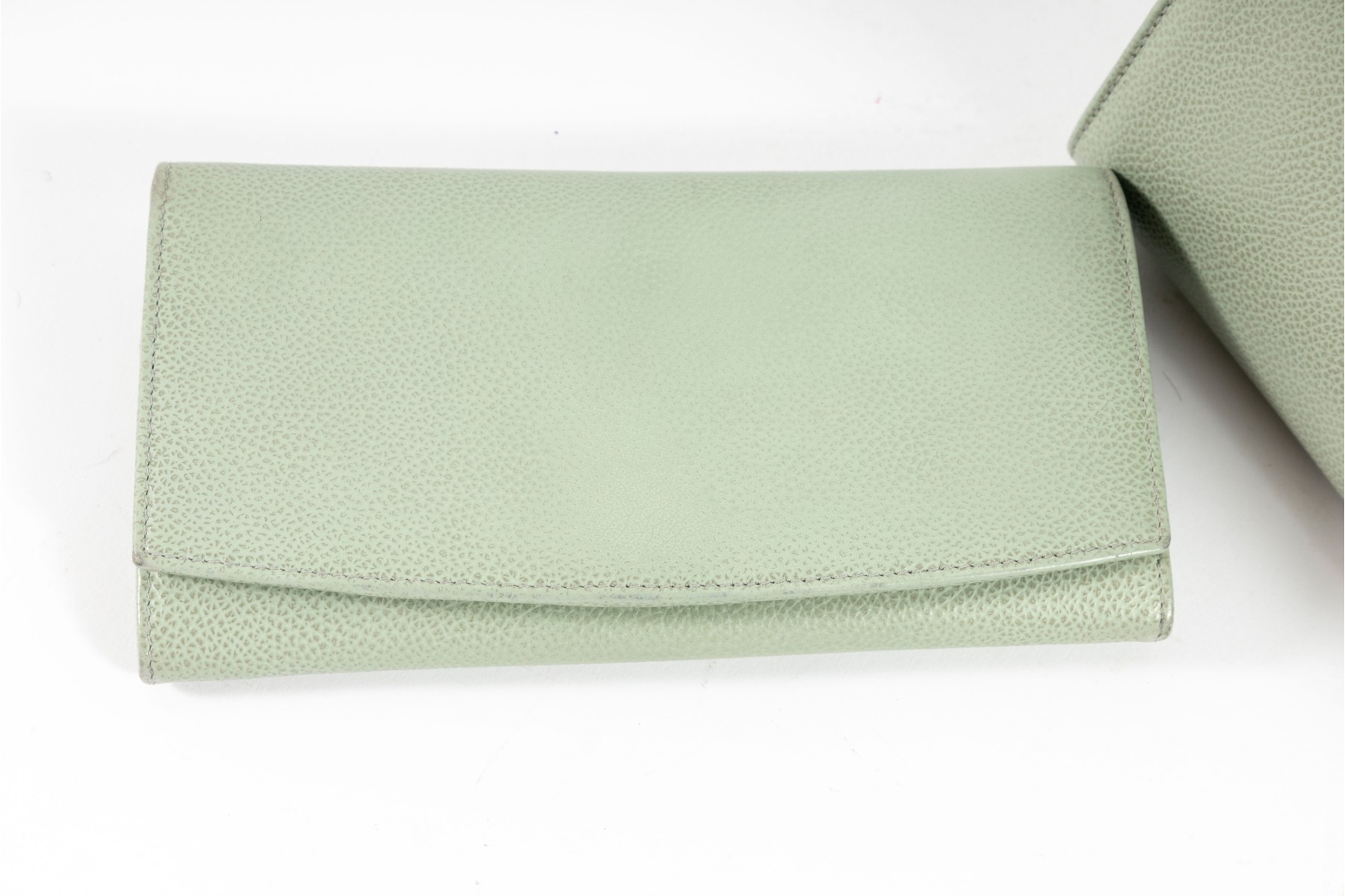 This vintage Coach Madison Biltmore bag & wallet combo sports the rare celadon coloration over genuine caviar leather with spacious interior compartments for everyday travel and events. Made in Italy. Includes original adjustable bag shoulder strap.