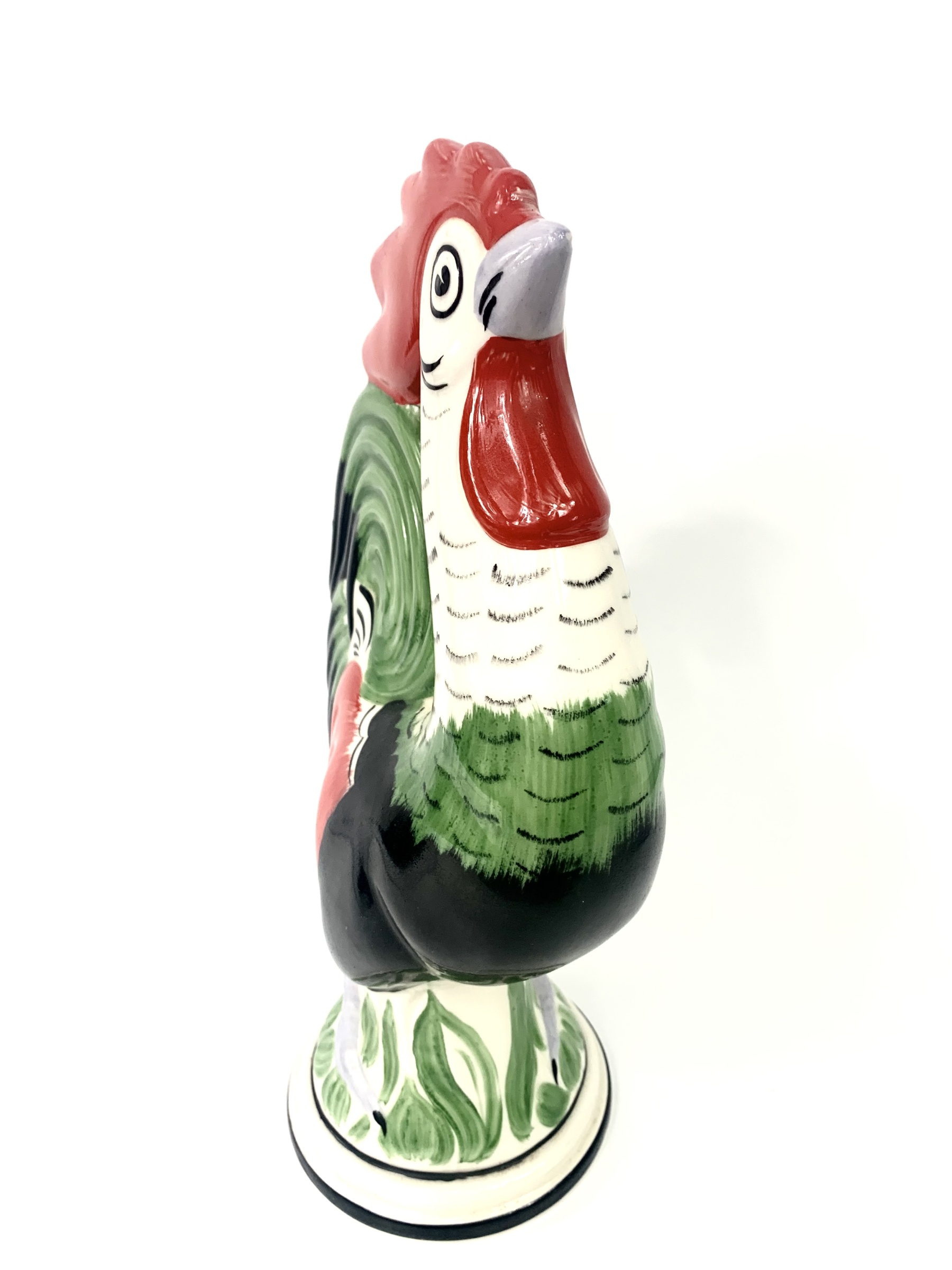 This large vintage colorful ceramic rooster figurine is a charming addition to any farm or countryside-themed collection. Standing tall and adorned with intricate details, this rooster captures the essence of rustic living and adds a touch of nostalgia to any space. Its vibrant colors and unique design make it a standout piece for collectors of animal figurines, specifically those who appreciate the beauty of rooster sculptures.