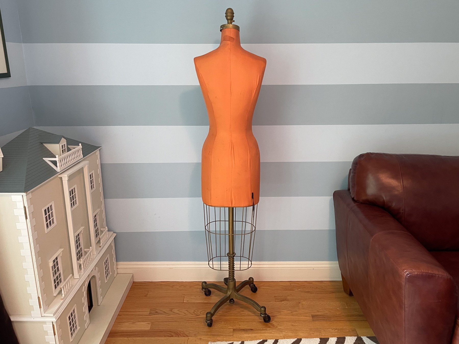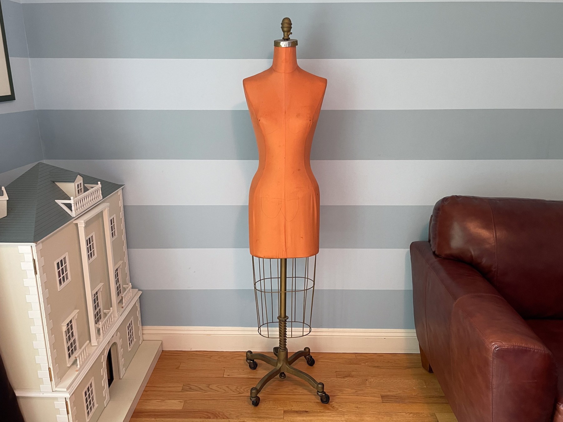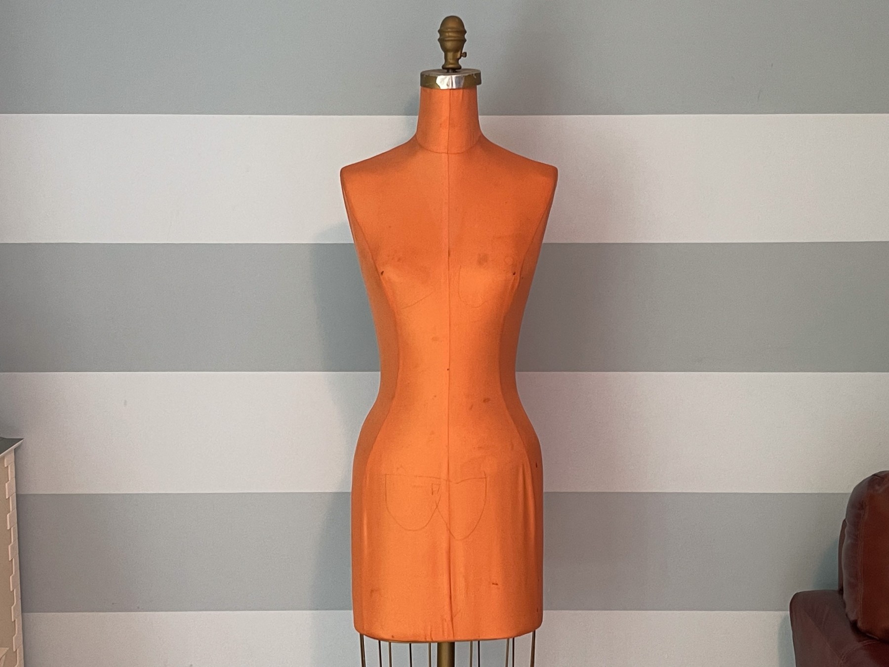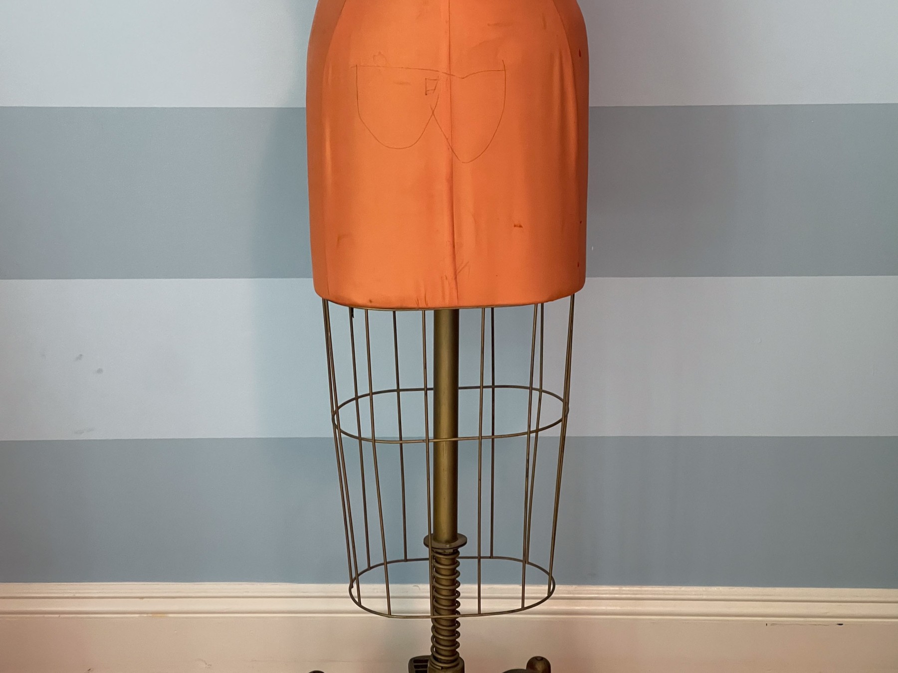 A fantastic vintage dress form for use in utilitarian tasks including dress making, hemming or more simple repairs. or for decorative, sculptural tasks in places like a large closet, dressing room or anywhere else that suits our needs.