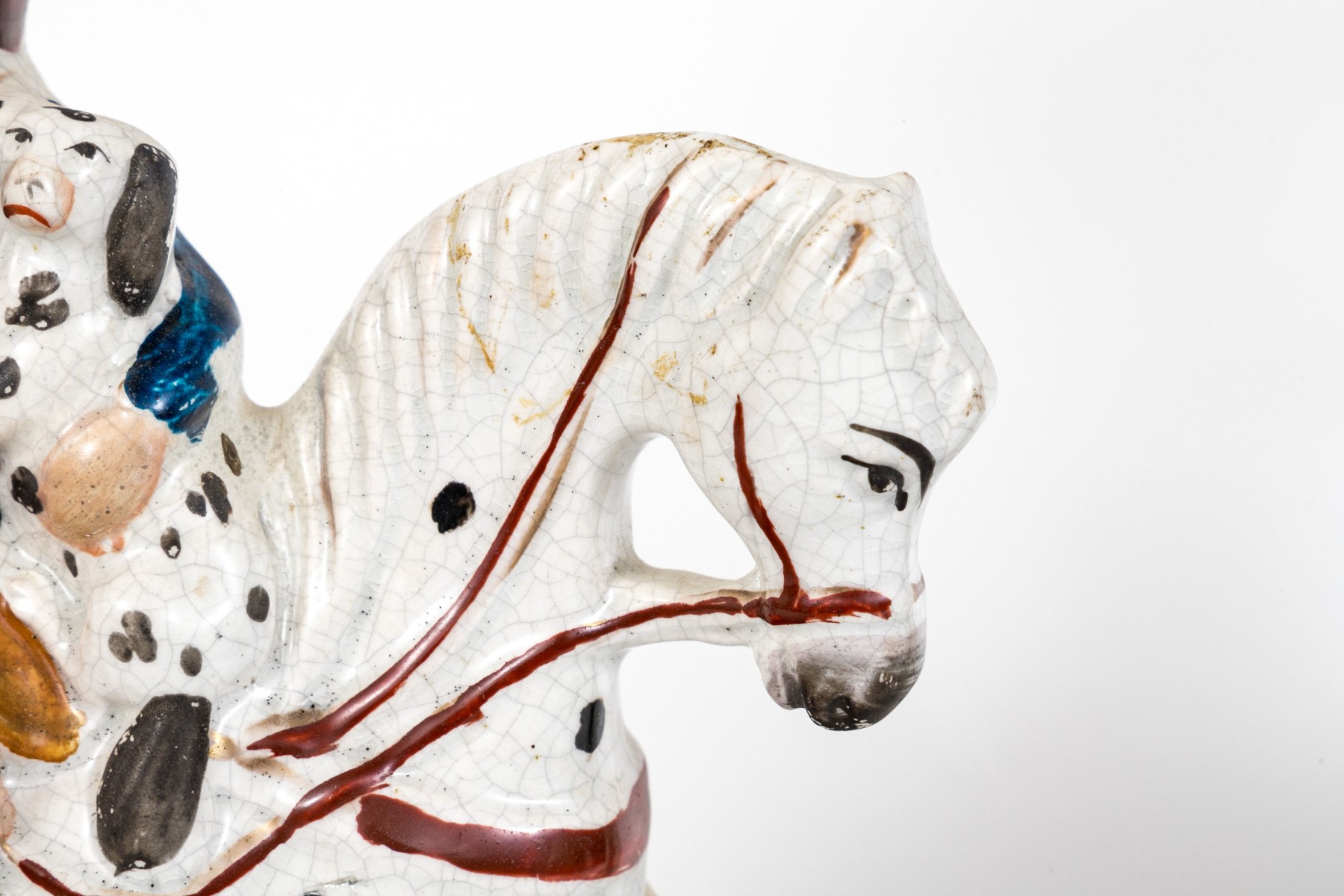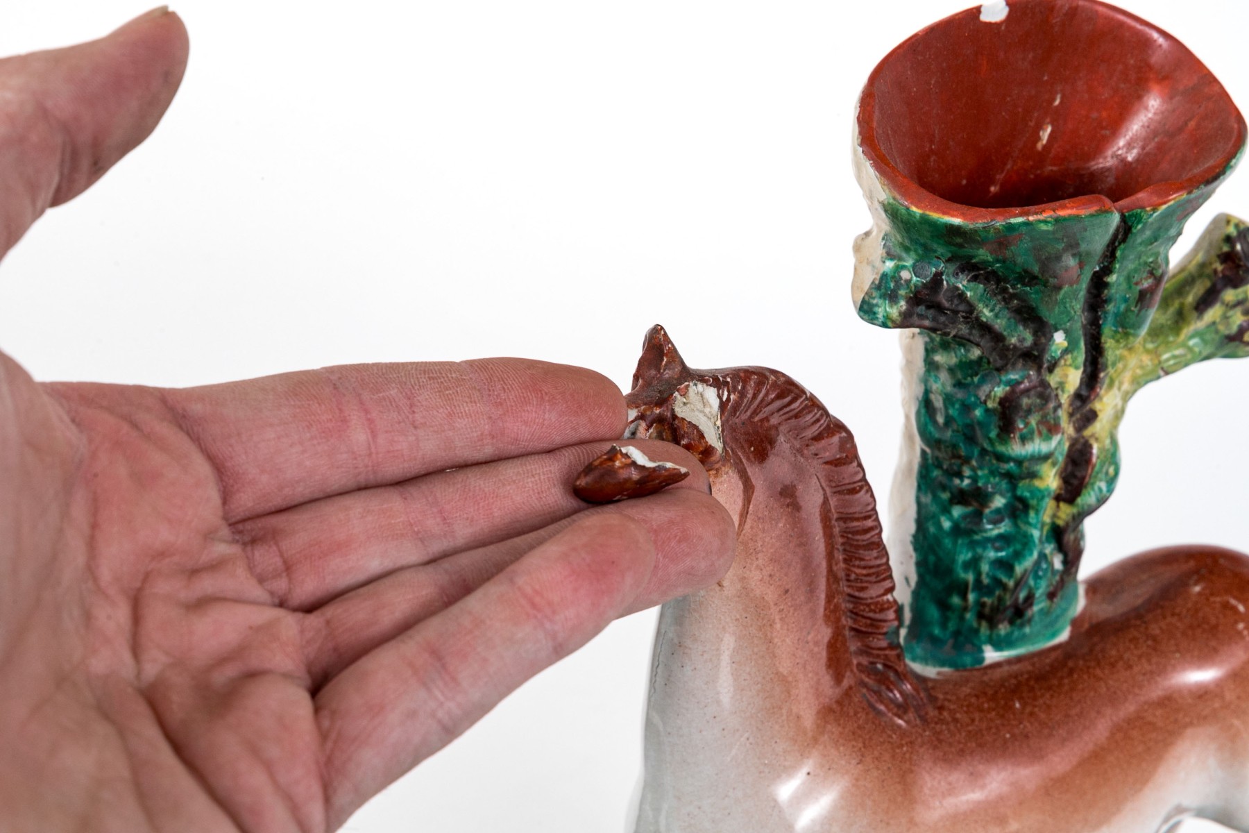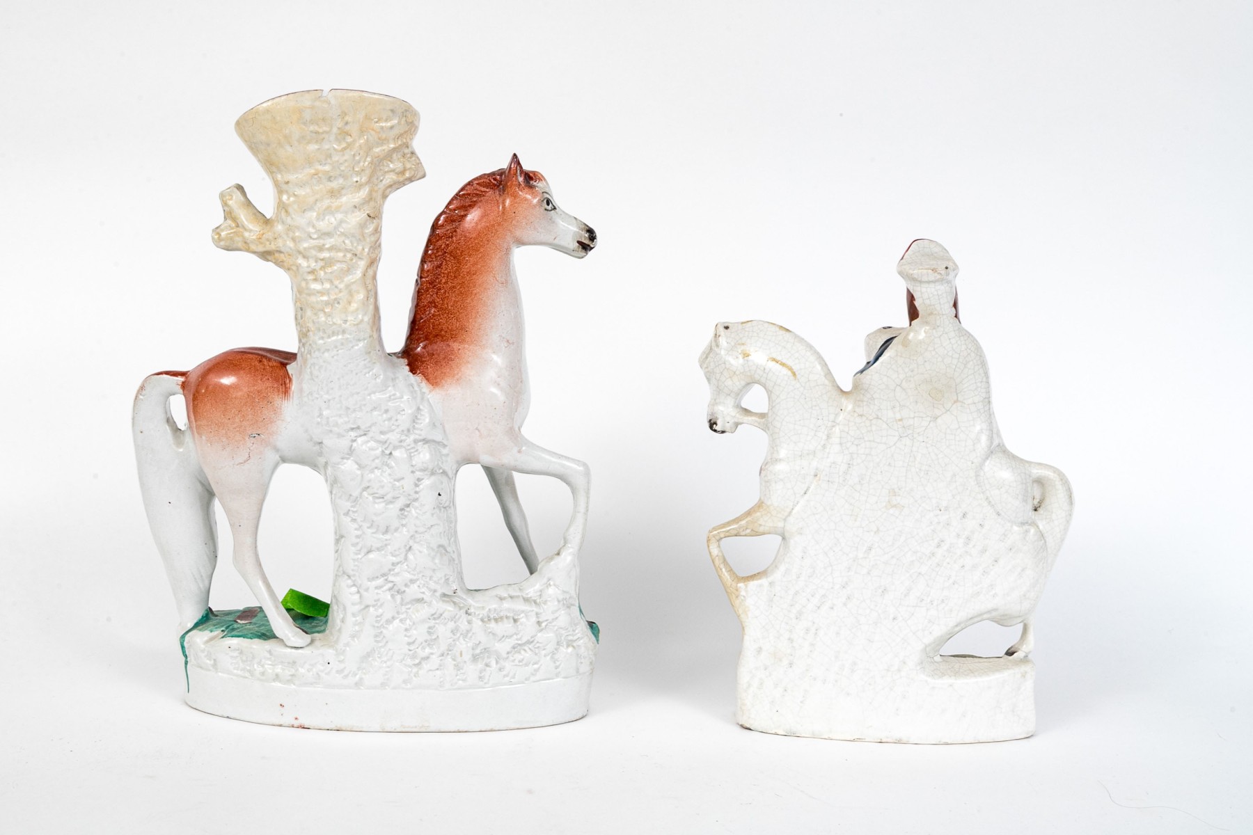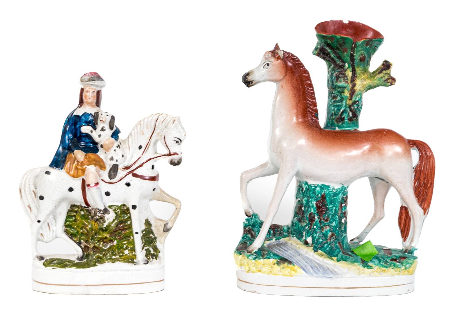 Including one spill vase with a figural horse and a crackle underglaze horse with a man of rank holding a spaniel.