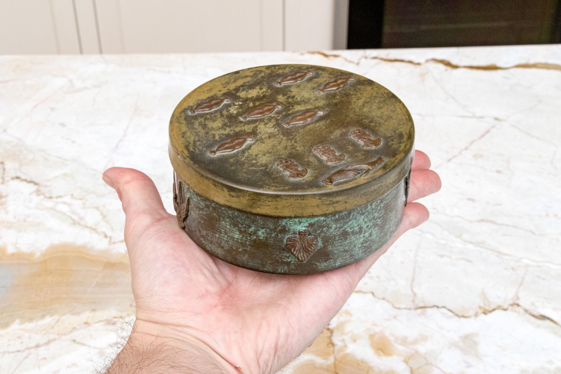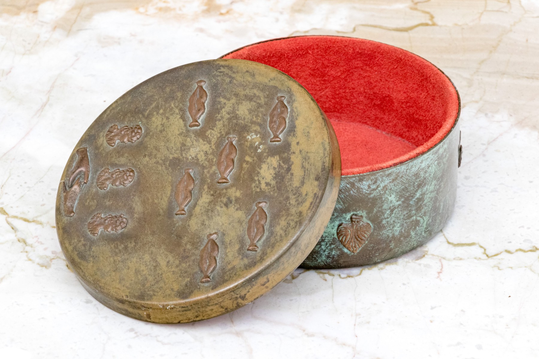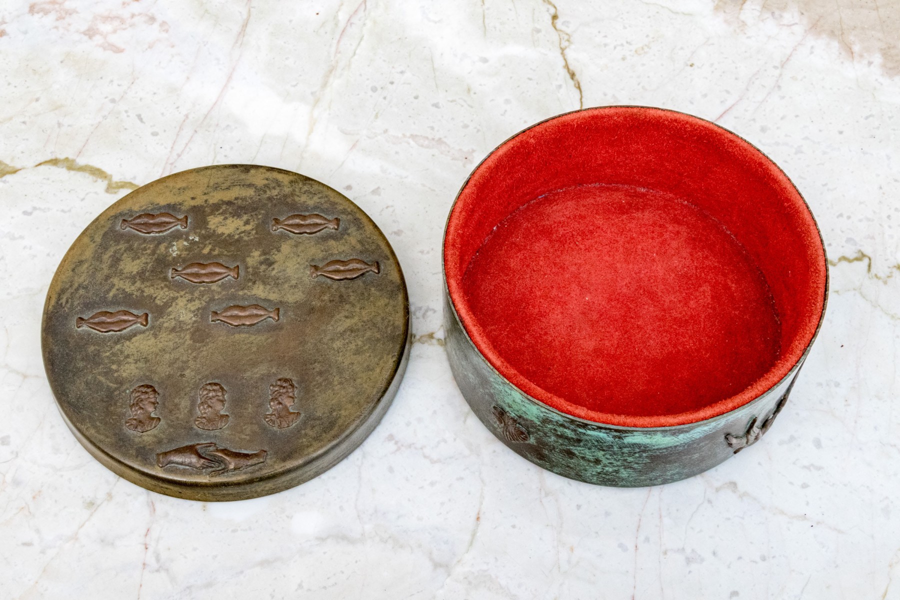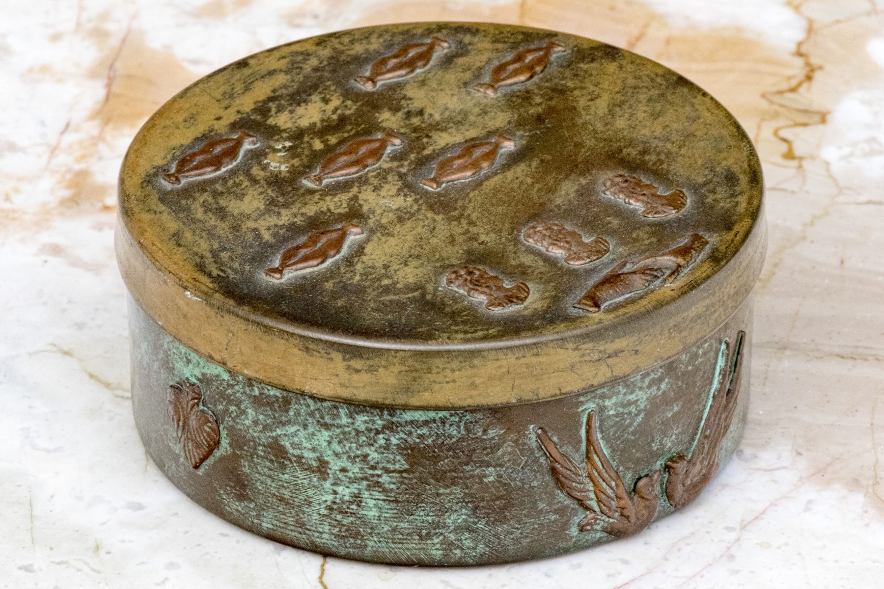 Vintage Enrique Zavala Mexico bronze and brass lidded circular box.