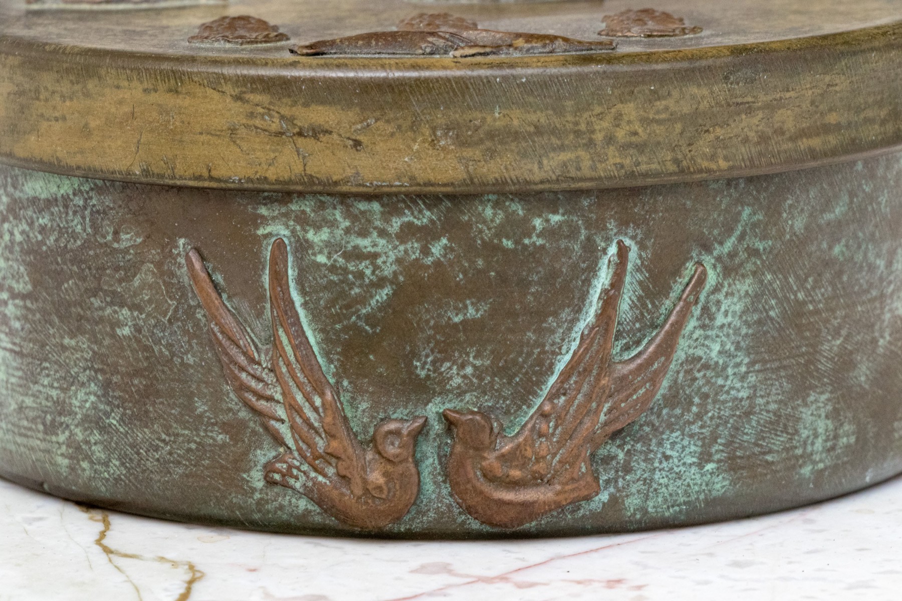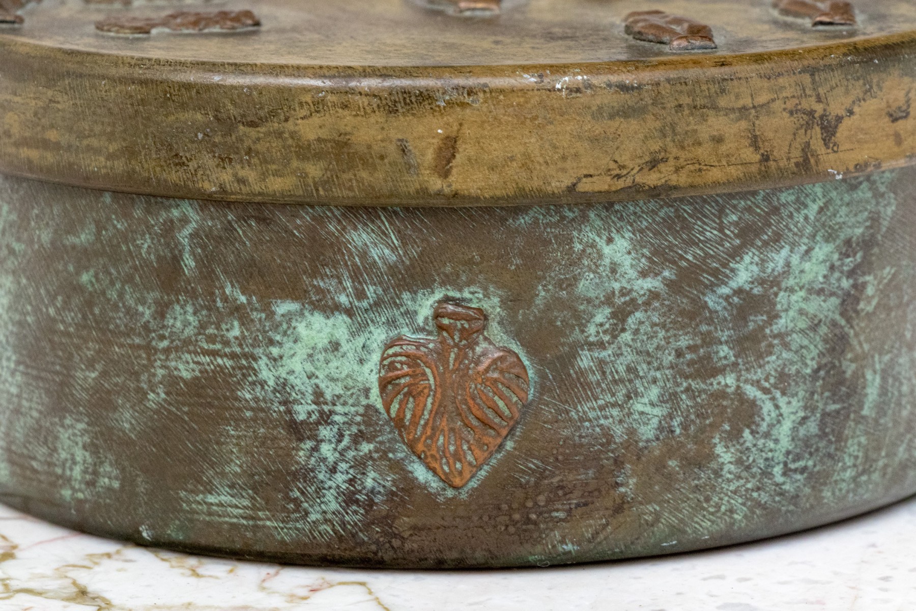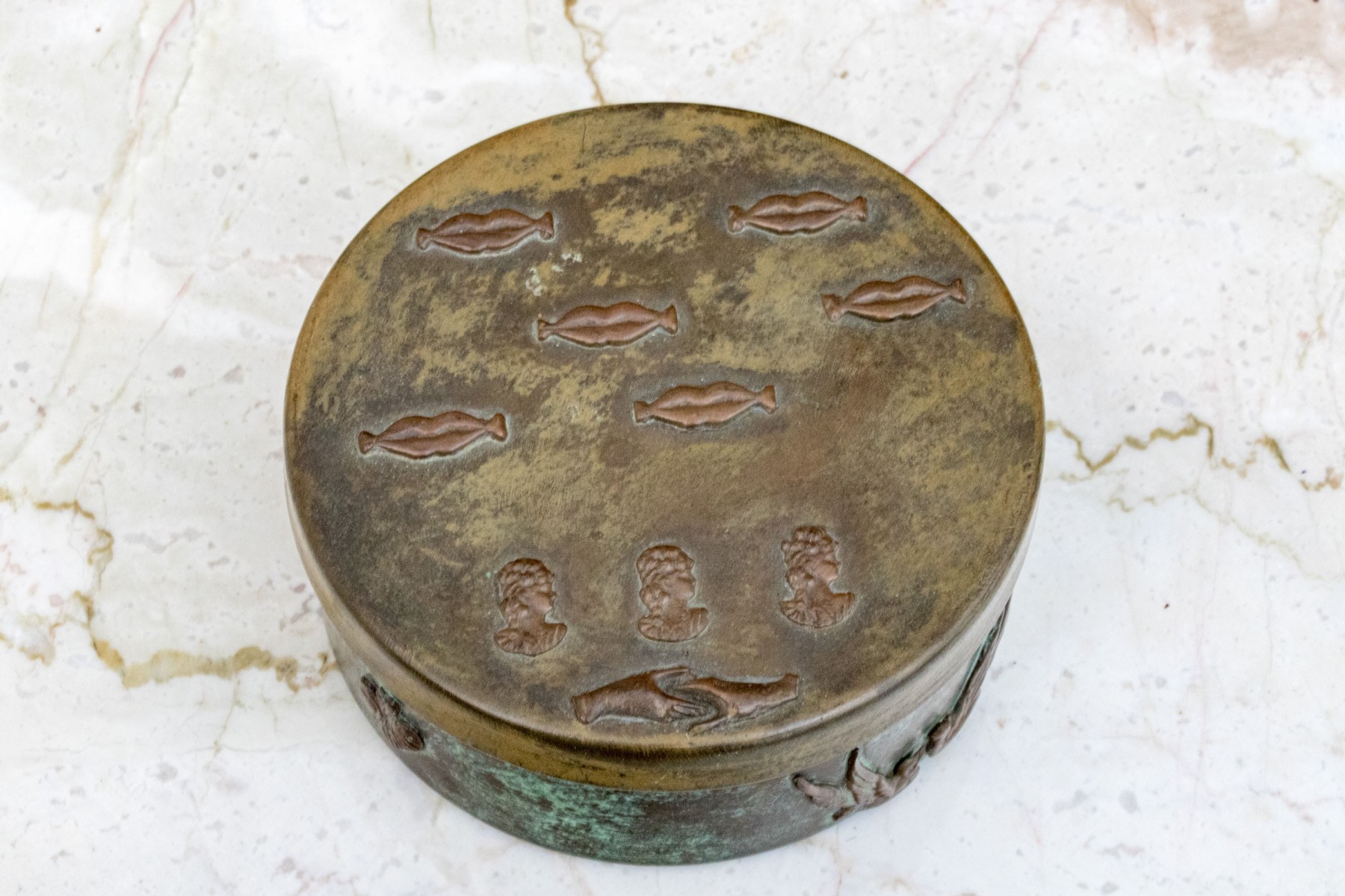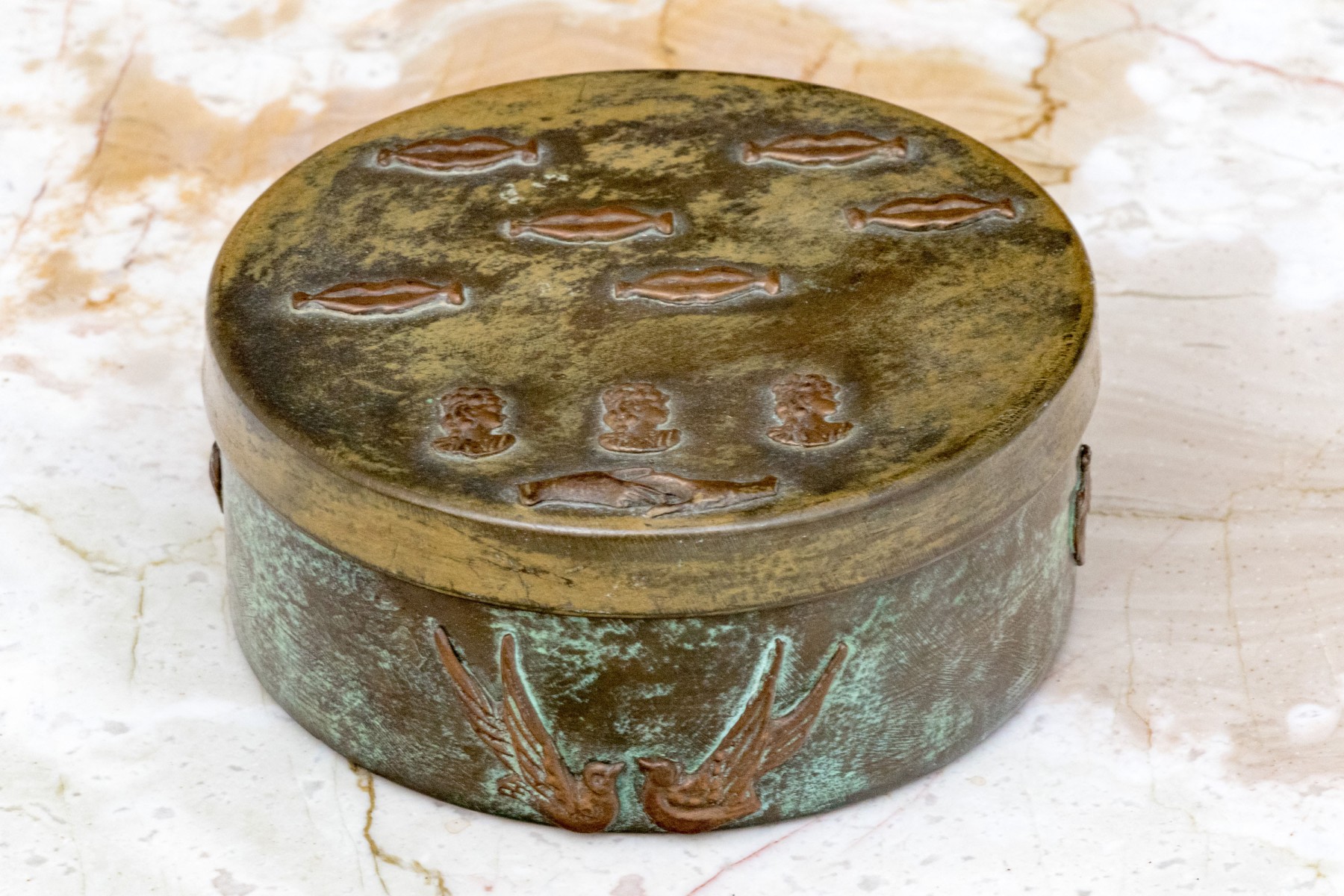 Vintage Enrique Zavala Mexico bronze and brass lidded circular box.