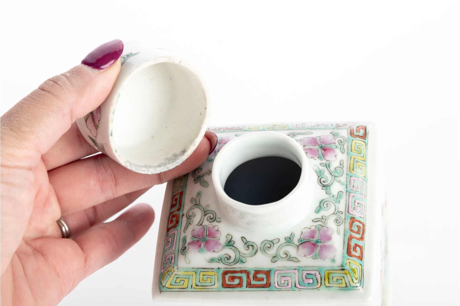 Vintage Famille Rose Chinese Porcelain Tea Caddy