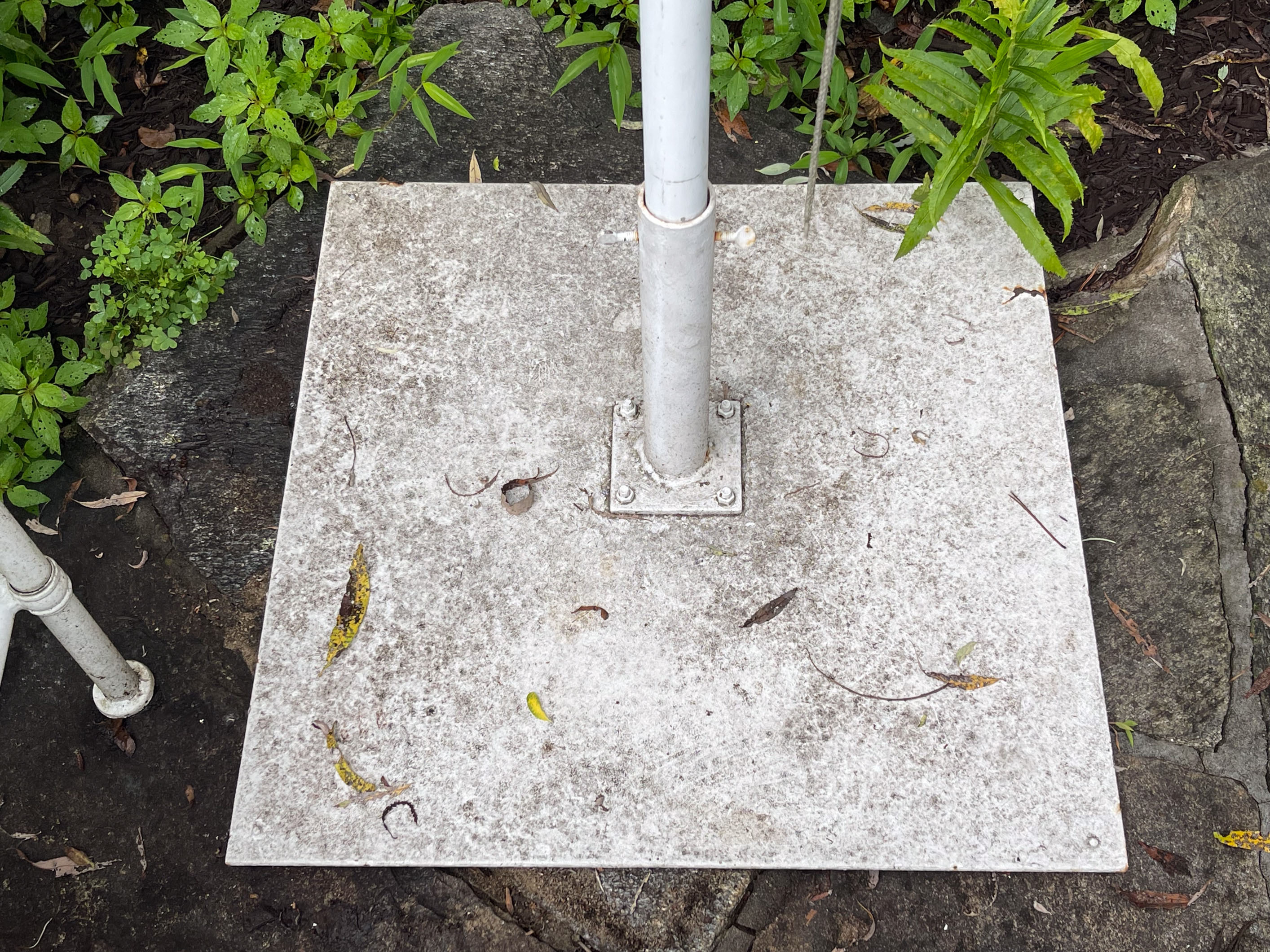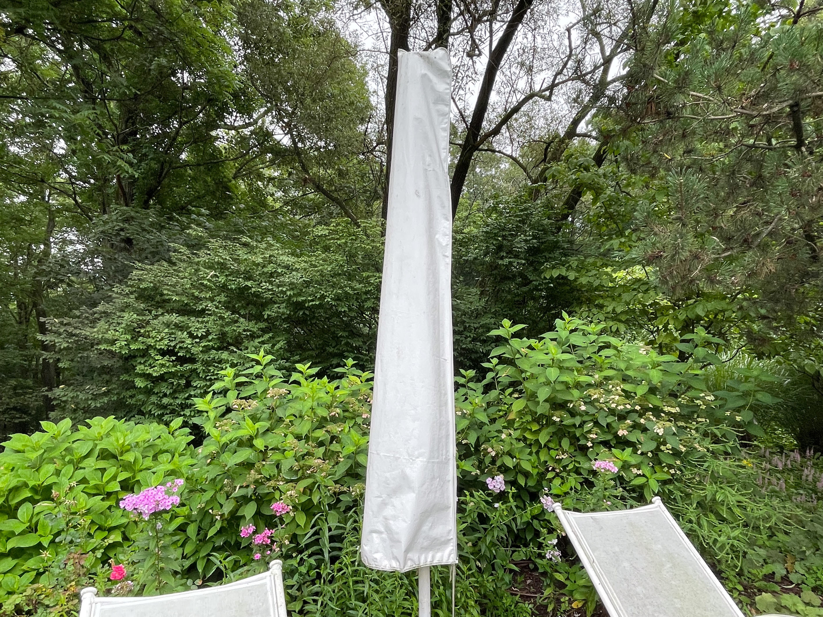 - A simple iron umbrella stand complete the set (12 3/4" H x 24" x 24")
