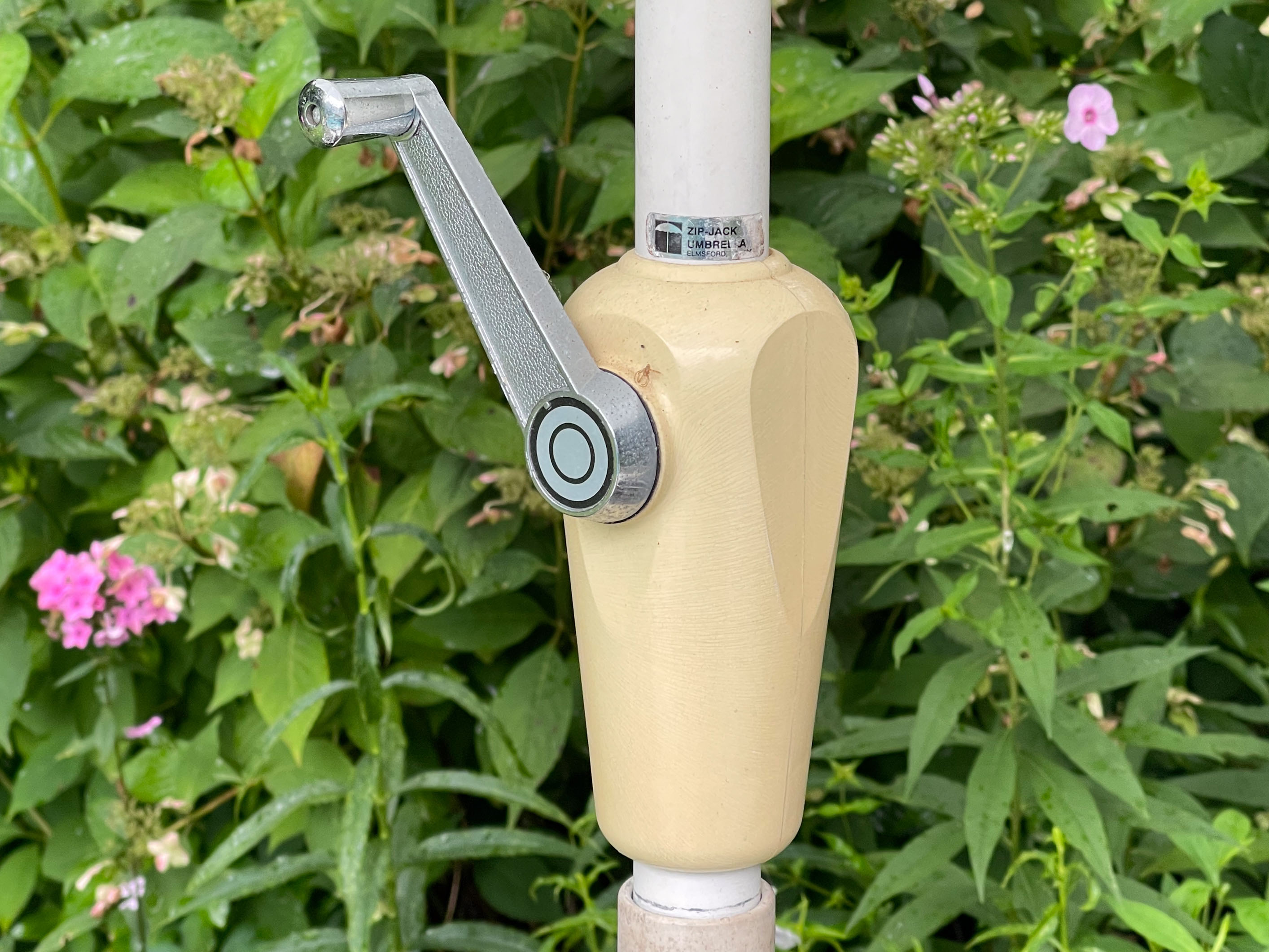 - A crank handle, nine-foot market umbrella (9' H x 106” DIA)