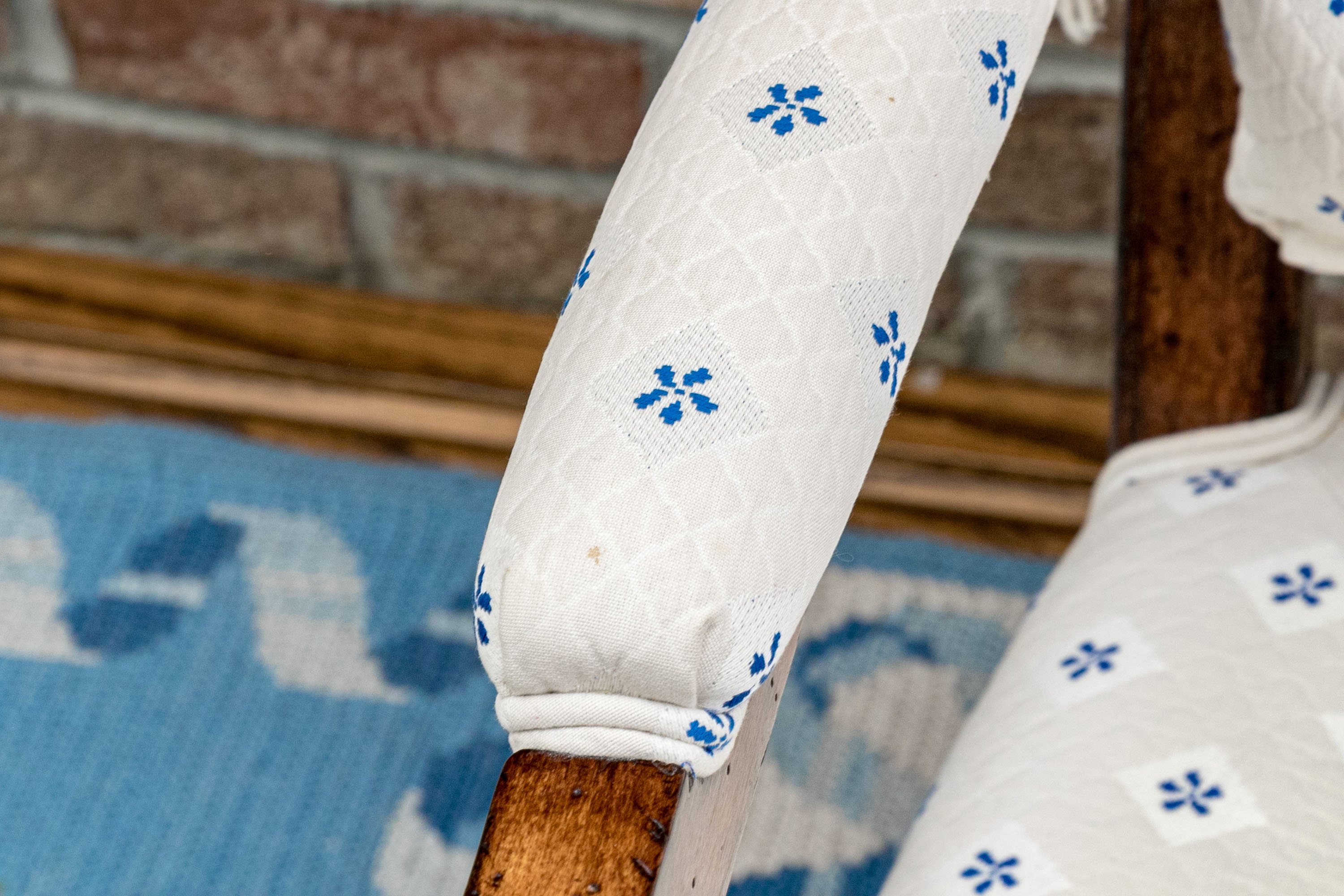 Some wear to the upholstery which could be cleaned. Upholstery is slightly sun truck with wear commensurate of age and us but overall presents well.