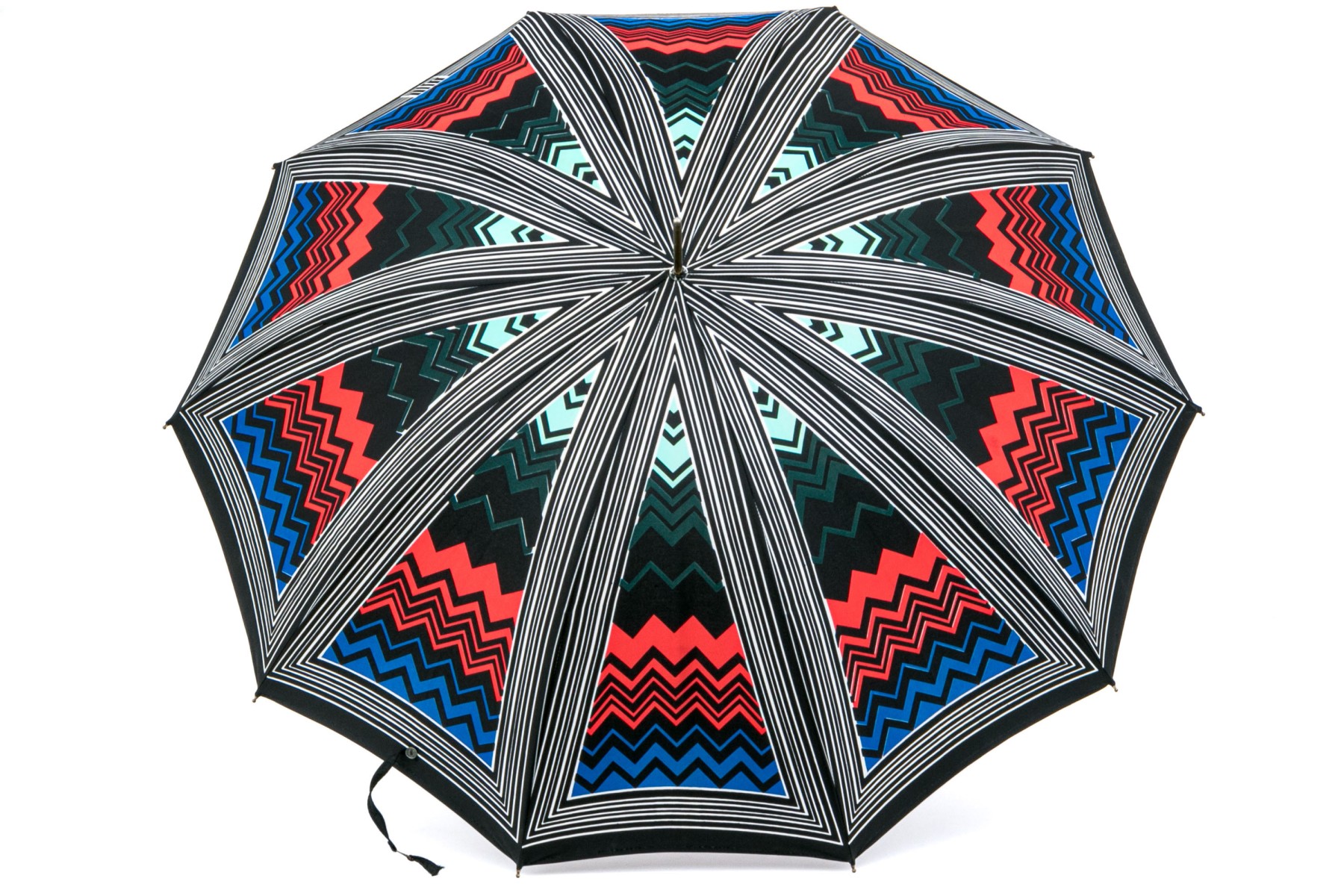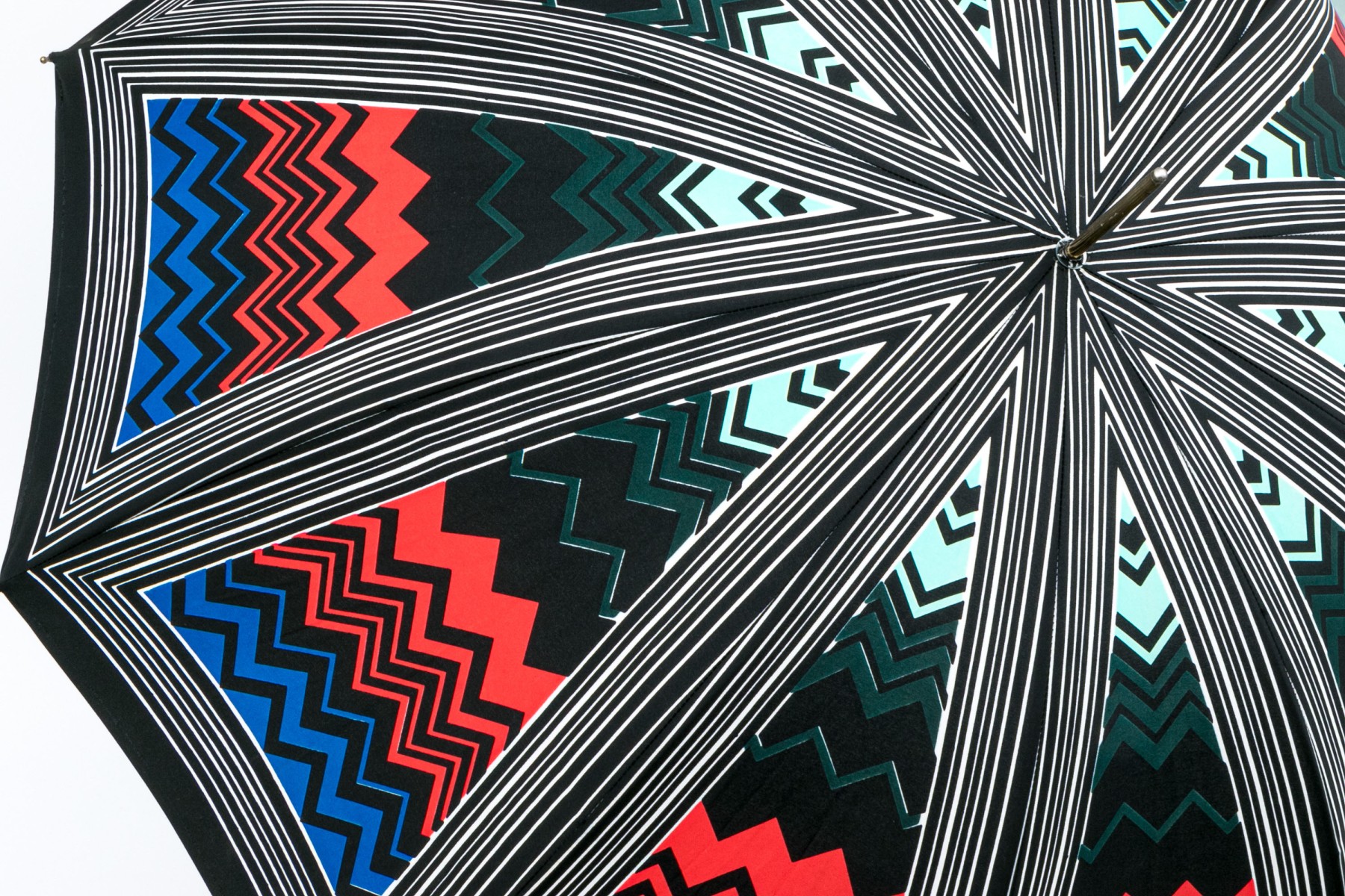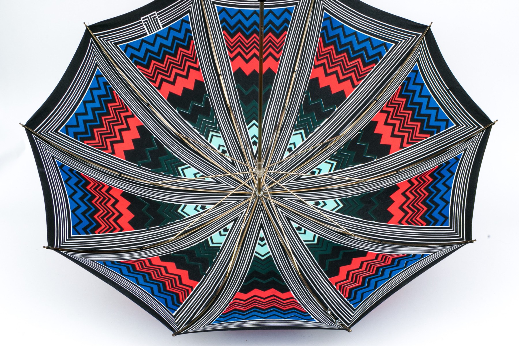 With a wonderful black end for carrying when closed the metallic post and fittings holds the highly decorative and wonderful silk umbrella canopy or parasol.