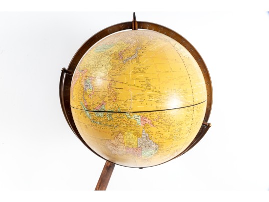 Globe rubs on the cradle. Minor losses to paper. Overall consistent with age.