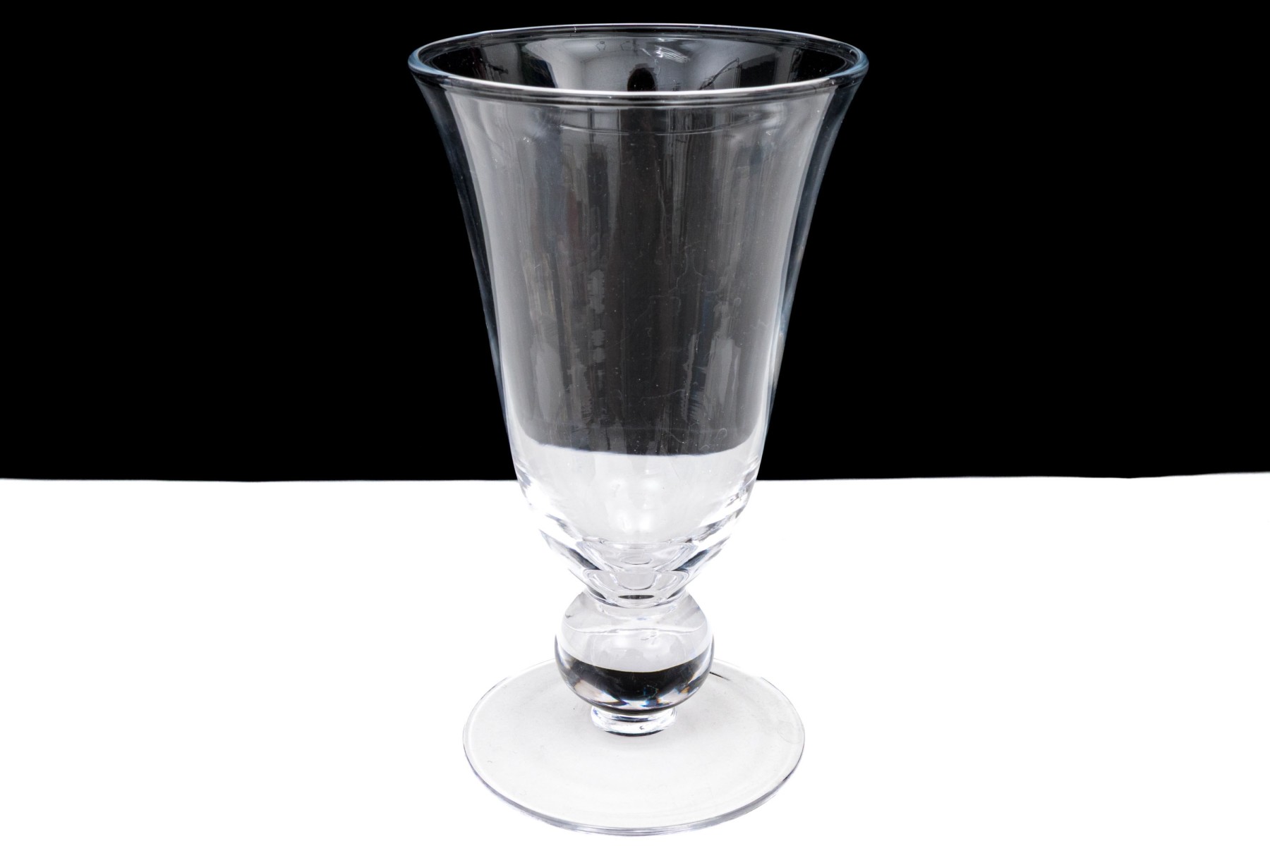 A large flared goblet with a bulb stem mounted on a circular foot. Can also be used as a vase.