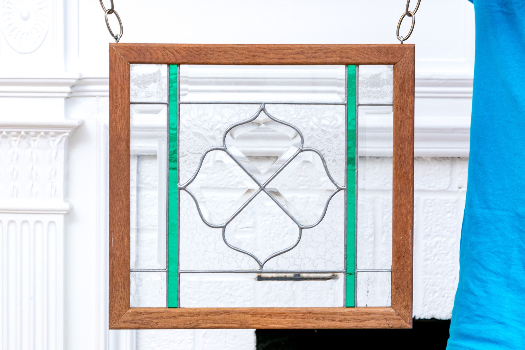 A vintage hanging panel crafted with meticulous hand-leaded and cut glass techniques. This exquisite piece showcases timeless craftsmanship.