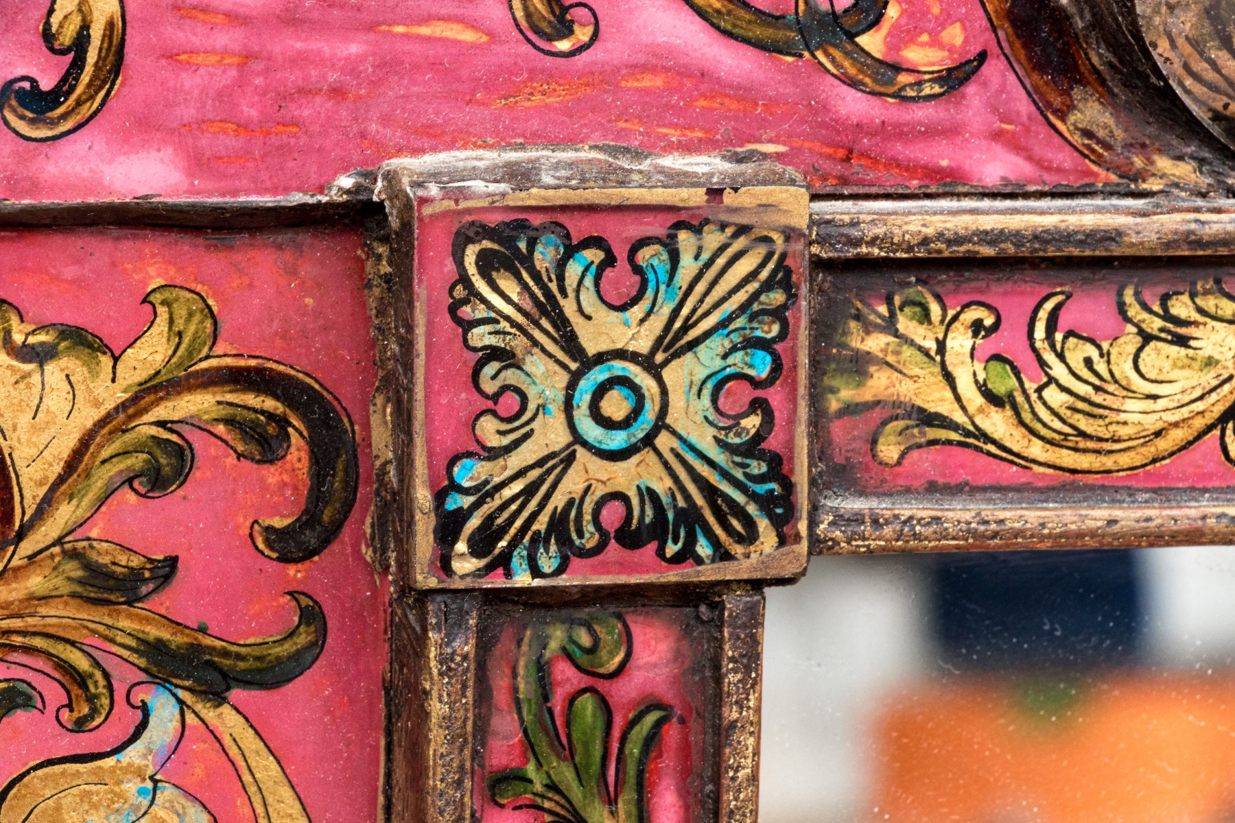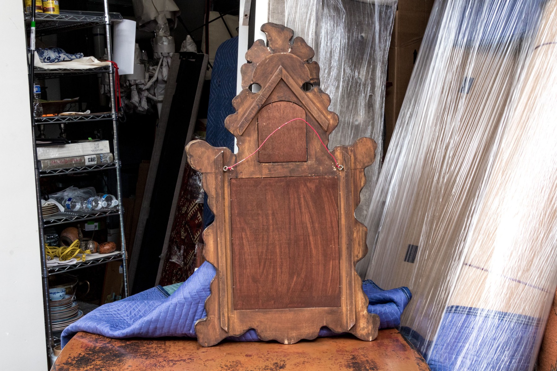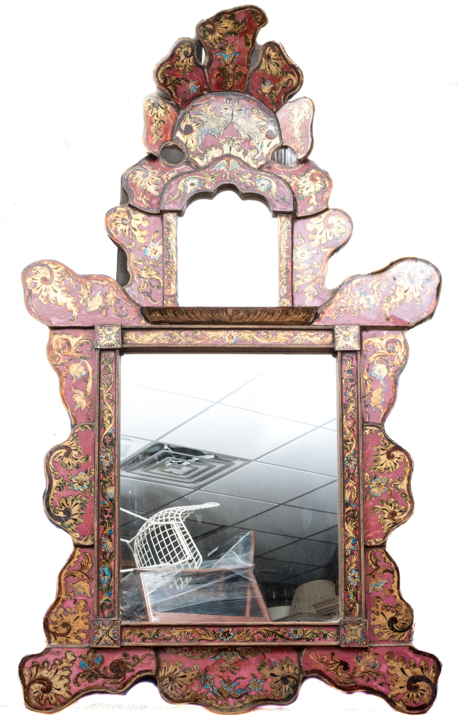 The mirror is elaborately formed with a central rectangular mirror with a mirrored crest and ornate form.