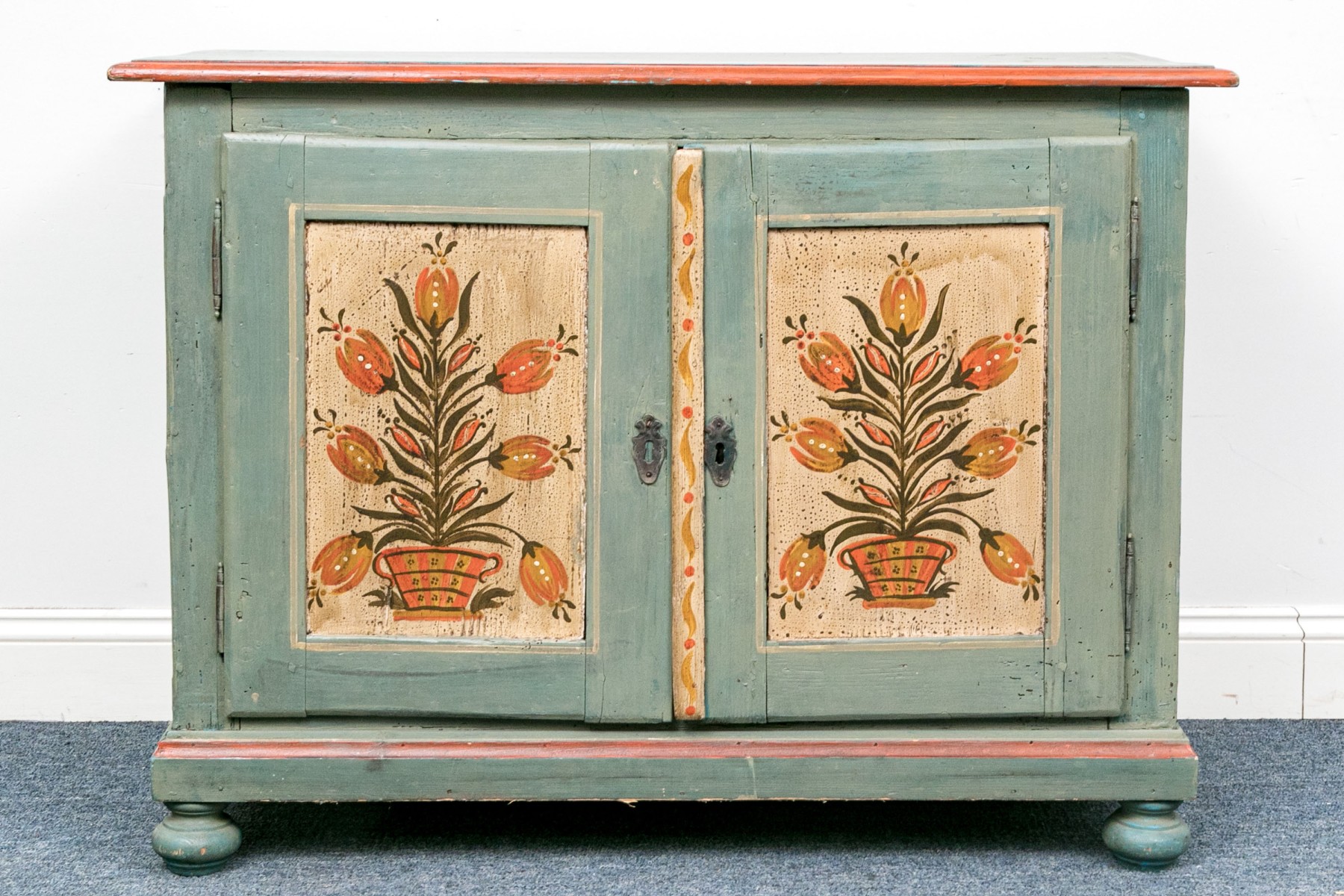 Condition: Losses to the painted finish. Splits to the back. Splits to the cabinet doors. See images as they are part of the condition report.