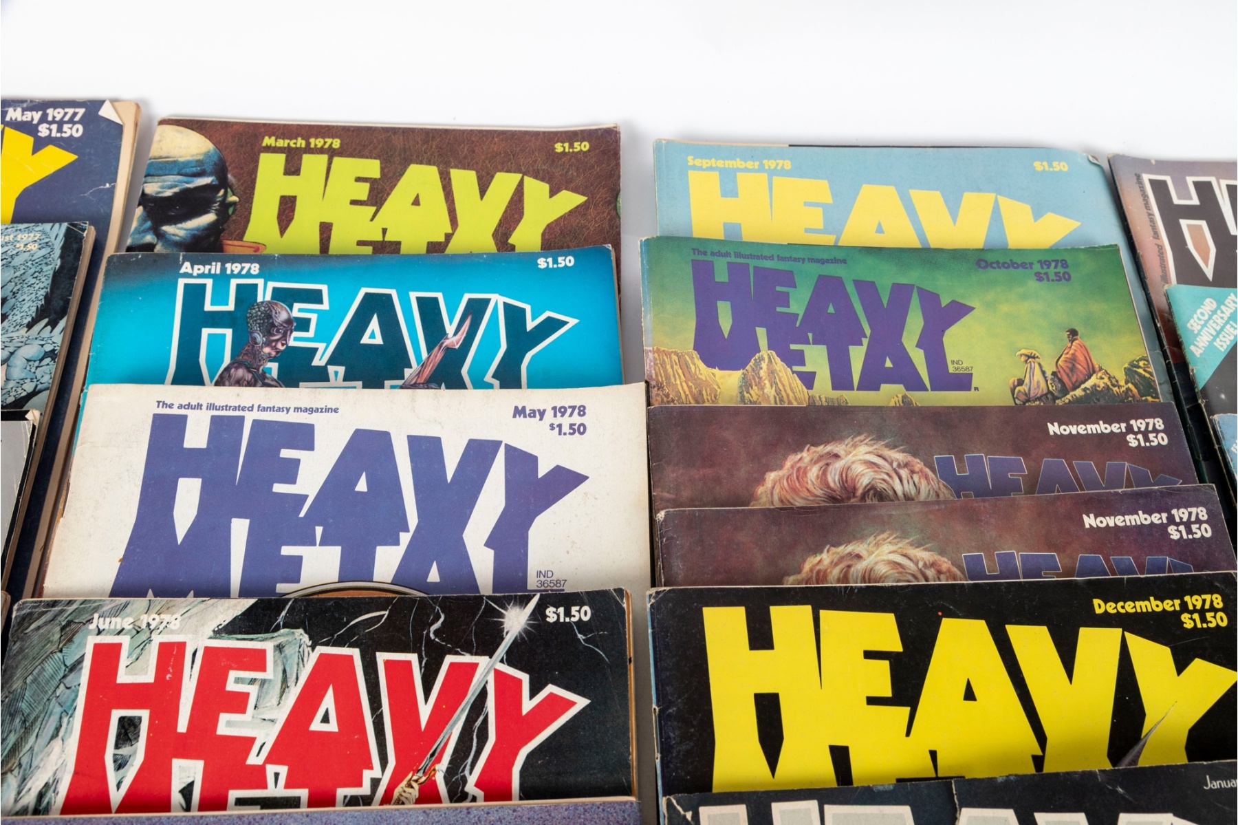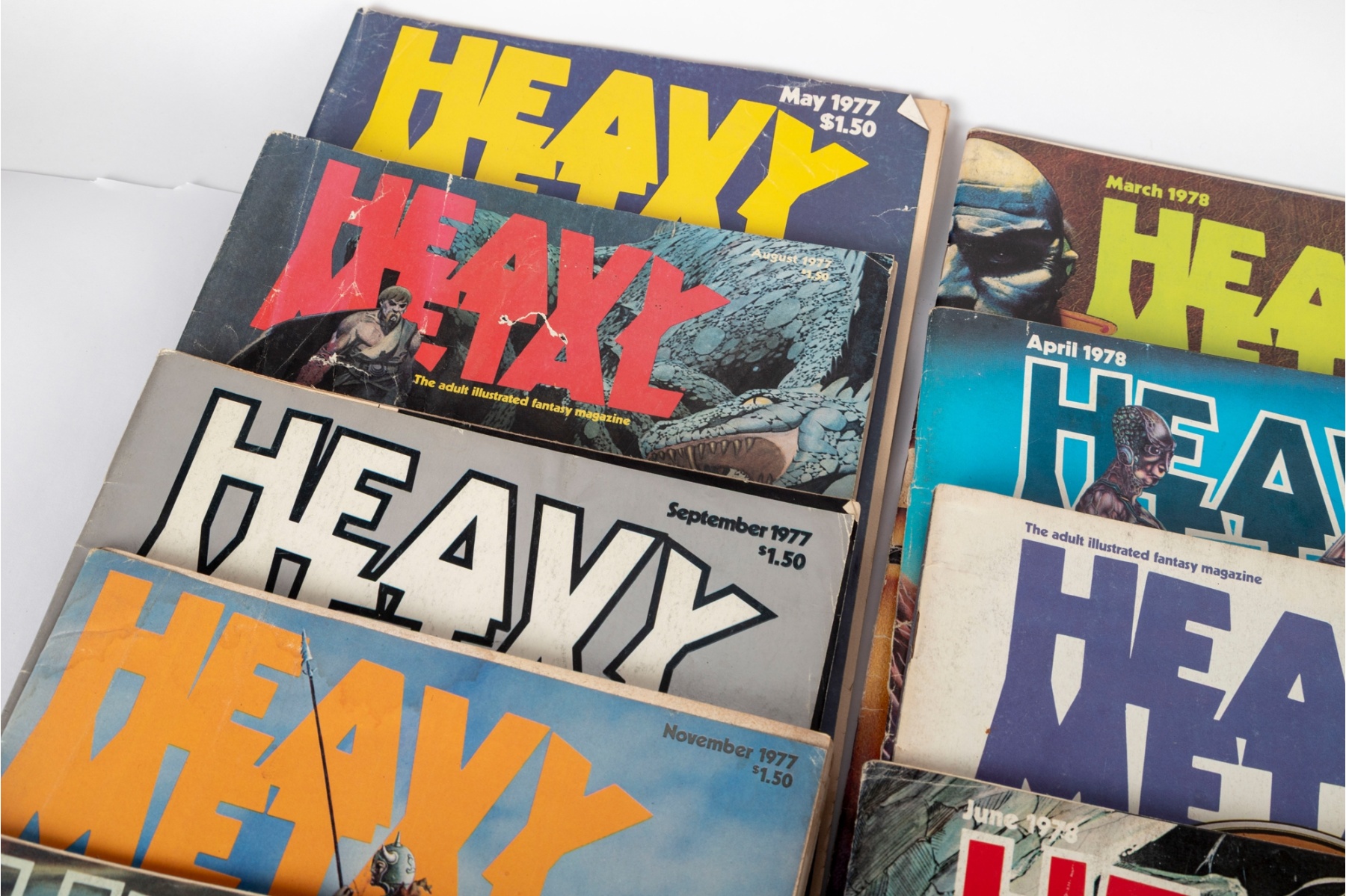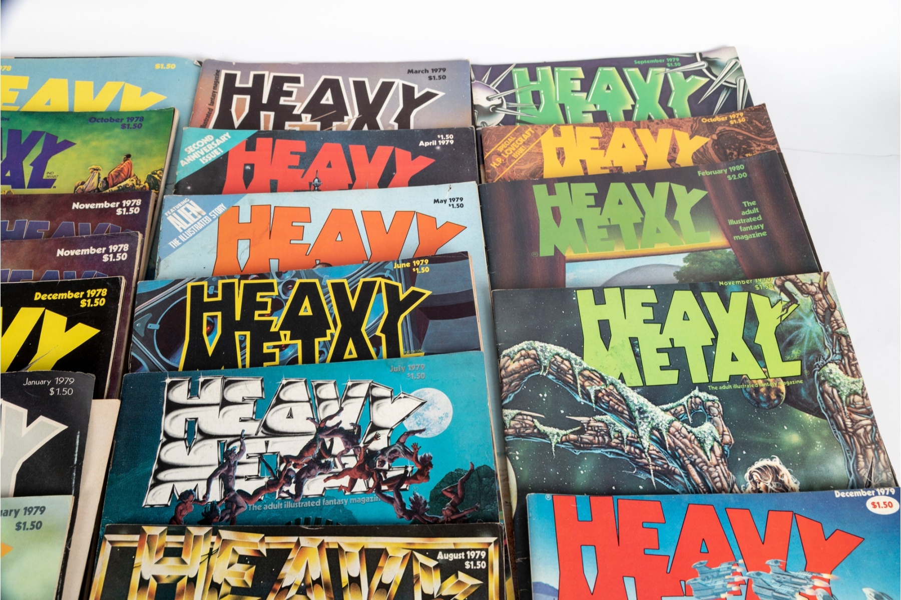 A fantastic early-run collection of Heavy Metal, the iconic adult illustrated fantasy and sci-fi magazine known for its groundbreaking artwork, avant-garde storytelling, and legendary roster of international comic artists. This lot includes dozens of issues spanning 1977 through 1980, featuring striking cover art, serialized graphic stories, and the signature blend of surrealism, fantasy, erotica, and speculative fiction that defined the magazine’s golden era.