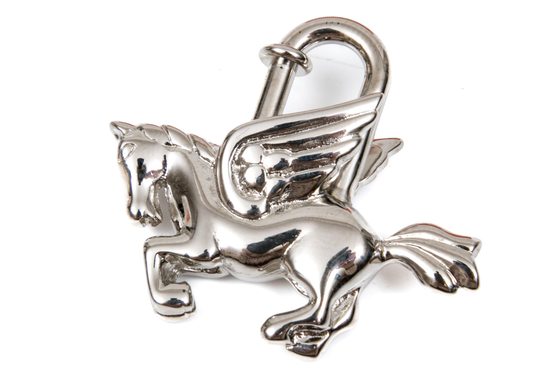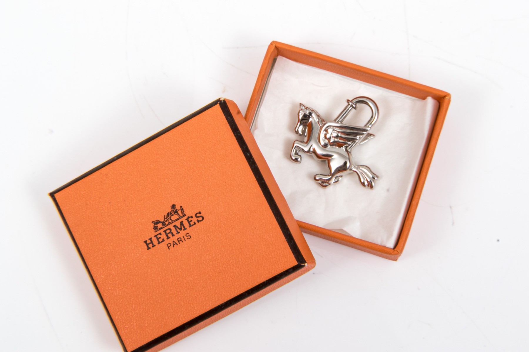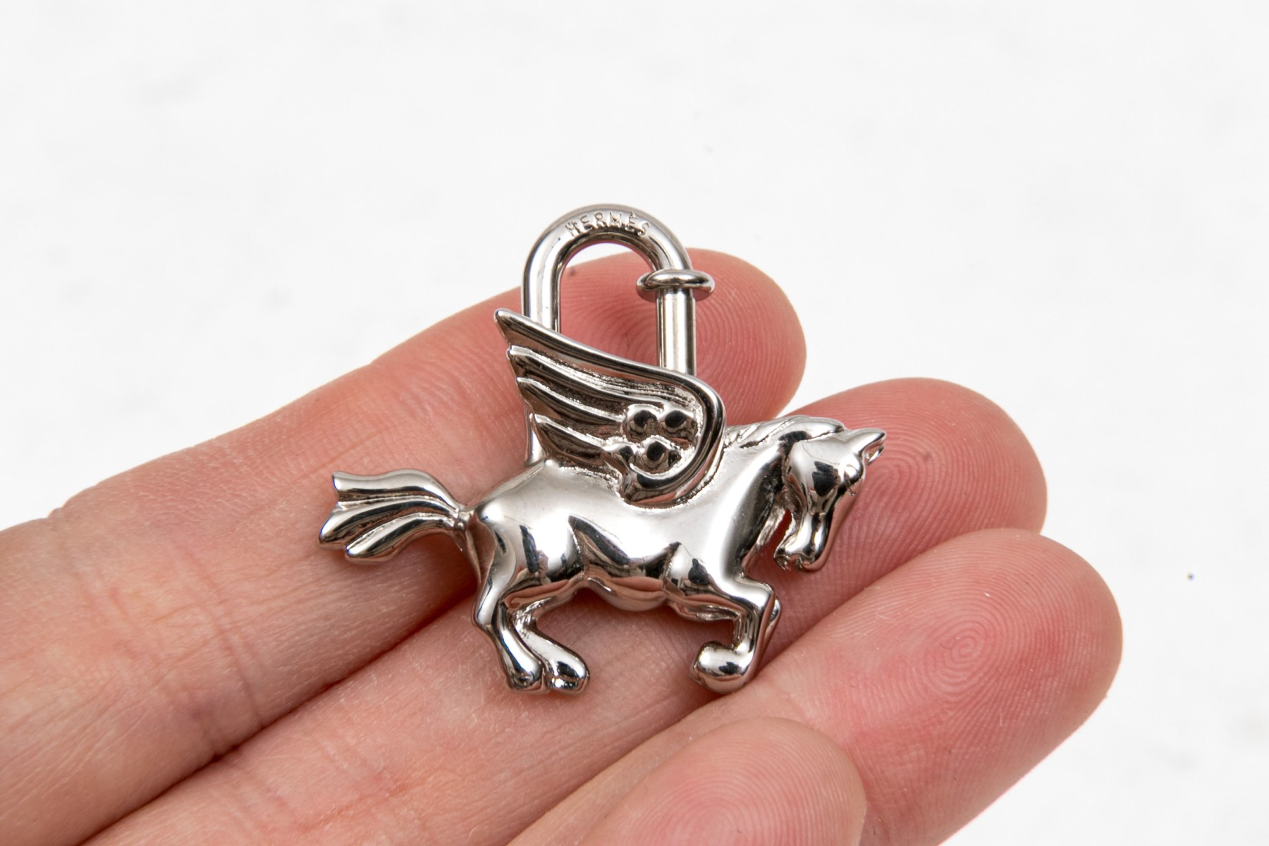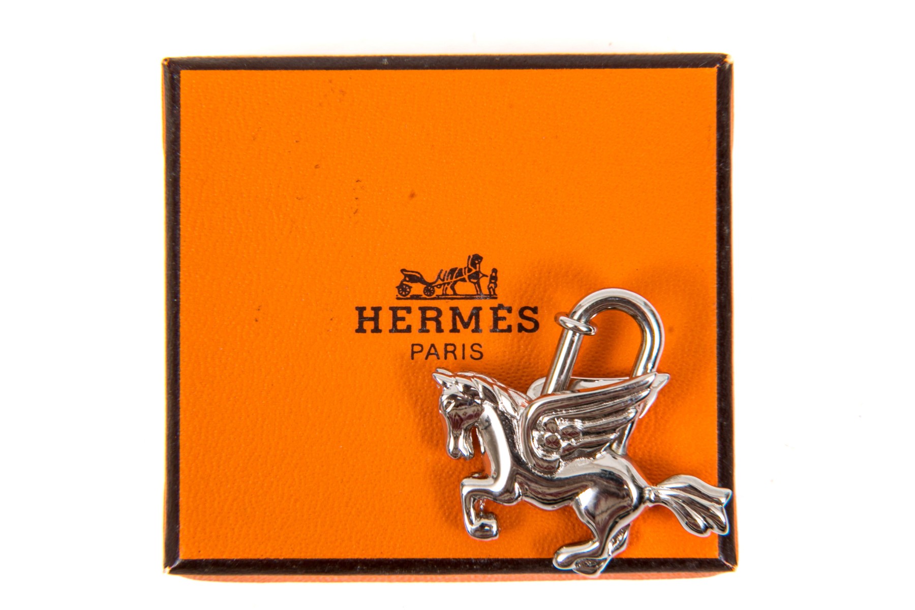 A vintage 1993 Hermes pegasus cadena lock bag charm, with box.