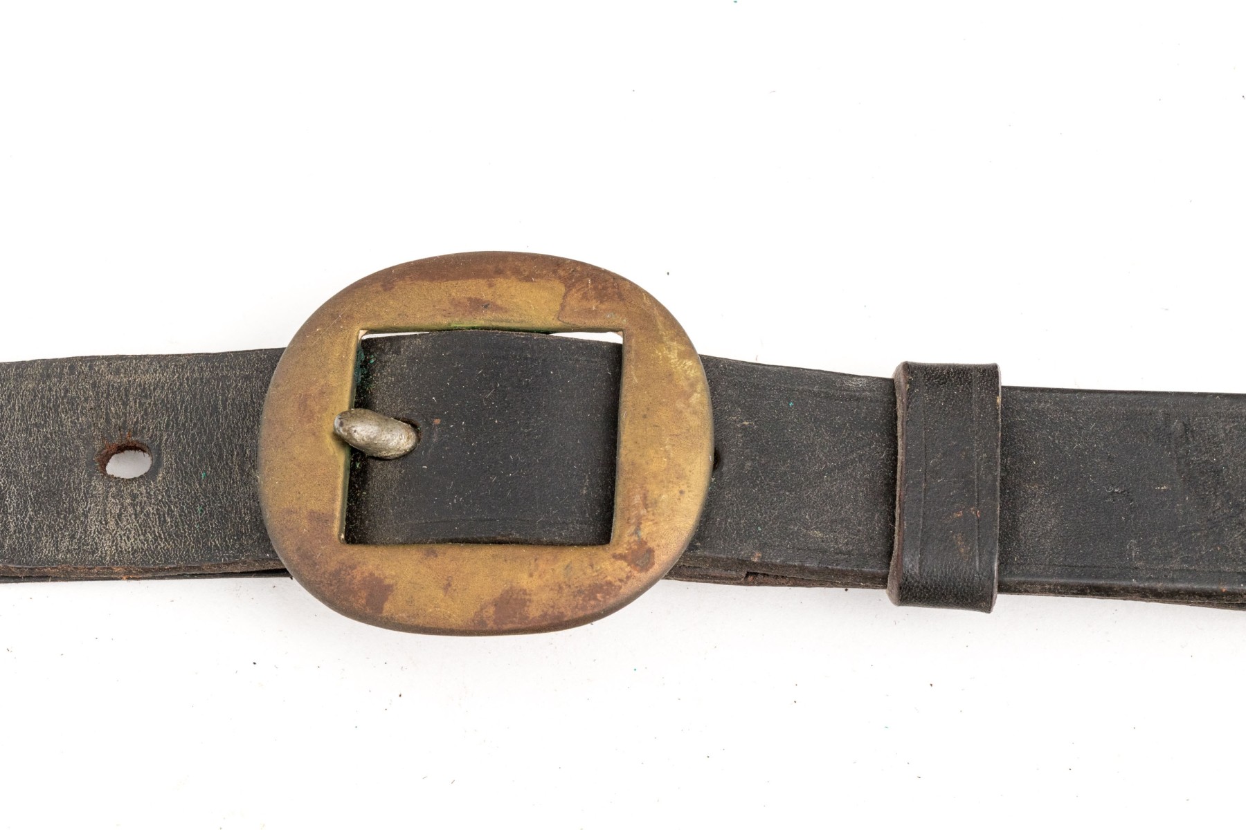 Condition: Please review the detail photos. Worn overall with tears to the leather. Two brasses are loose. Tarnished.